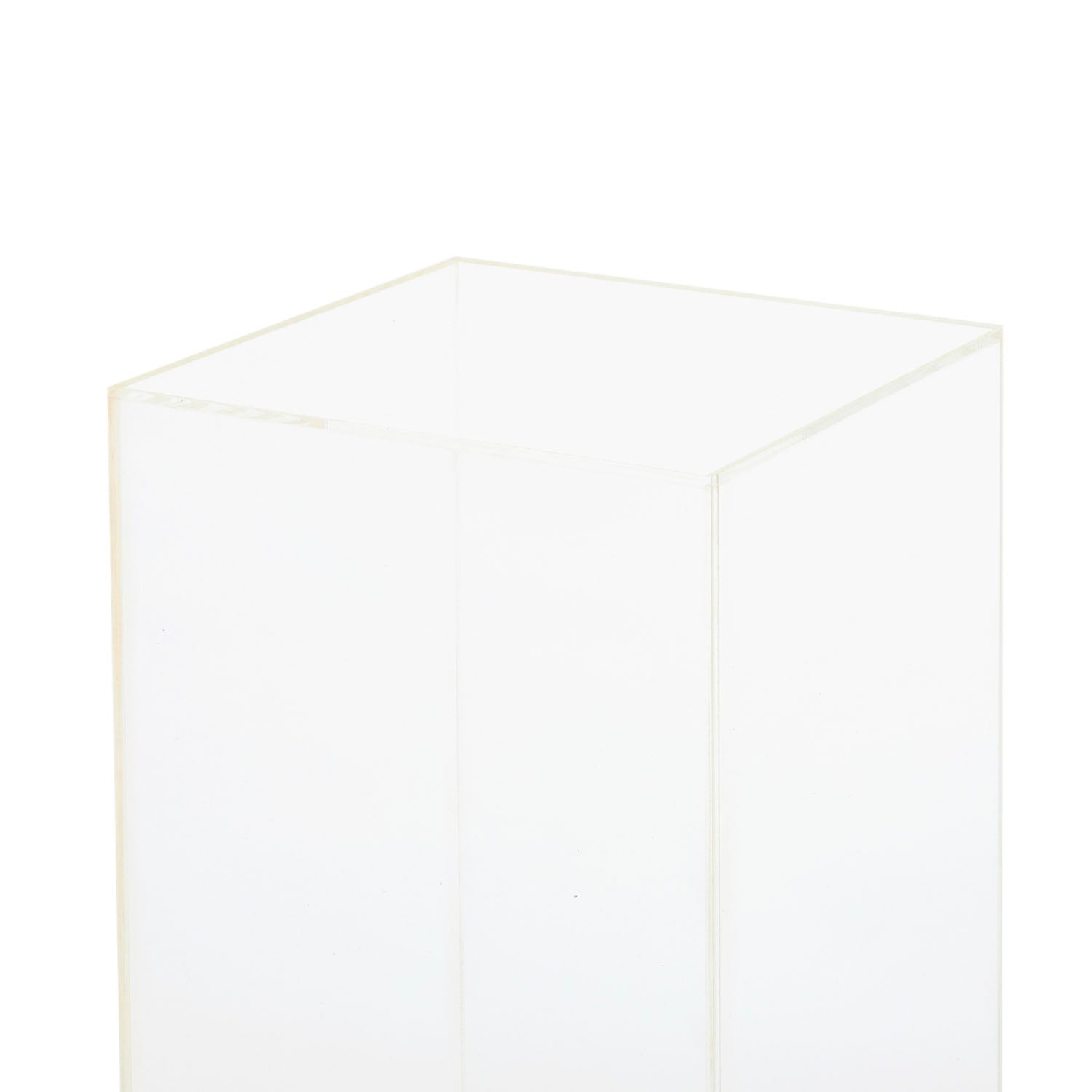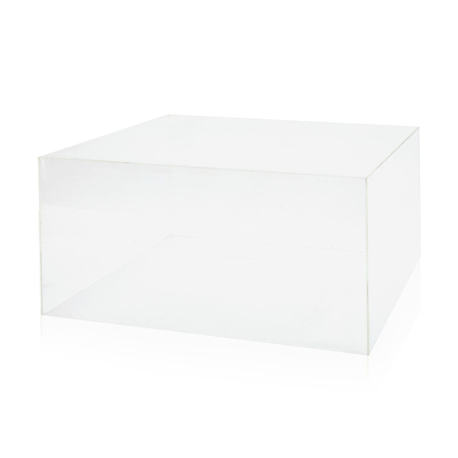 Details: Large clear plexiglass pedestal in the shape of a cube Dimensions: 24" H x 24" W x 24" D Quantity: 1