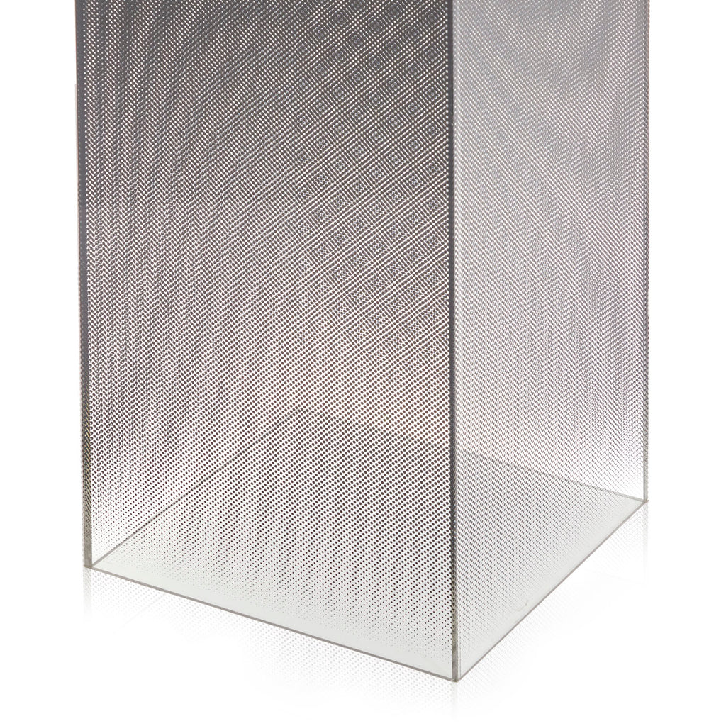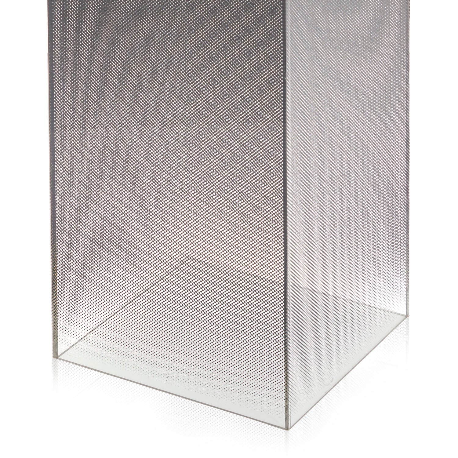 Details: Large rectangular lucite pedestal with clear to grey gradient design Dimensions: 48" H x 12" W x 12" D