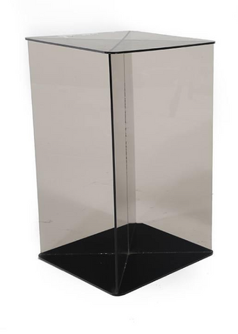Details: Rectangular prism pedestal constructed from transparent smoked plastic Dimensions: 20" H x 12" W x 12" D