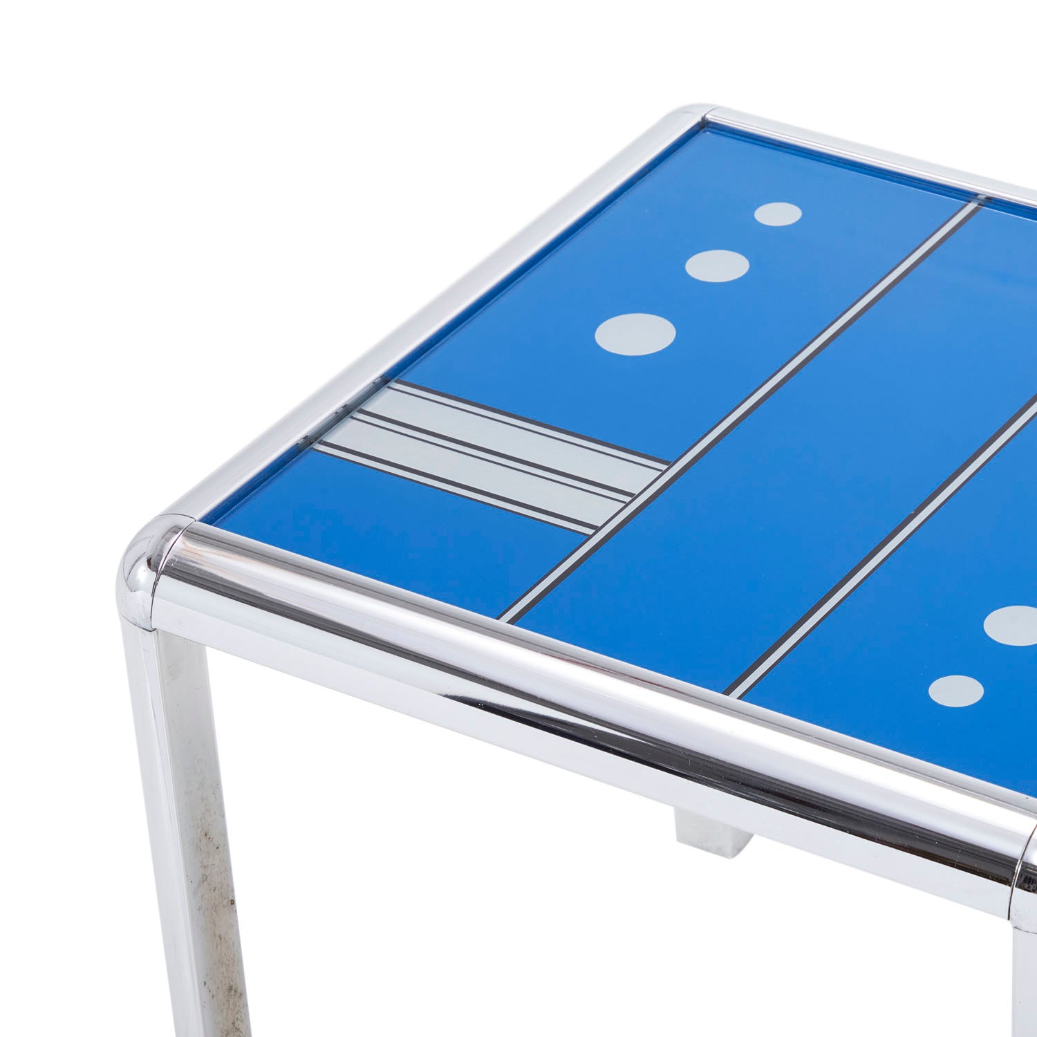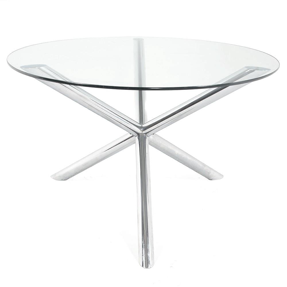 Details: Chrome, Glass Round Top, Tube Base, Three, Dining Table Dimensions: 27.5" H x 48" D