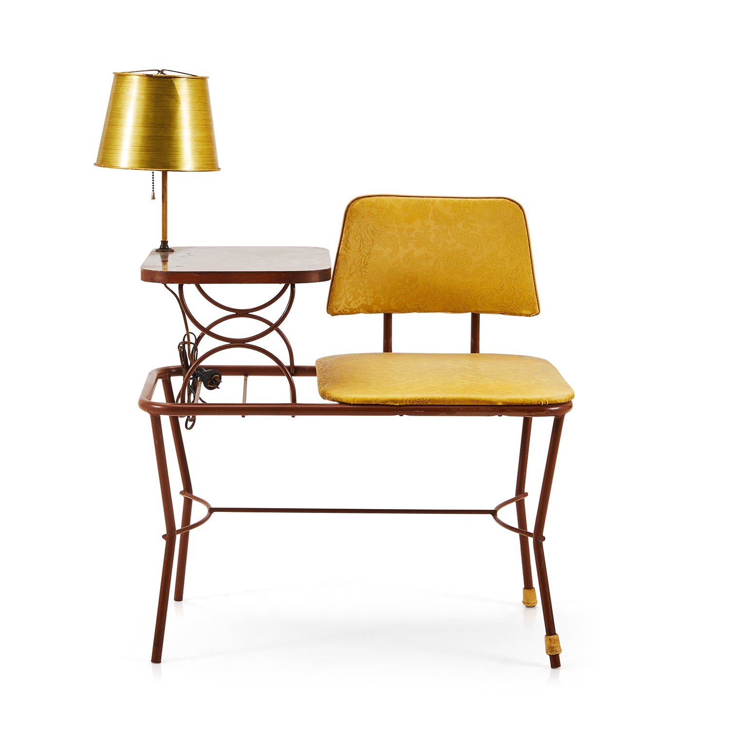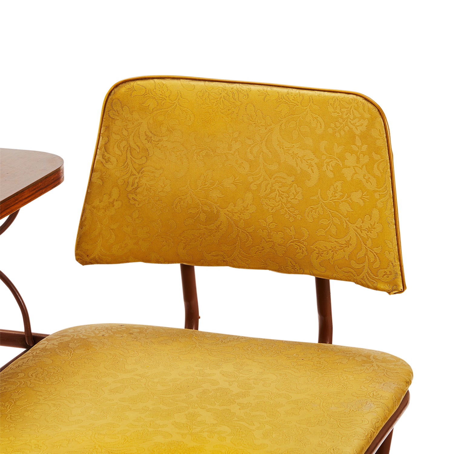 Details: Vintage attached chair and side table with gold embroidered seat and a small gold lamp Dimensions: 36" H x 27" W x 16" D Quantity:...