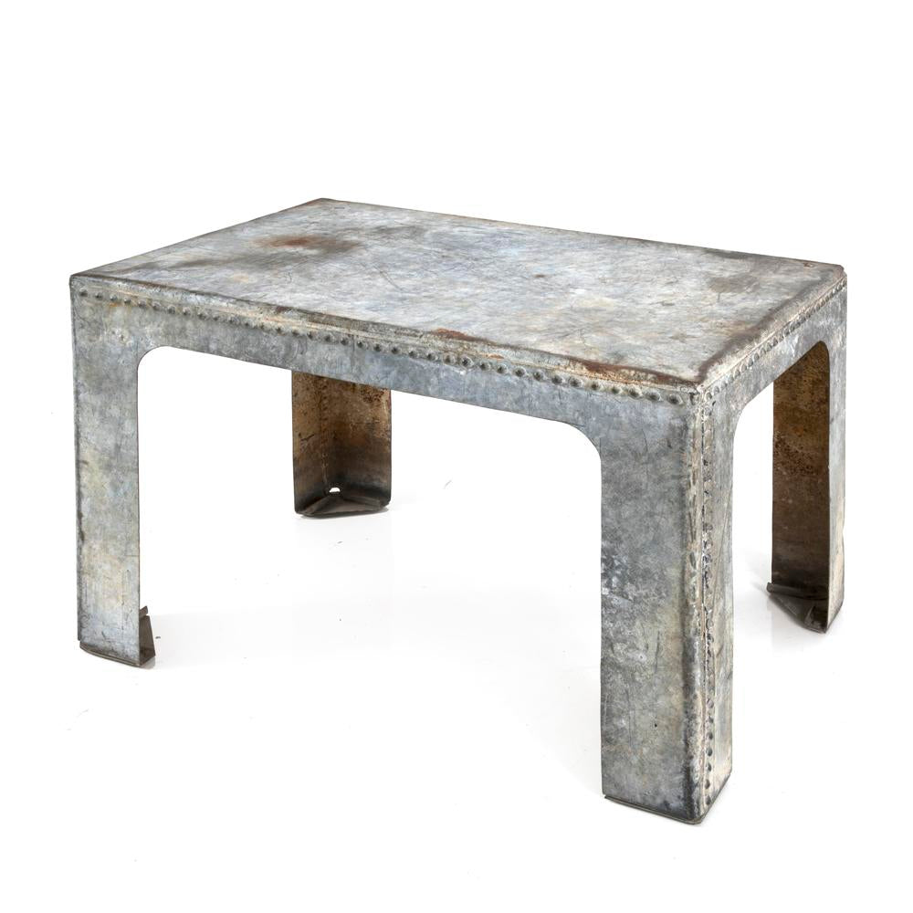 Details: Hammered rusted grey metal work table Dimensions: 27.5" H x 37" W x 26" D