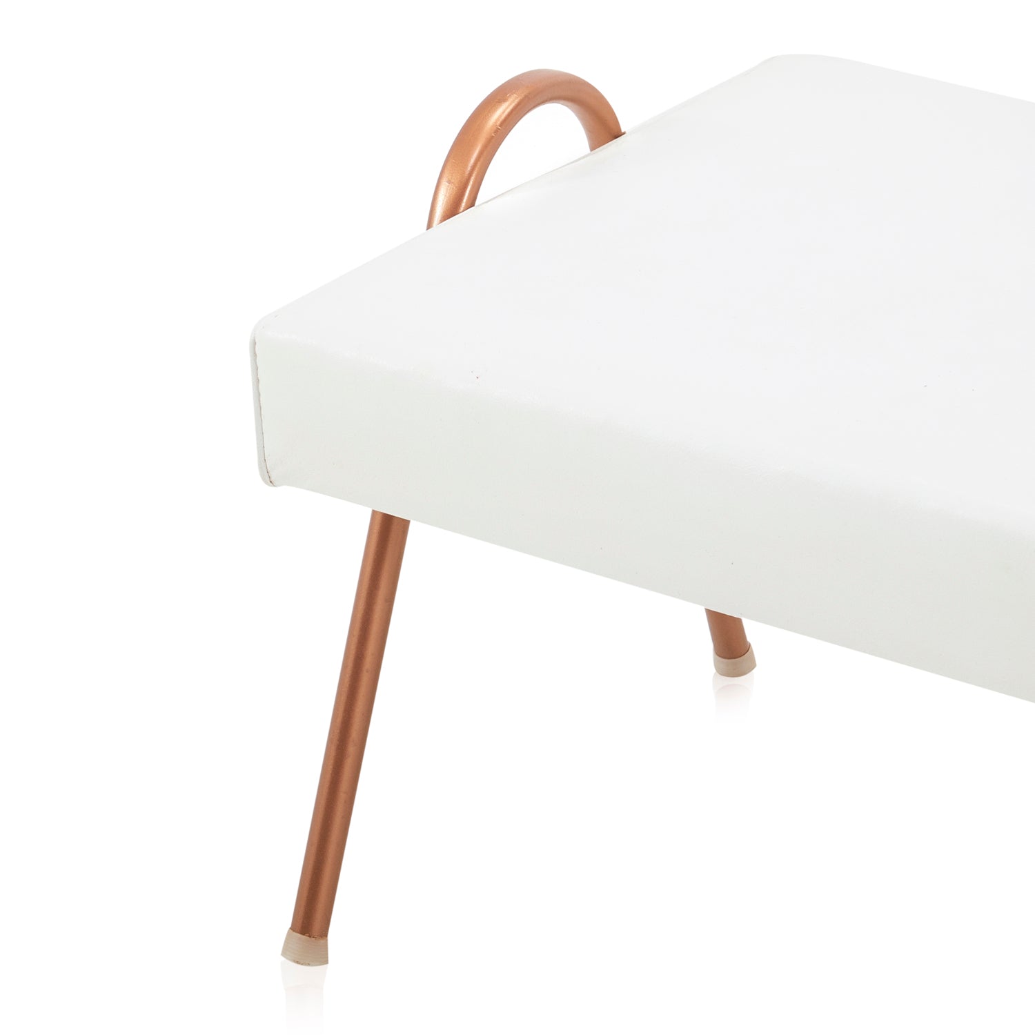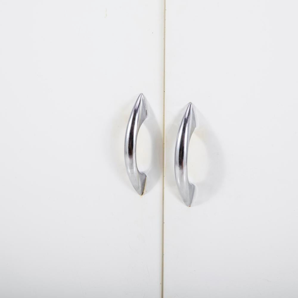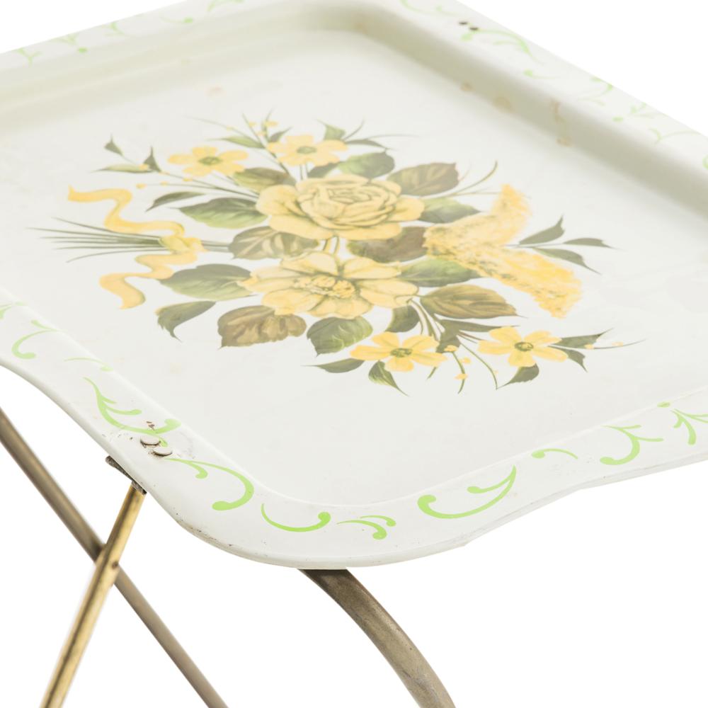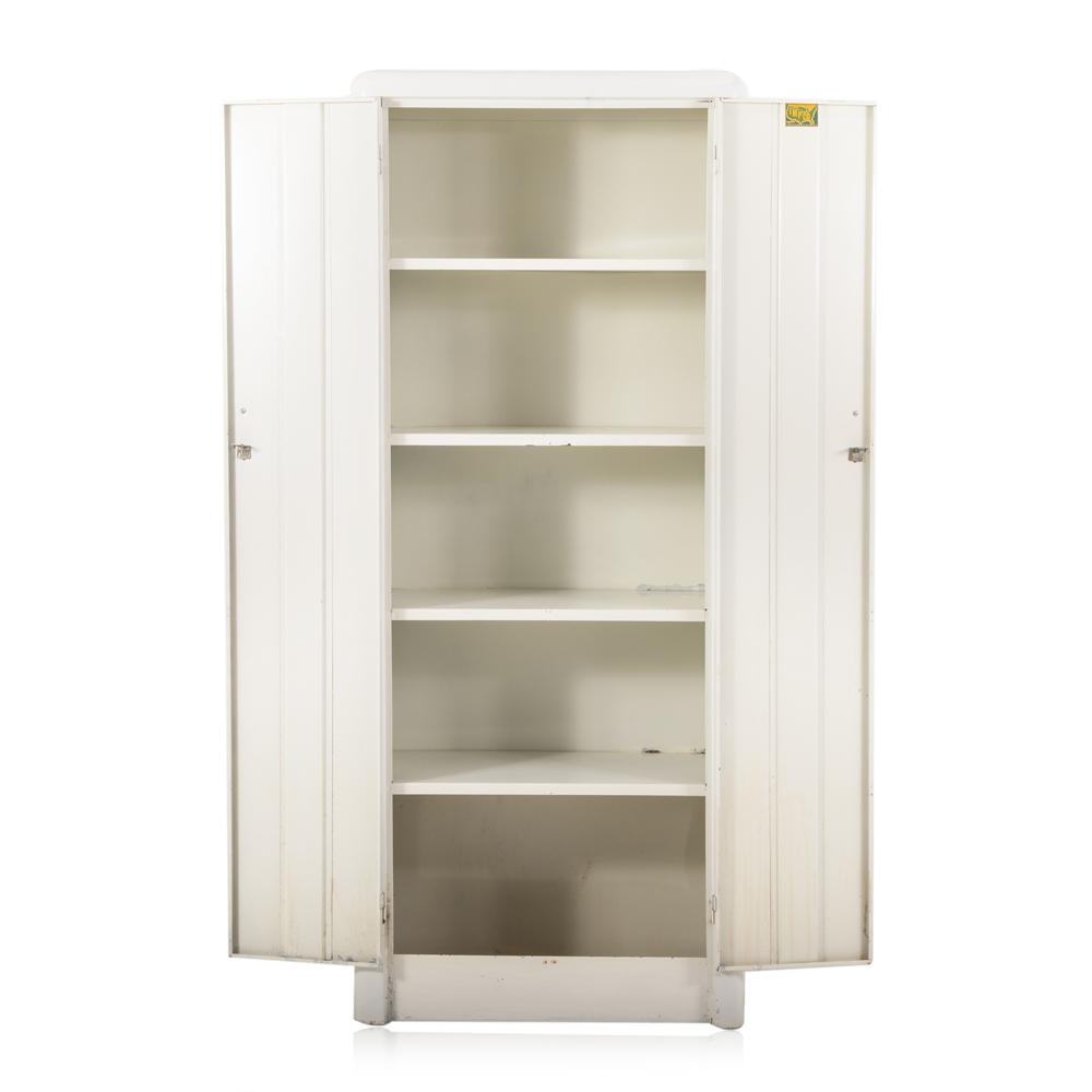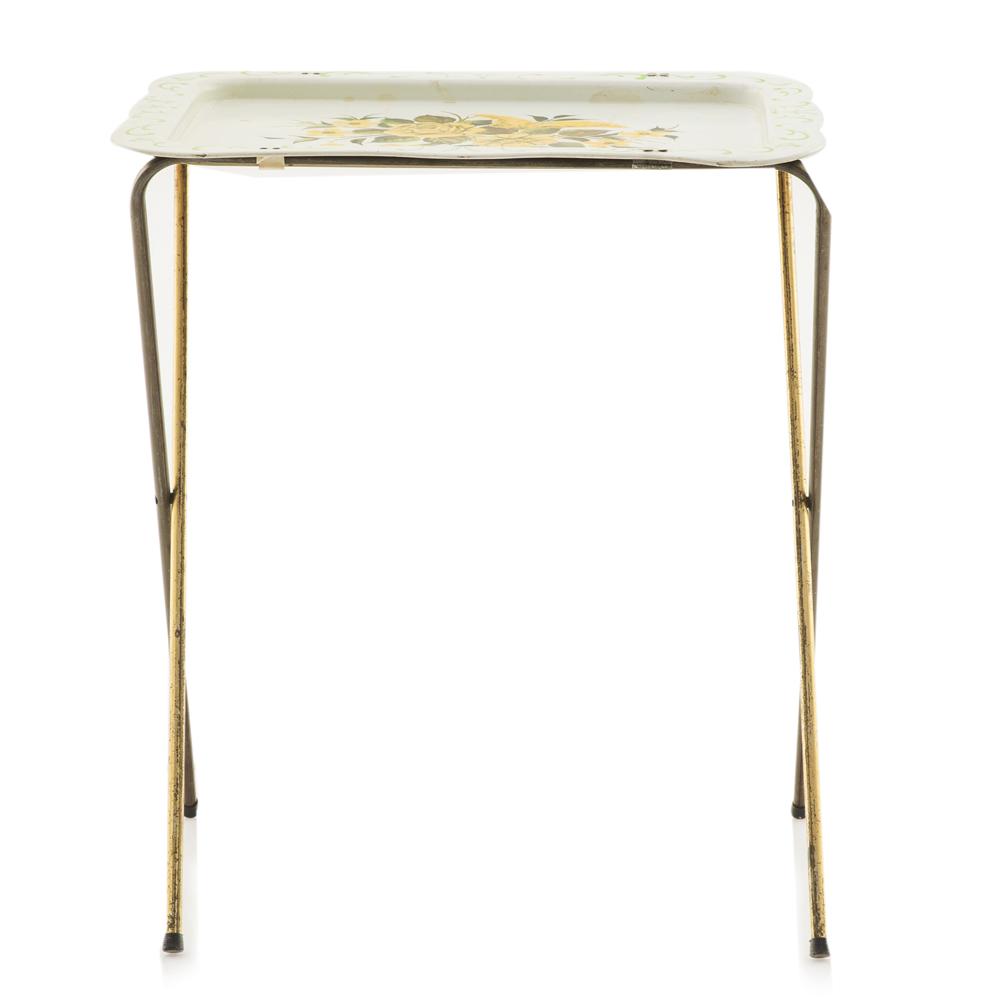 Details: White metal garden arm chair with an ostentatious peacock-like swirly design of the back and arms, with significant chipped paint and rust Dimensions: 41" H x...