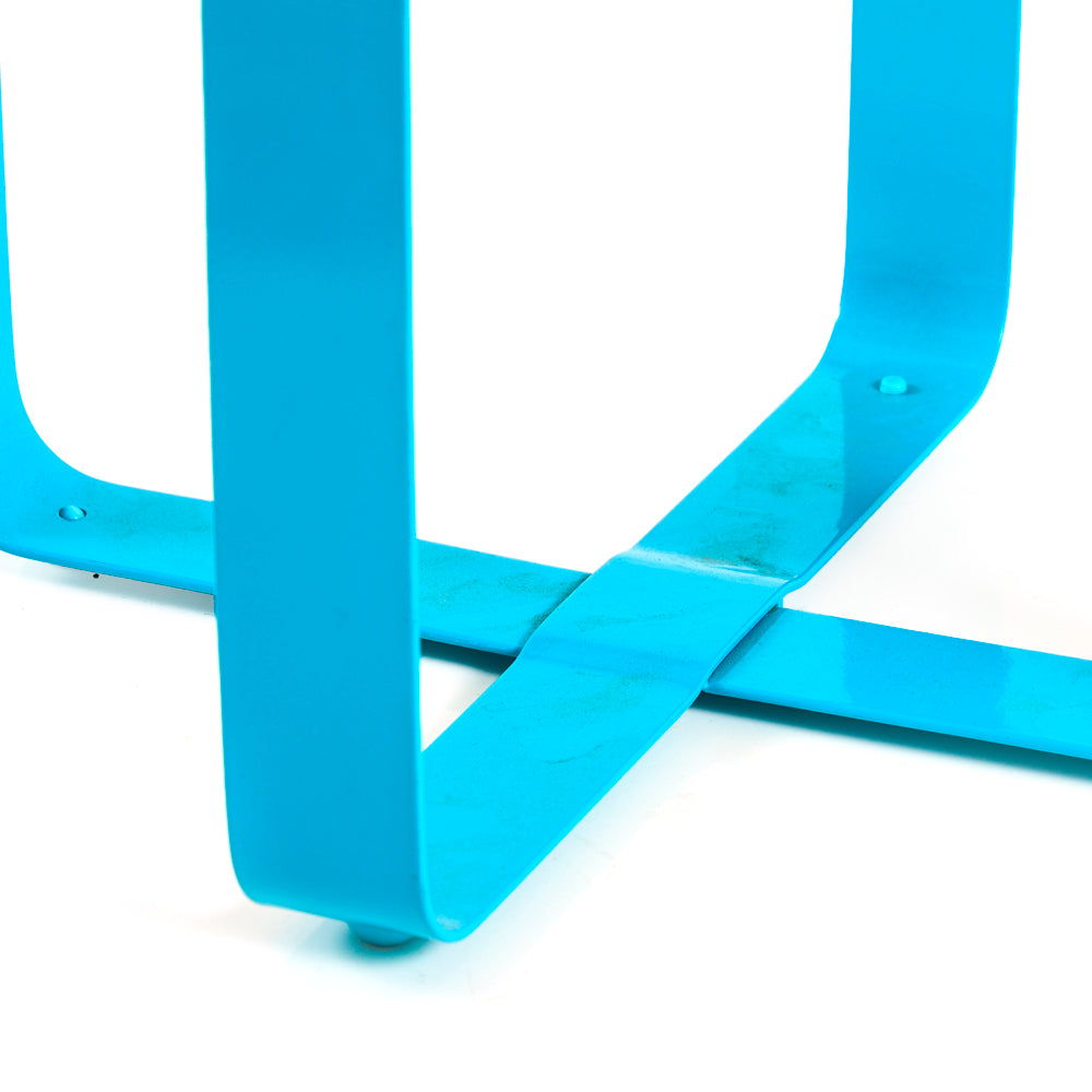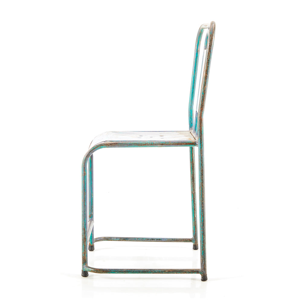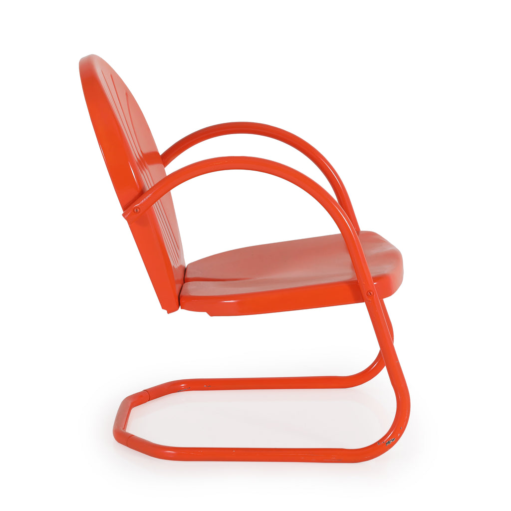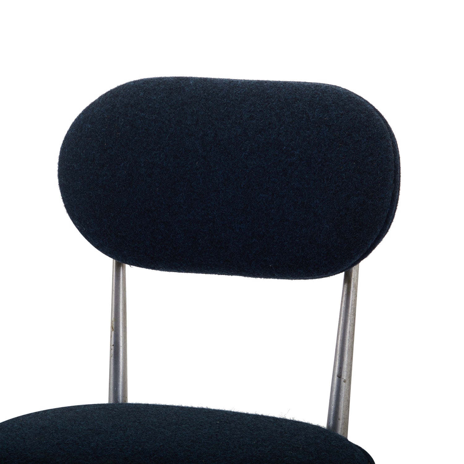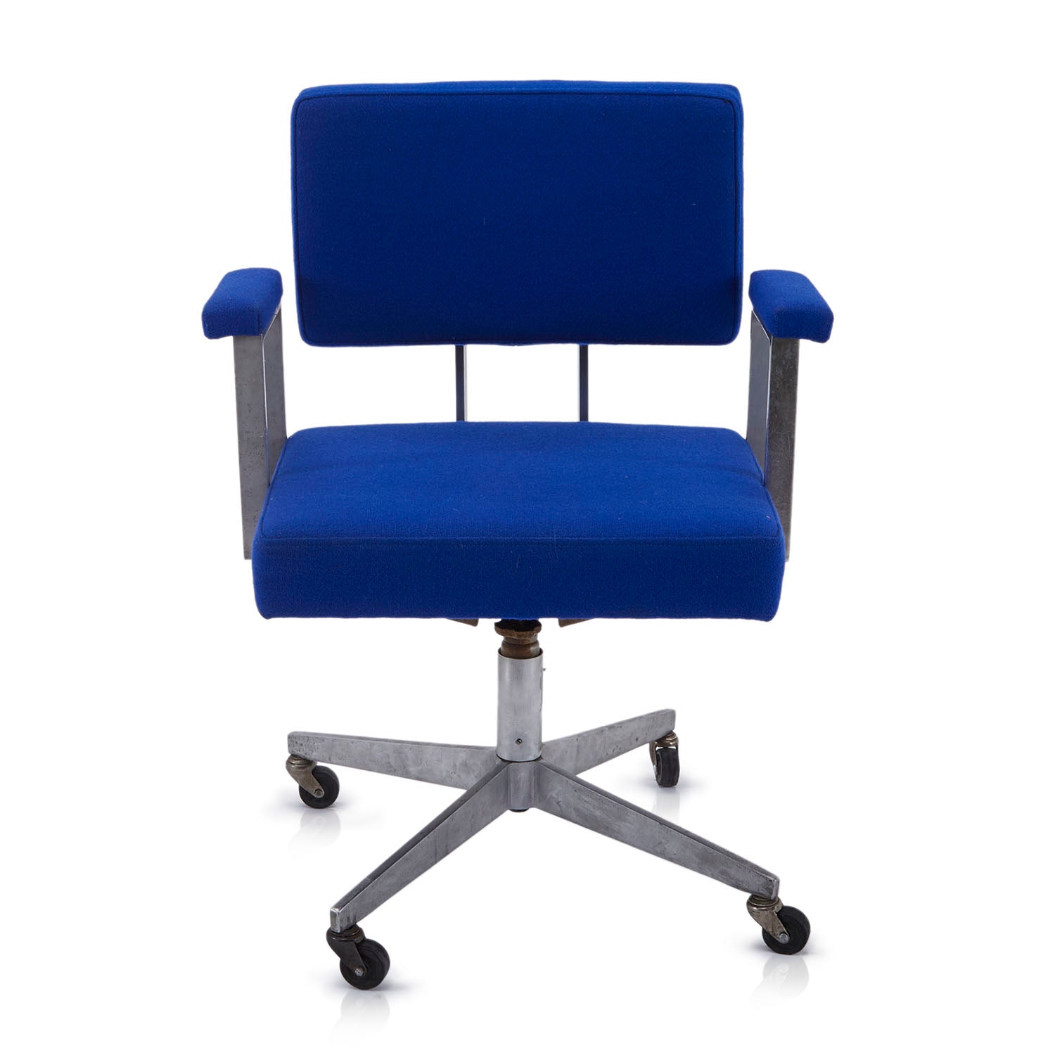 Details: Curved turquoise futuristic lounge chair with rounded grey metal base. Piece is constructed of leather upholstery, with polished metal legs. Dimensions: 36" H x 88"...
