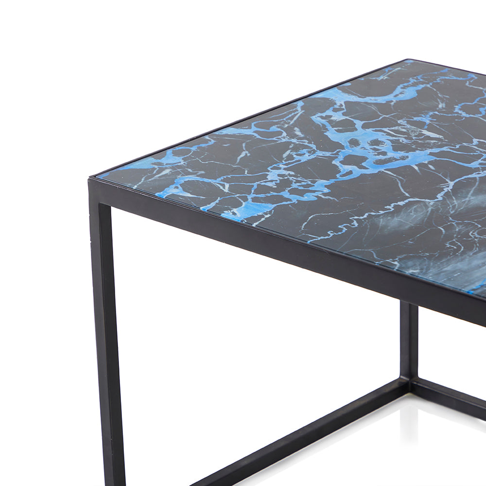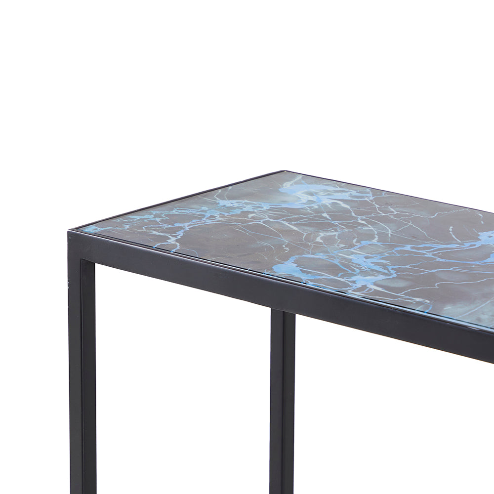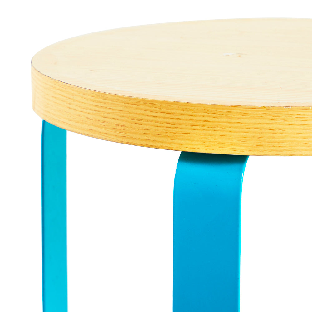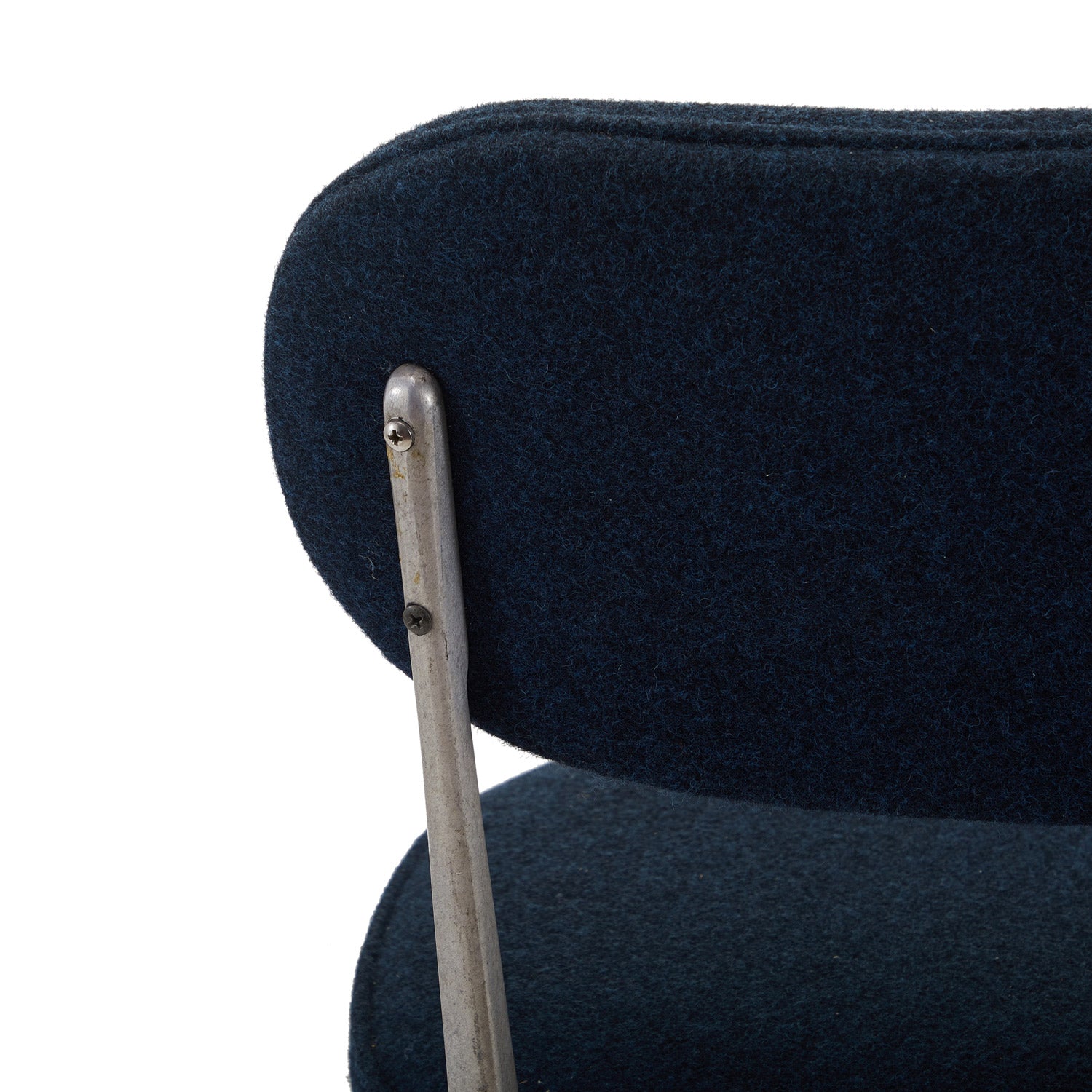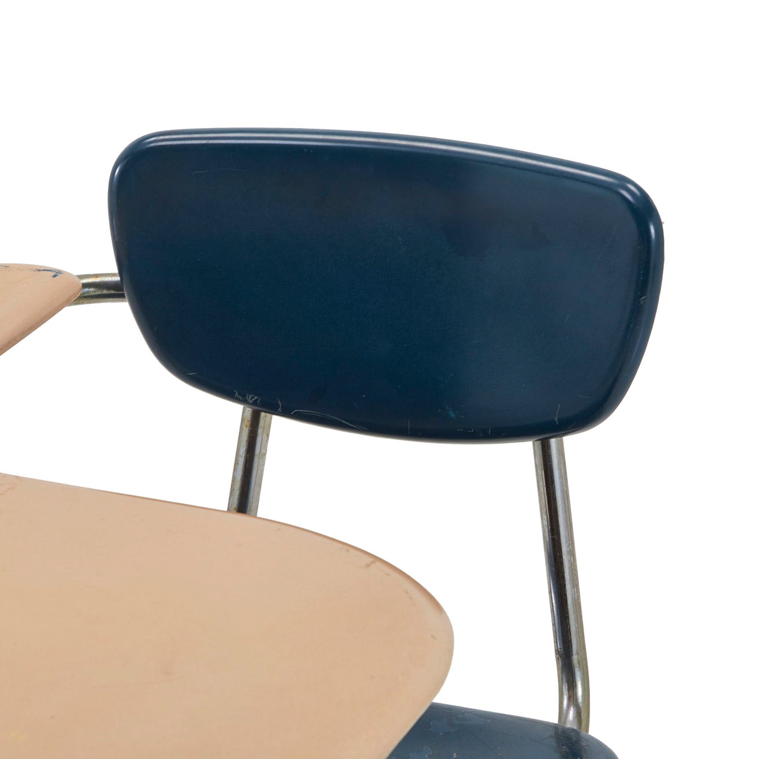 Details: Curved turquoise futuristic lounge chair with rounded grey metal base. Piece is constructed of leather upholstery, with polished metal legs. Dimensions: 36" H x 88"...