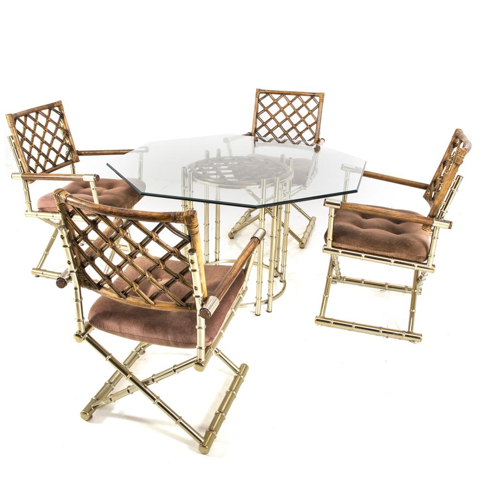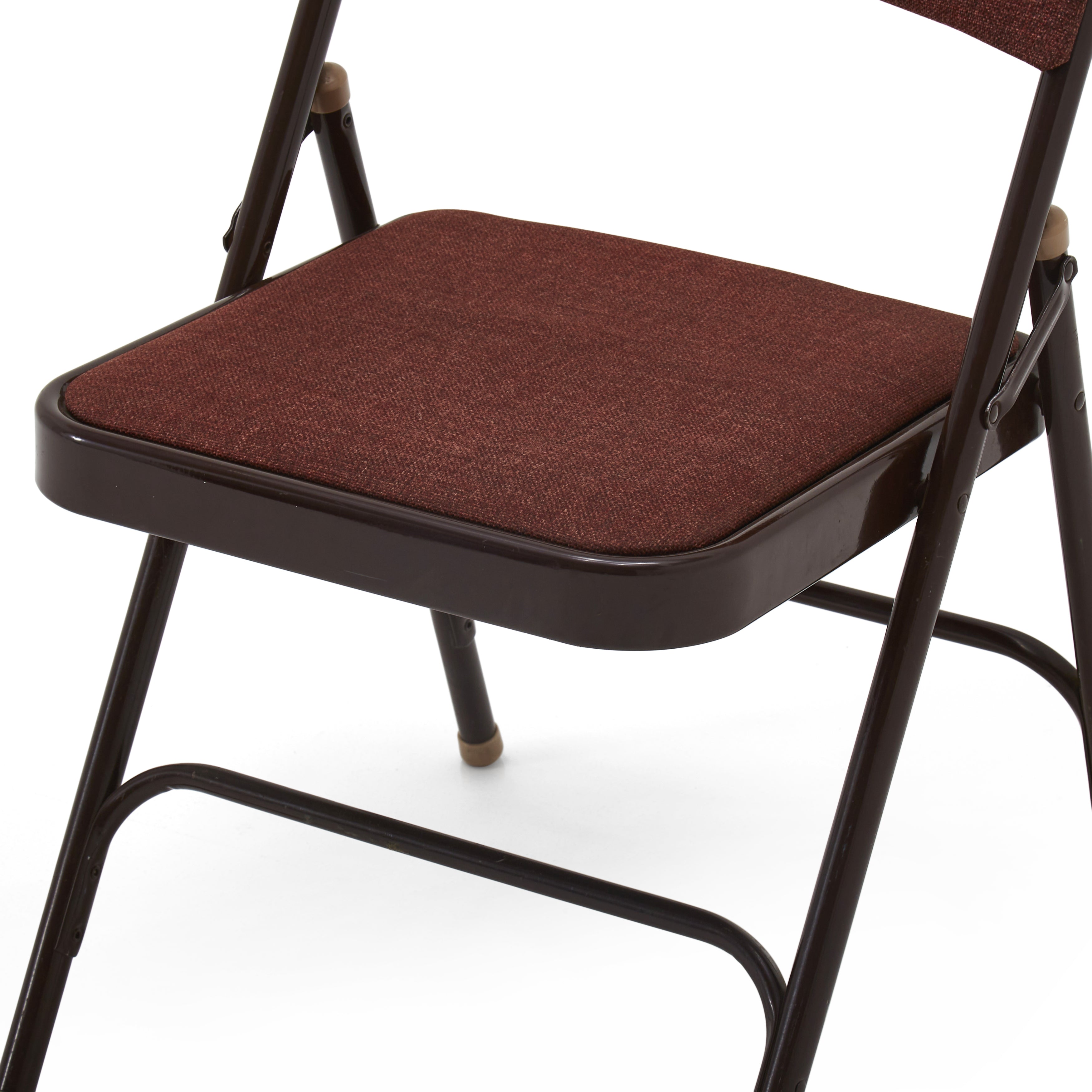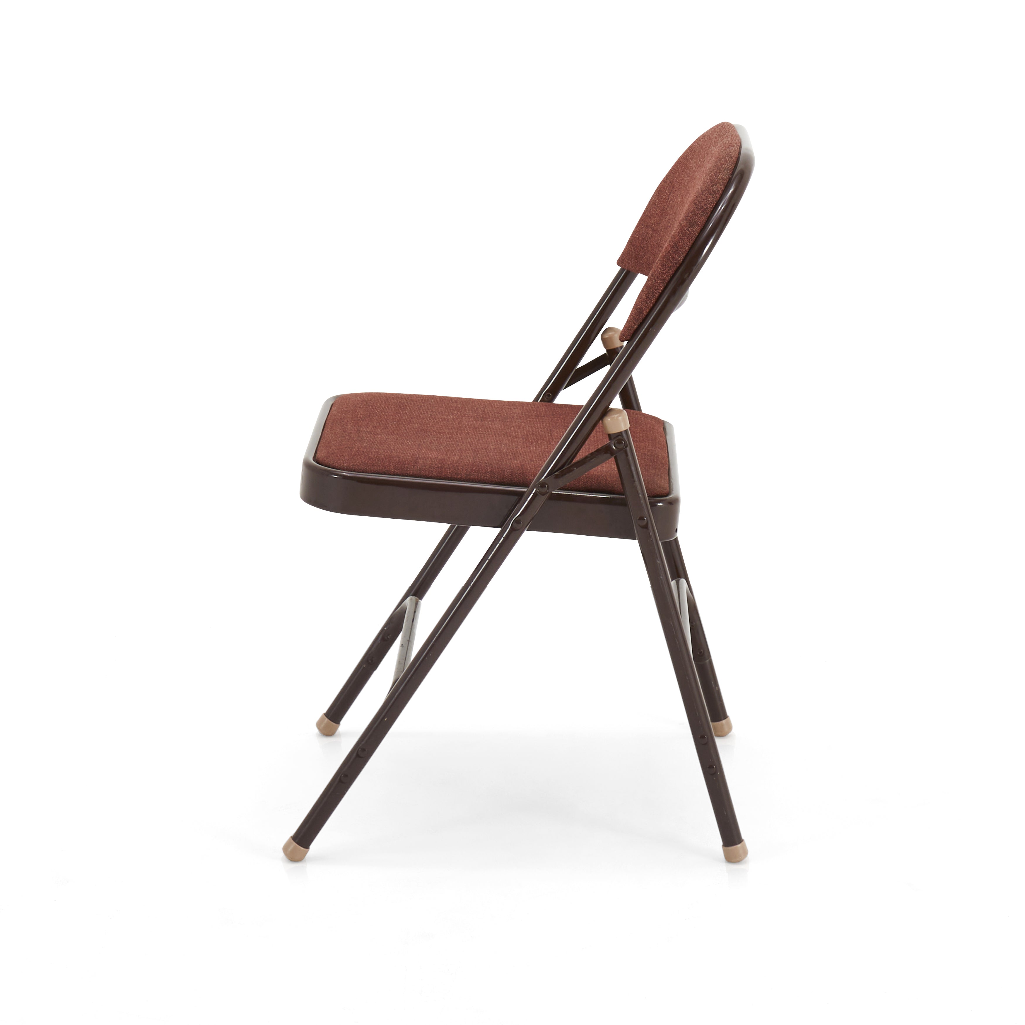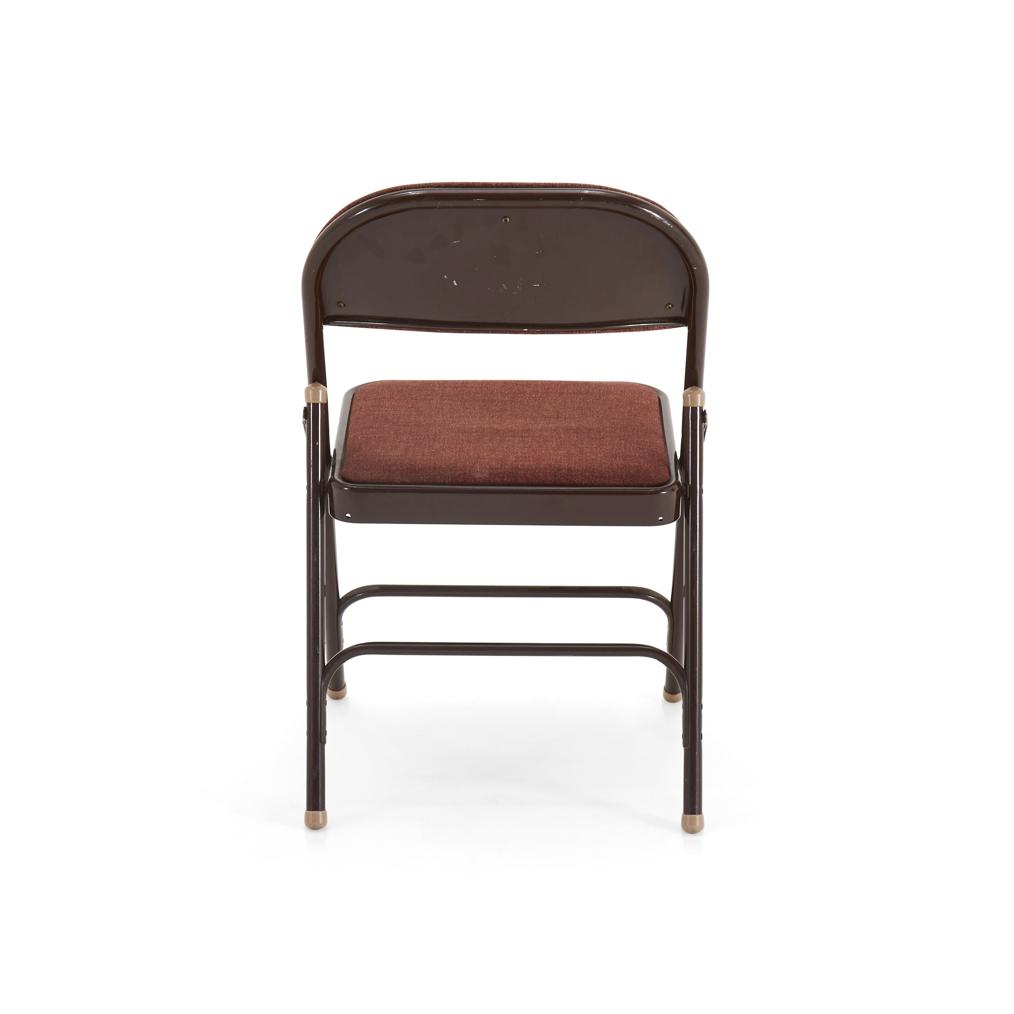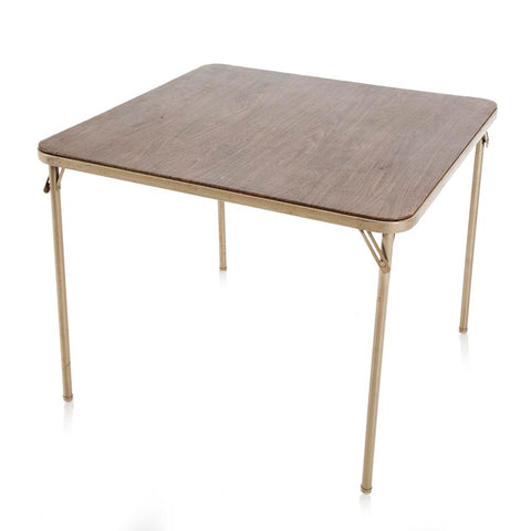 Details: Brown folding card table with tan metal trim and legs (matching chairs also available, listed separately) Dimensions: 26.75" H x 33.5" W x 33.5"...