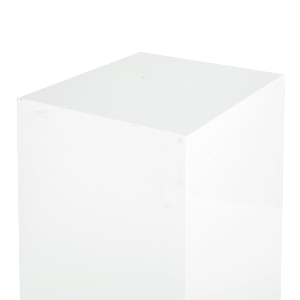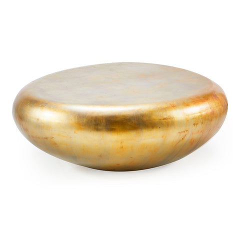 Details: Curved cream plastic console table with gold detailing, smoked glass inset tabletop, and lower shelfDimensions: 27" H x 48" W x 17" D