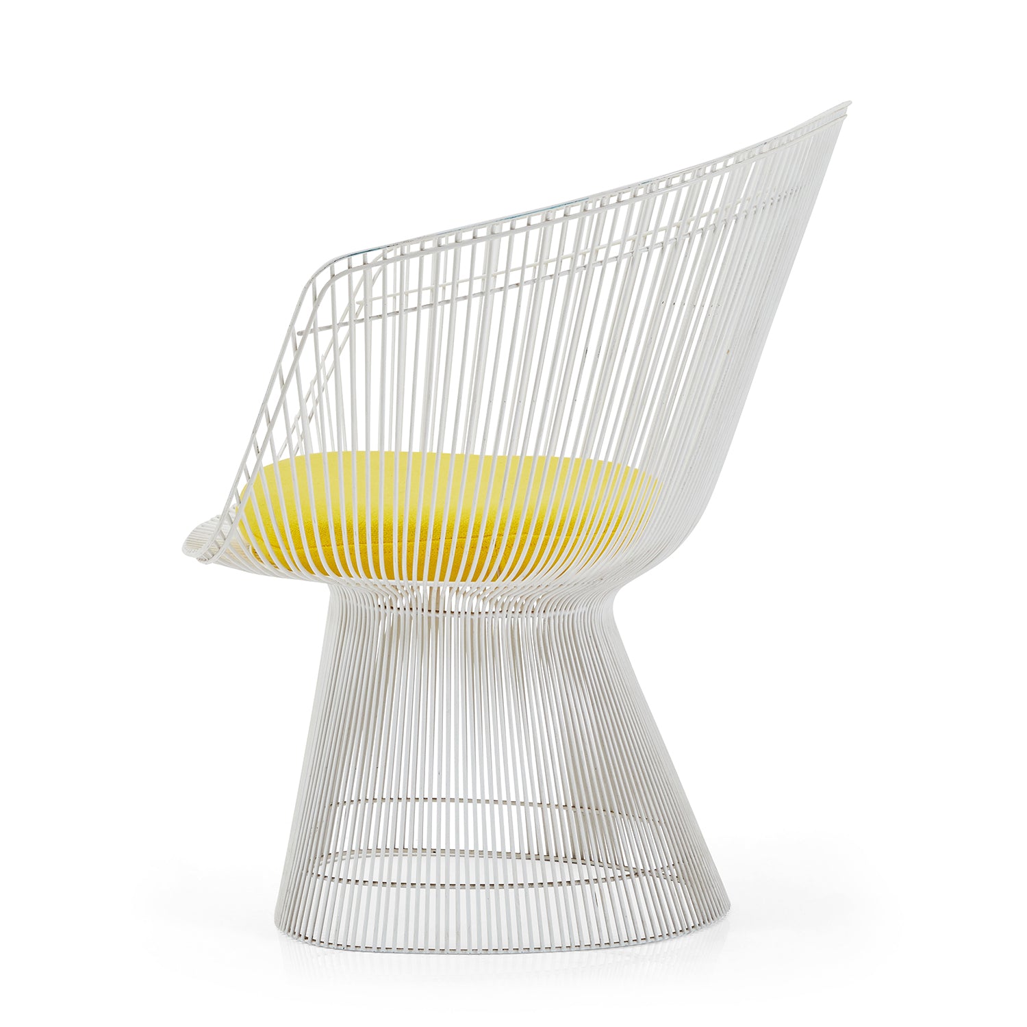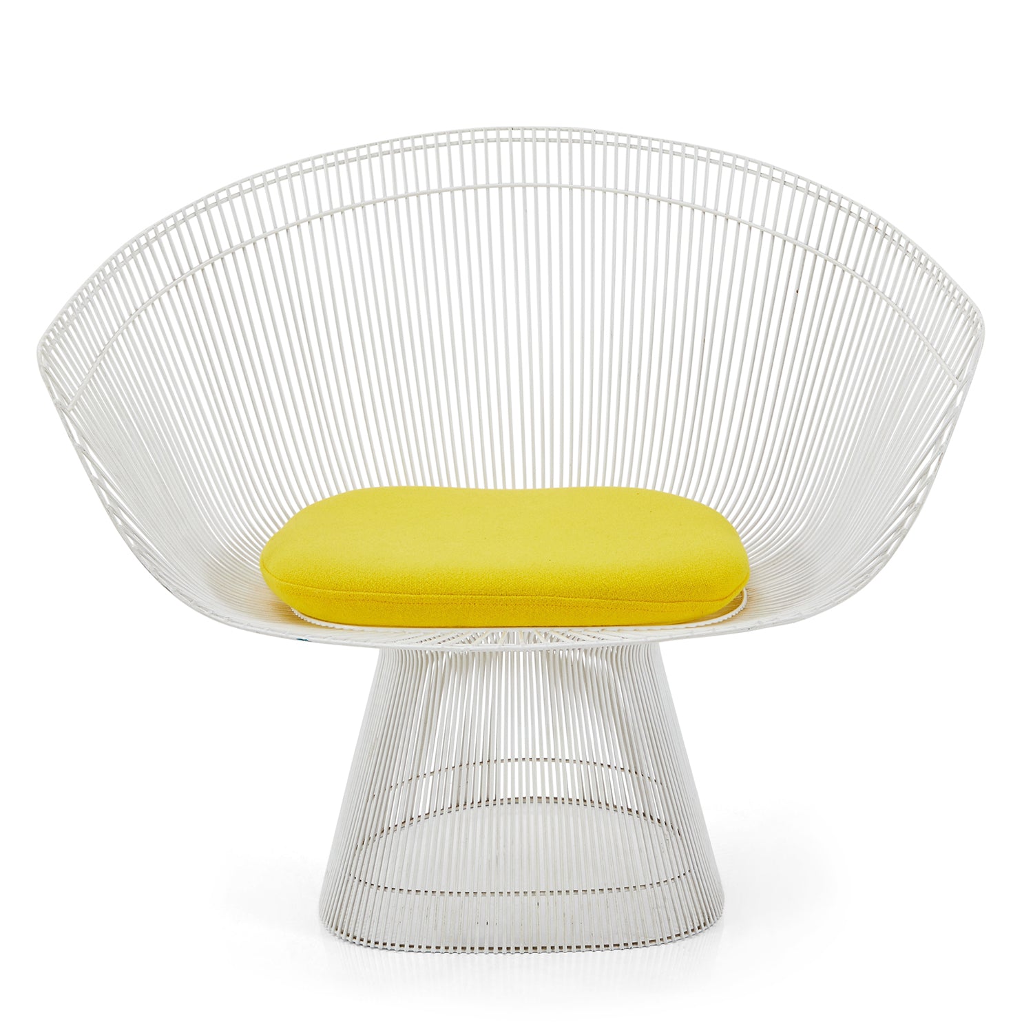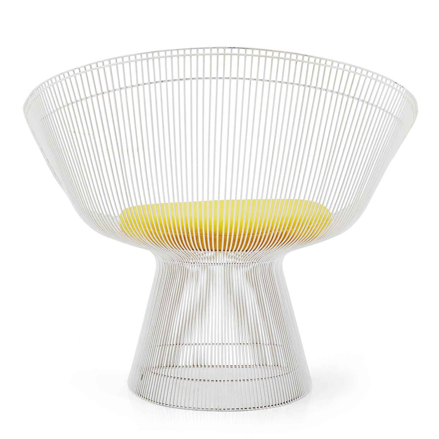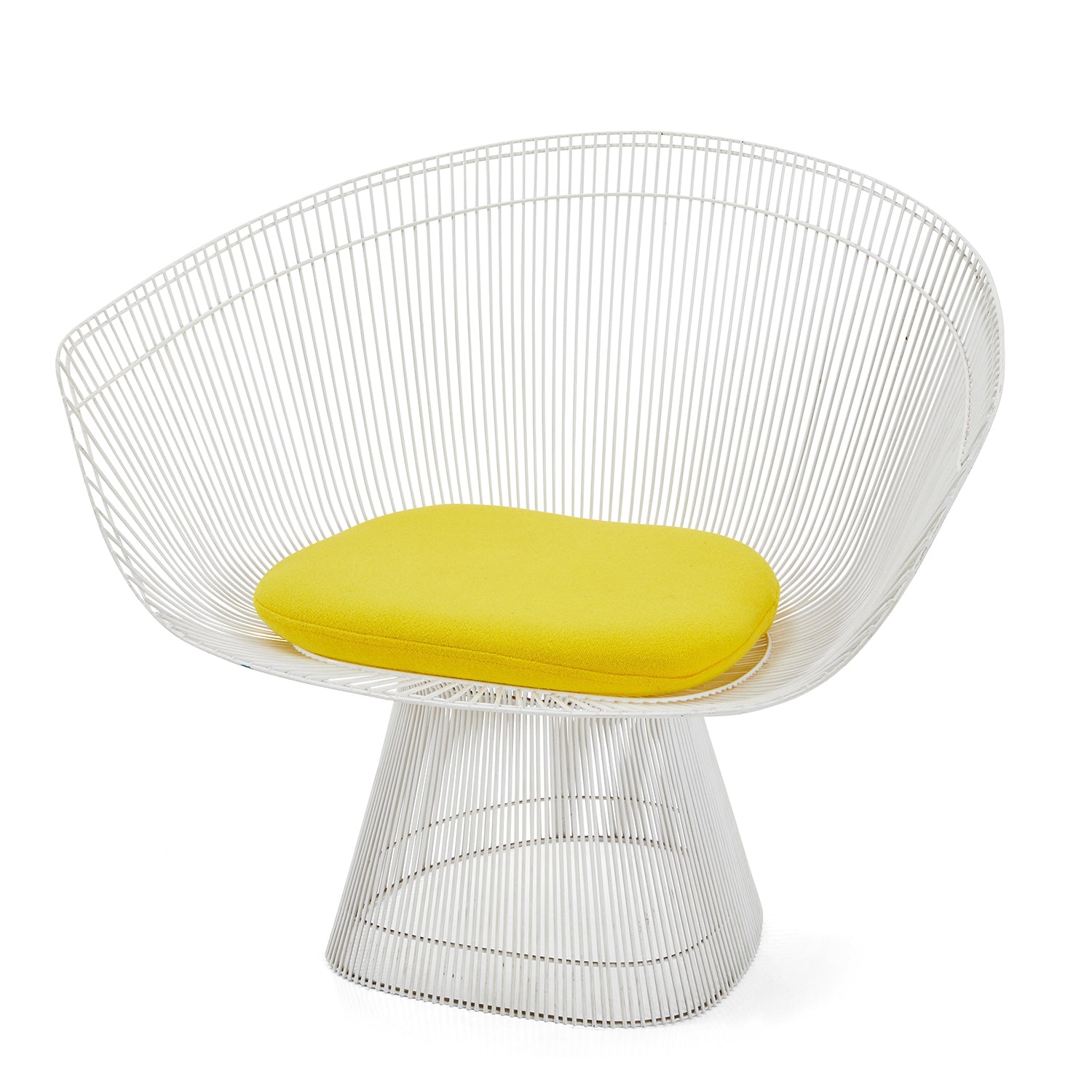 Details: Platner lounge chair c. 1966 constructed from curved steel rods radiating from a yellow cushion