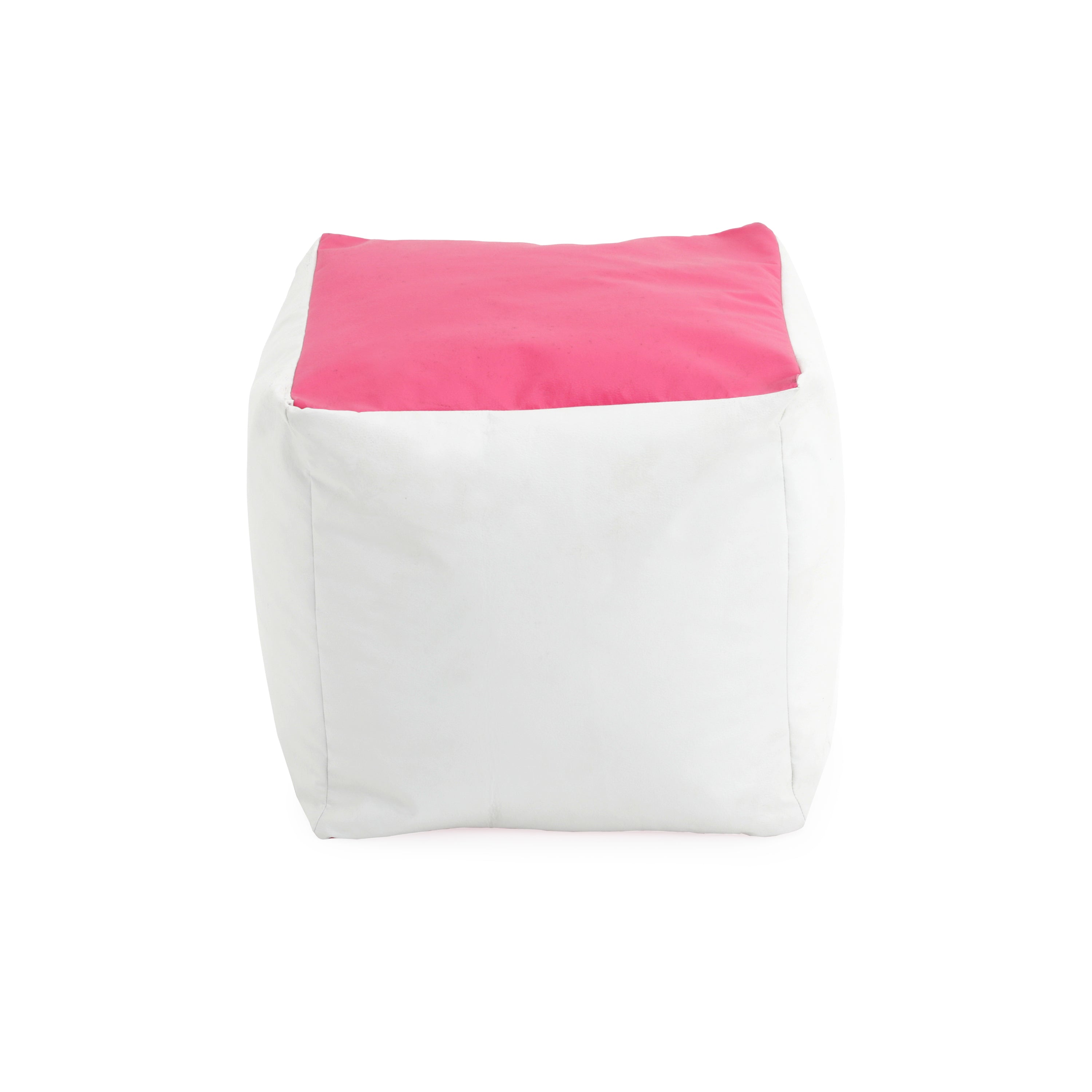 Details: White mod ottman with orange cushion, part of a matching set Dimensions: 28" H x 18" W x 13" D