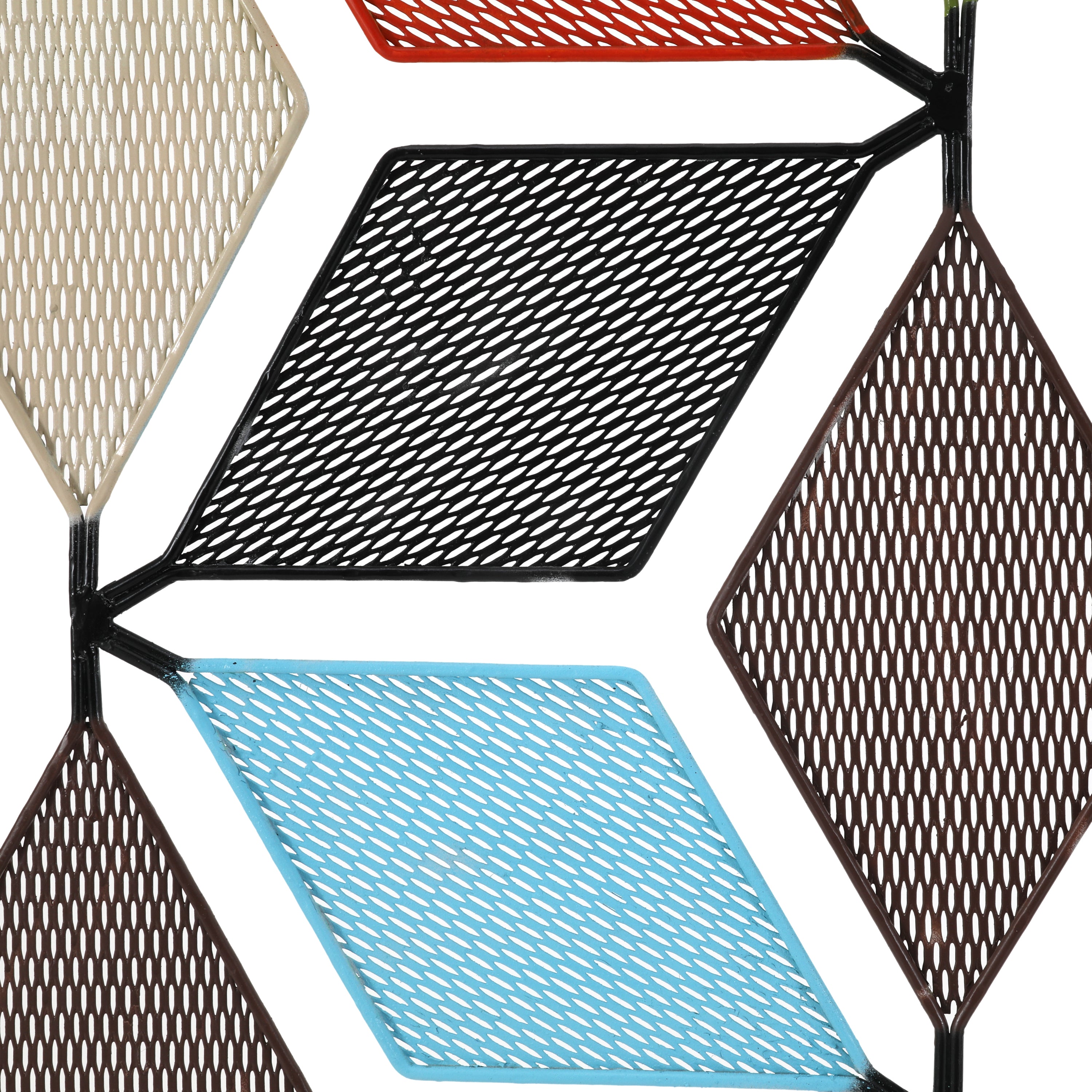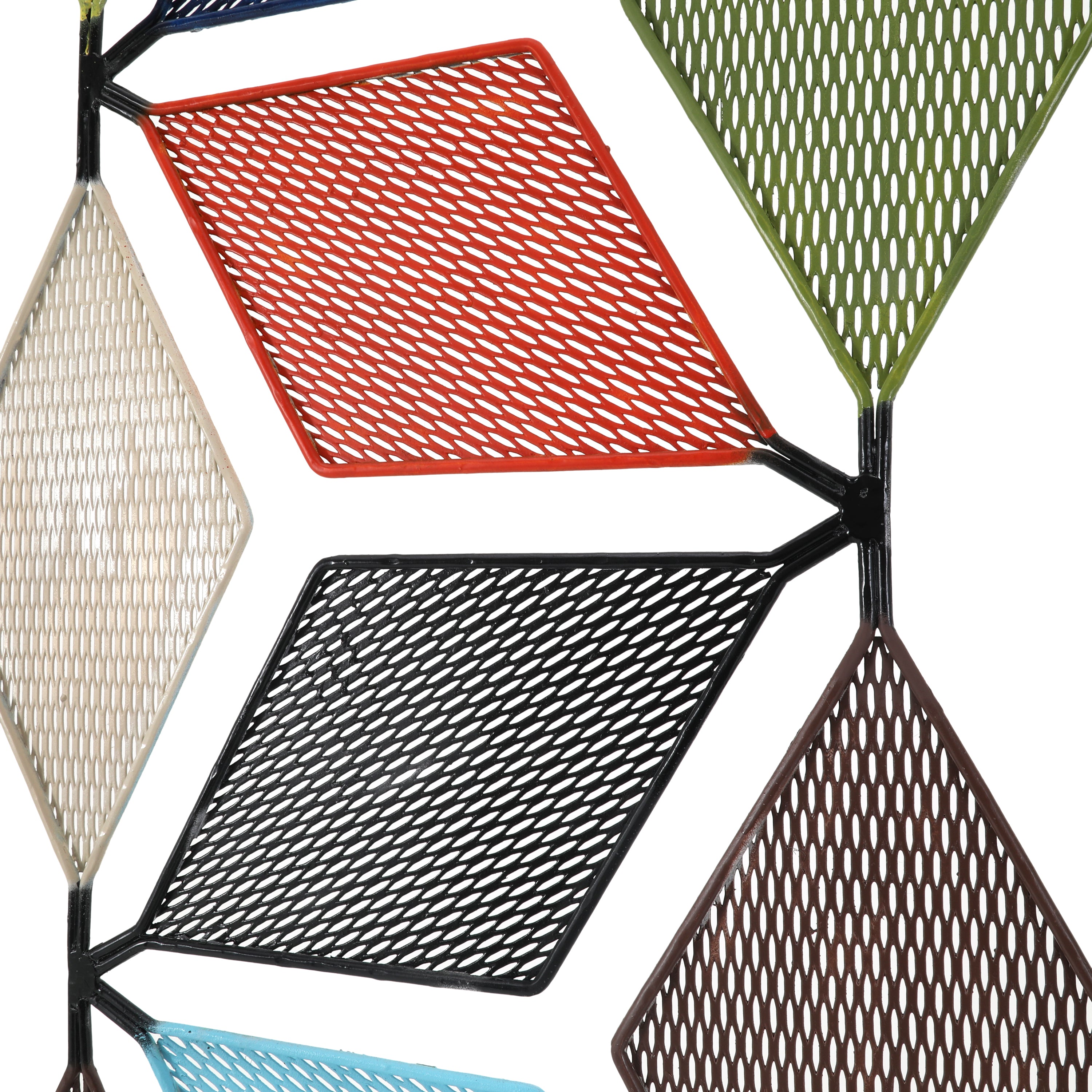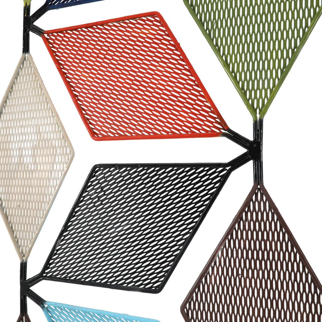 Details: Black, Red, Green, Blue, and Yellow diamonds in a black metal framed shaped Divider, Metal, Screen, Single, Individual Dimensions: 89" H x 26.25" W