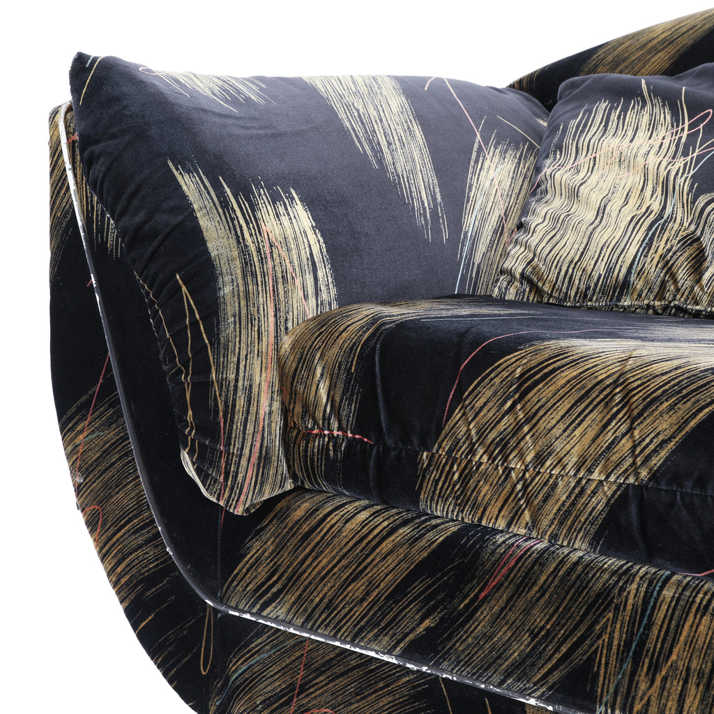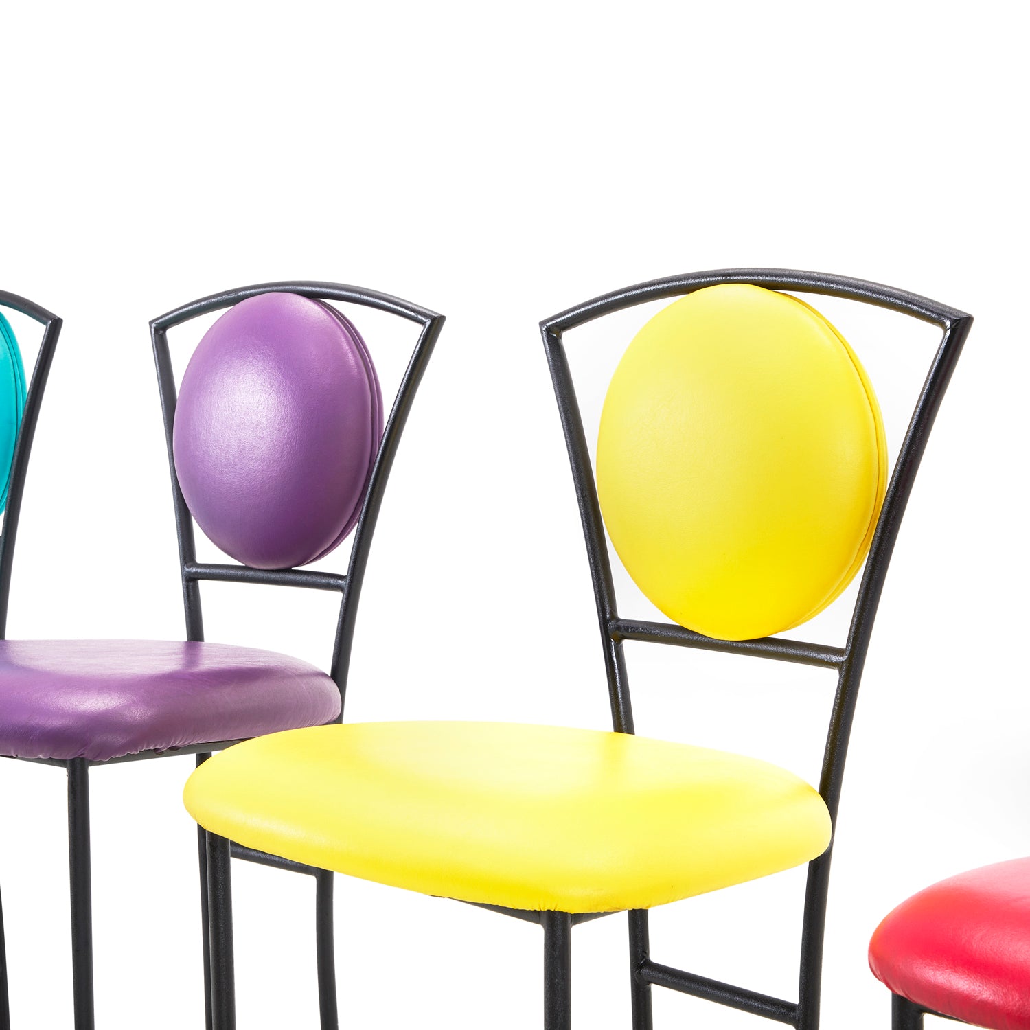 Details: Orange floral vinyl vintage dining chair with metal legs (rented separately from matching table and chairs)