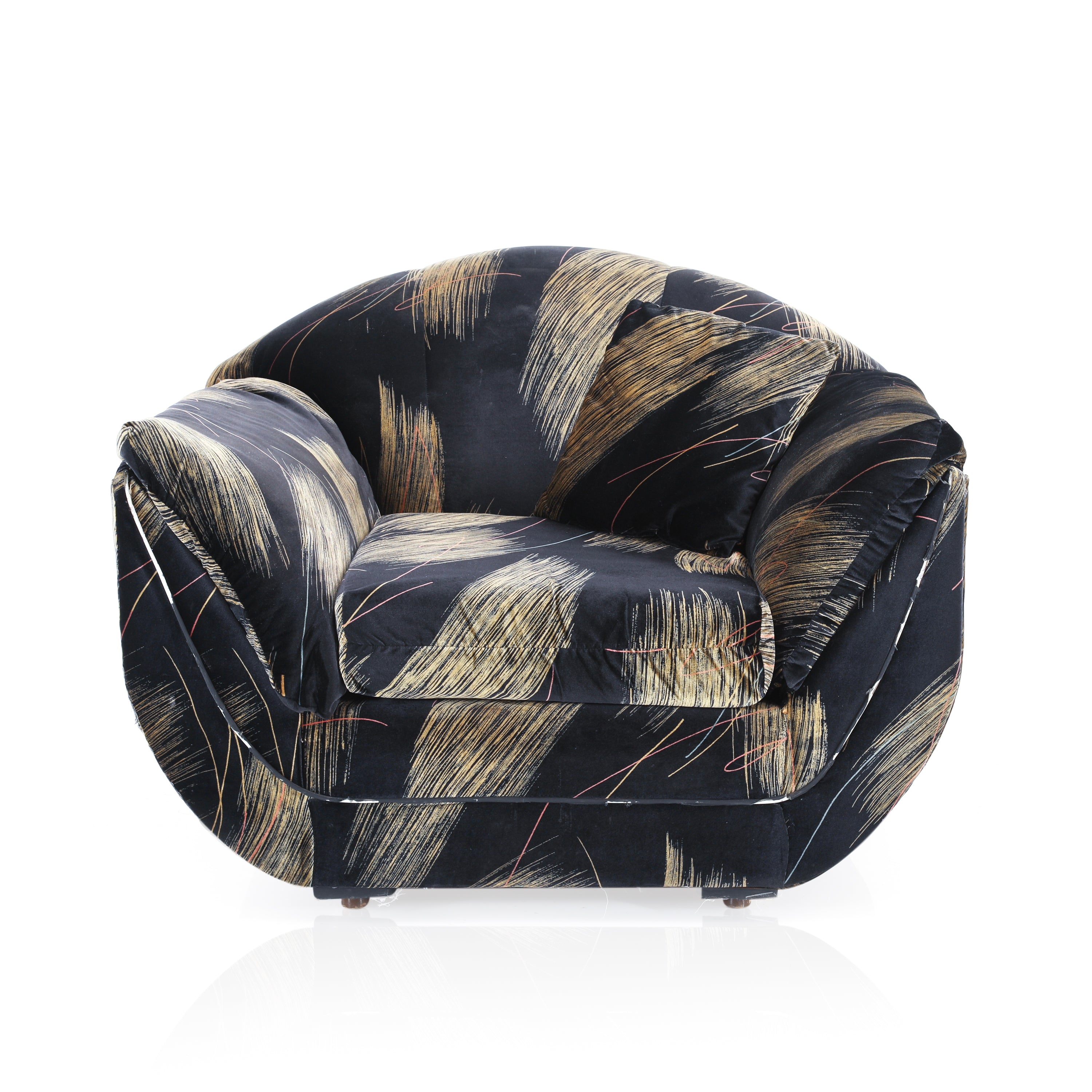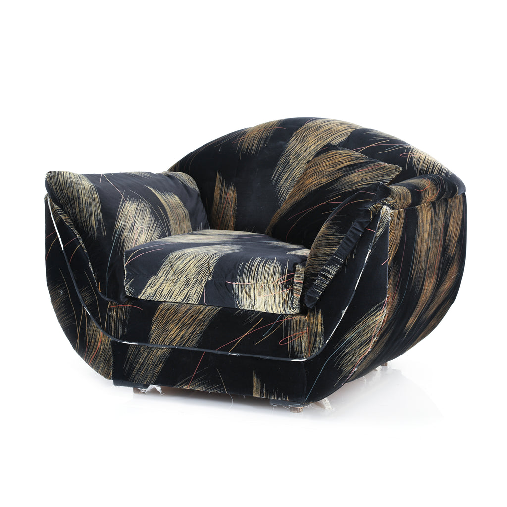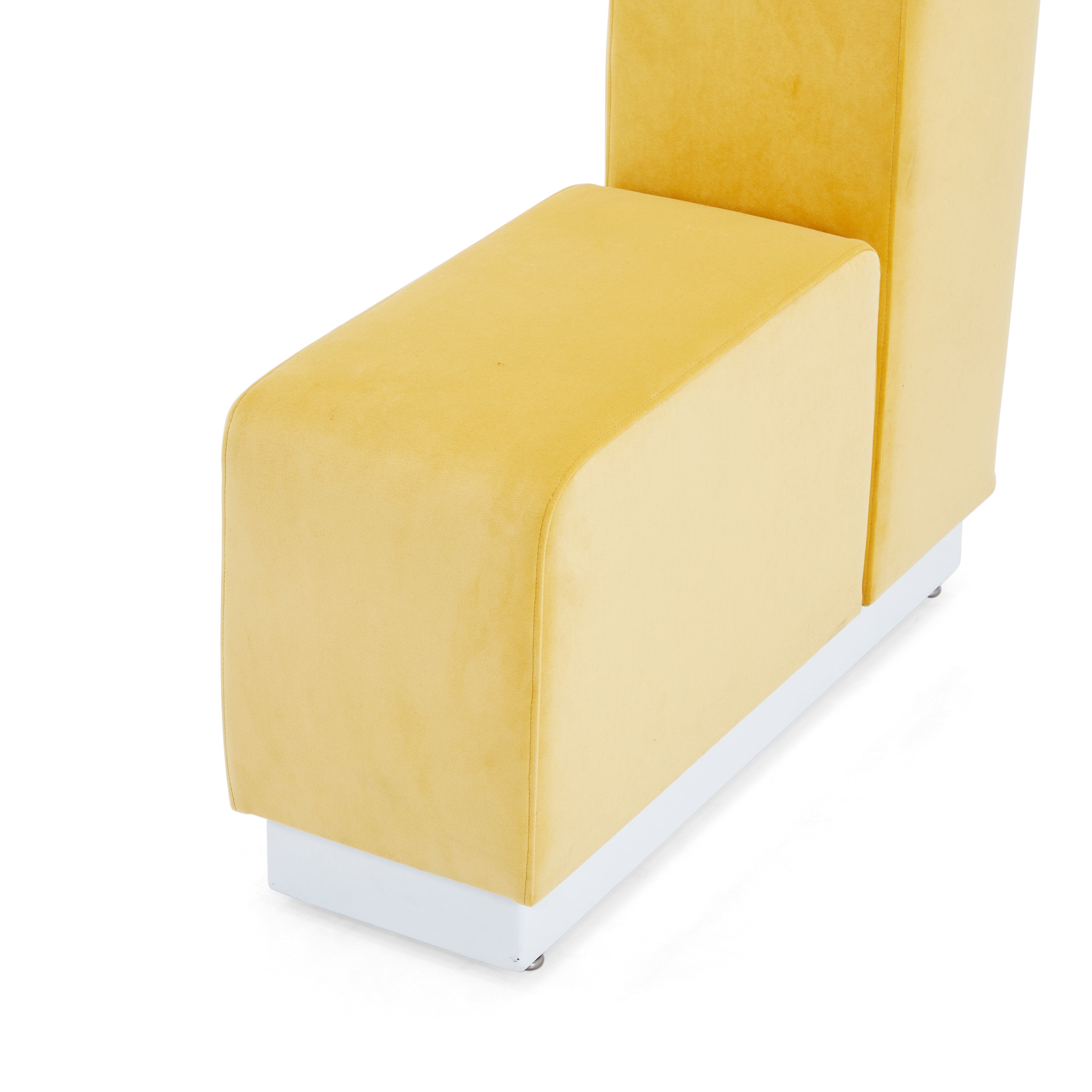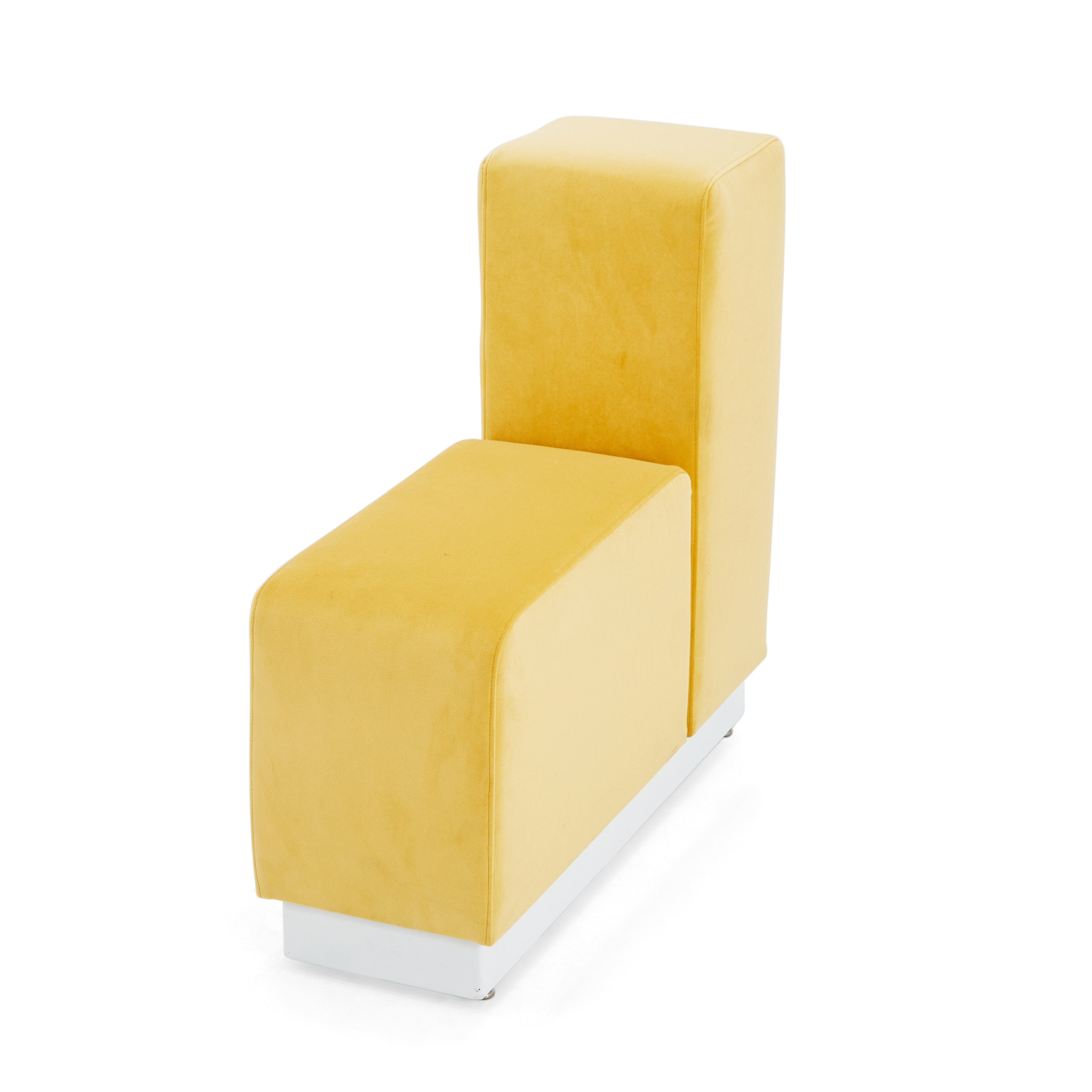 Details: Mid-century futuristic lounge chair with a round white plastic base and a circular bright yellow upholstered seat Dimensions: 27" H x 37" W x 37" D Quantity:...