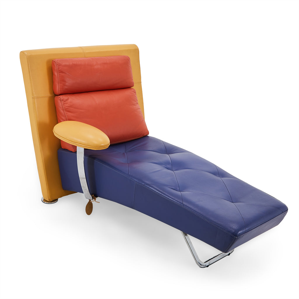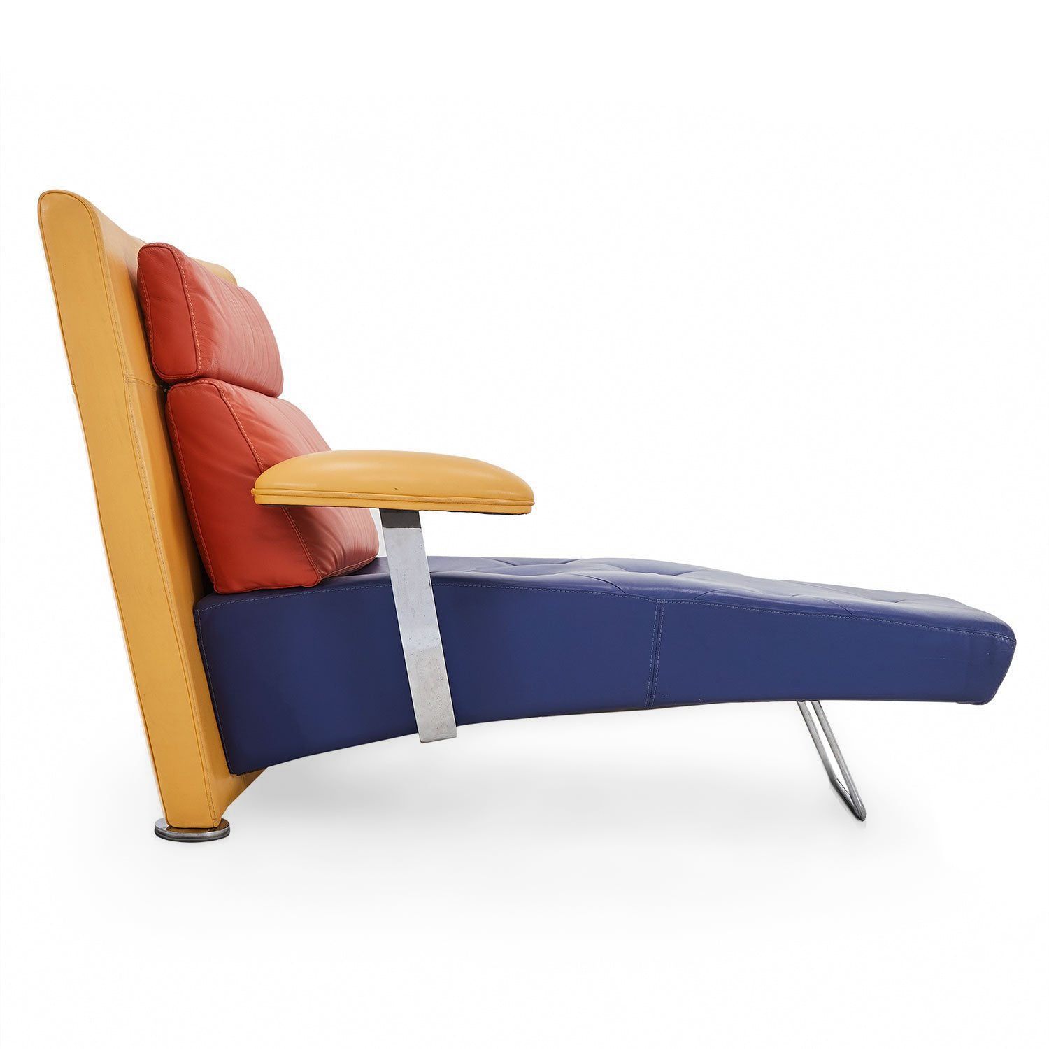 Details: Orange and metal frame 90's modern outdoor chaise (available with or without cushions) designed by Werner Aisslinger