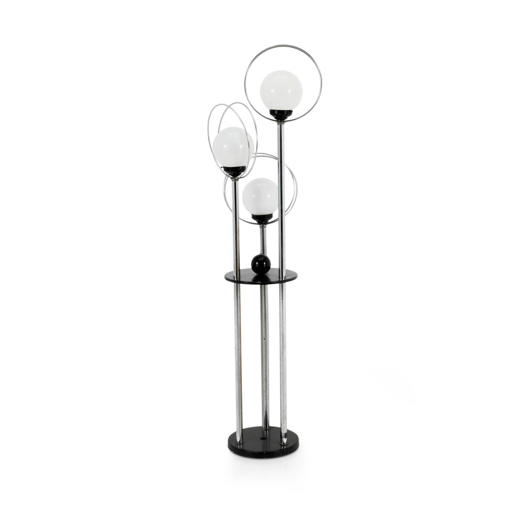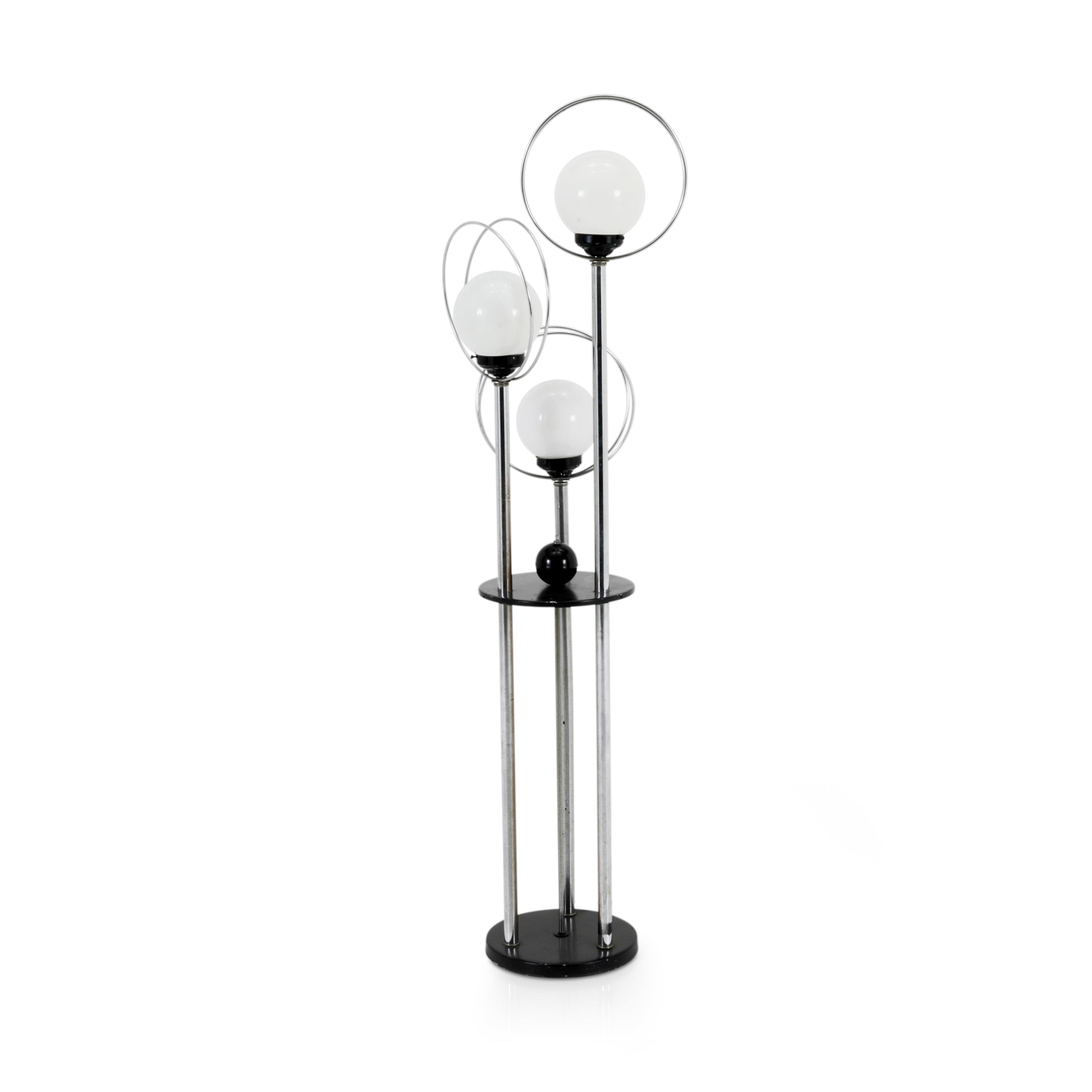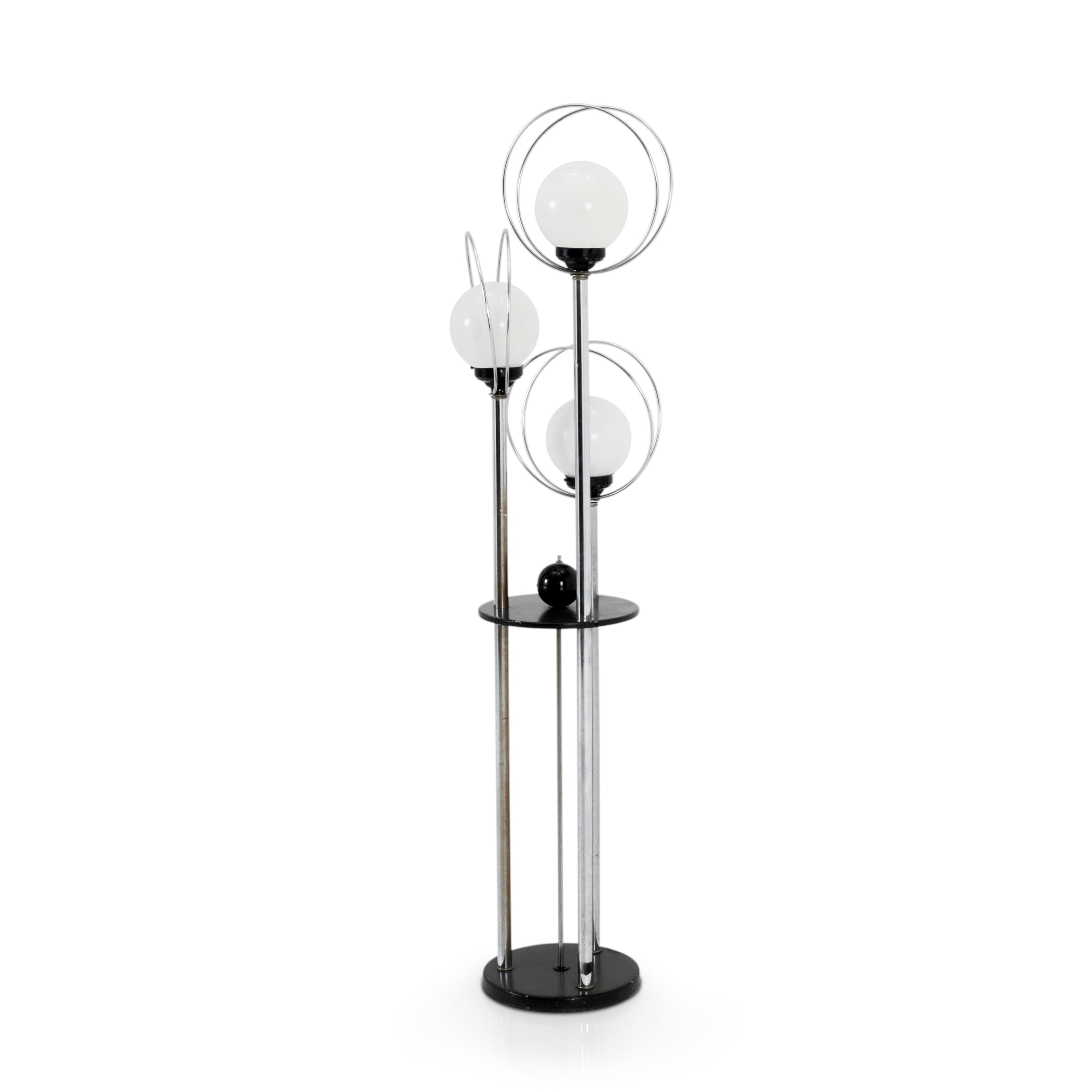 Details: Aluminum Stacked Cones (Xmas Tree Style), Blue Neon Lights Under the Cones, Lucite Round Ball on Top, Floor Lamp, Missing Power Supply Dimensions: 51" H...