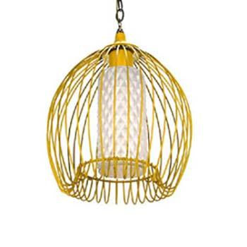 Details: Yellow, Metal, Wire, Looped, Flower, White Inner Cylinder, Hanging, Pendant, Light, Lamp