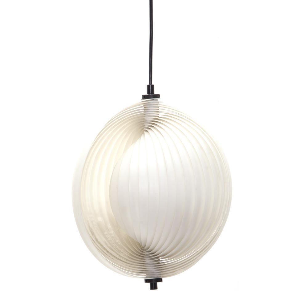 Details: Pendant with Metal Discs on 2 Ring Metal Frame, Equipped with Chrome Ceiling Canopy, 157 Inches of Black Wire, Design by Verner Panton, 1964,...
