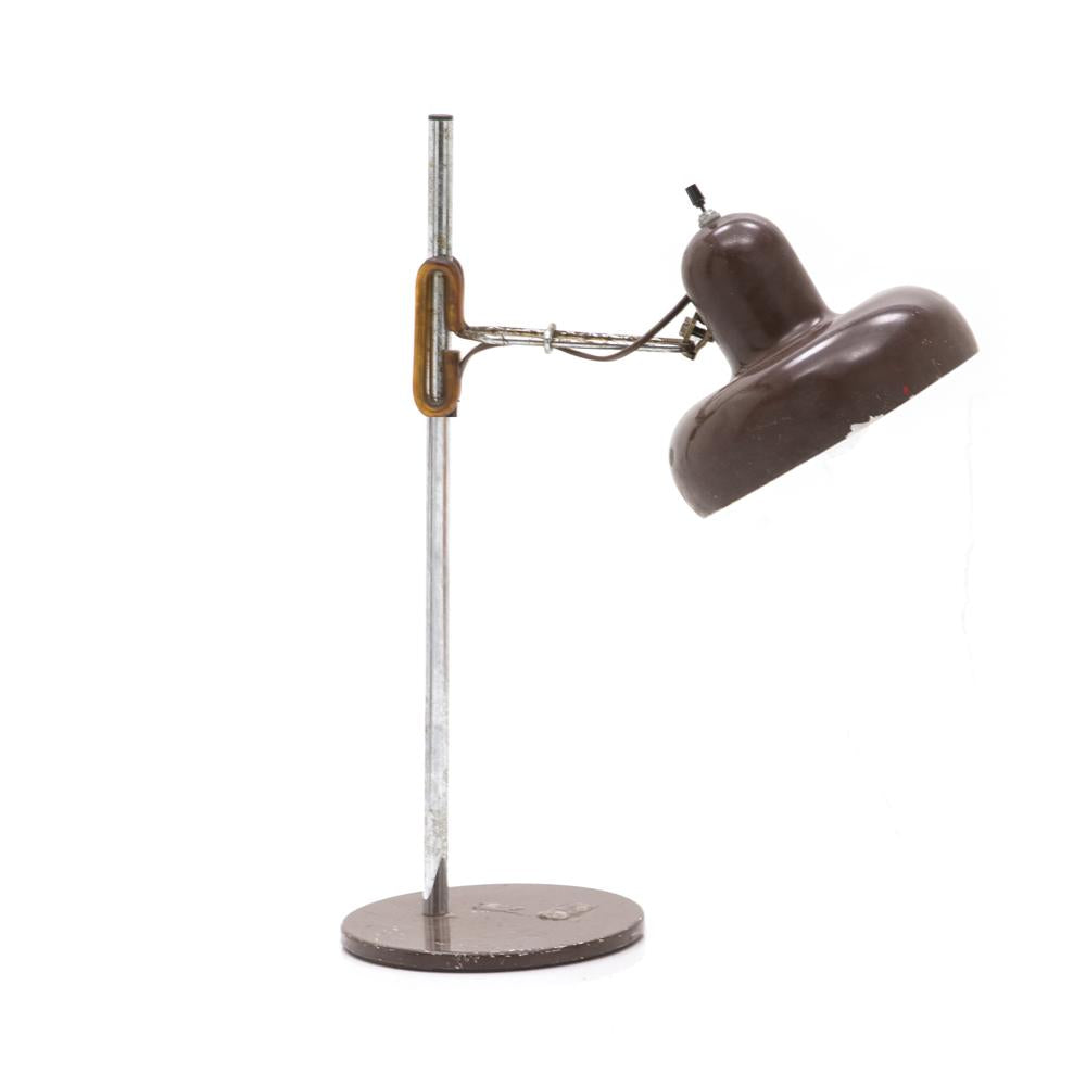 Details: Rustic brown metal desk lamp with adjustable height shadeDimensions: 18" H x 8" W x 14" D