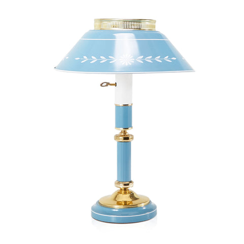 Details: Blue Tole style table lamp with gold accent Dimensions: 18" H x 12 W x 12" D Quantity: 1
