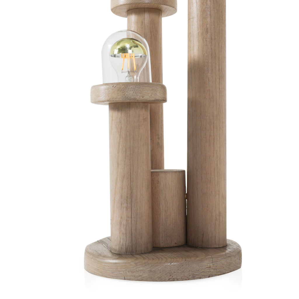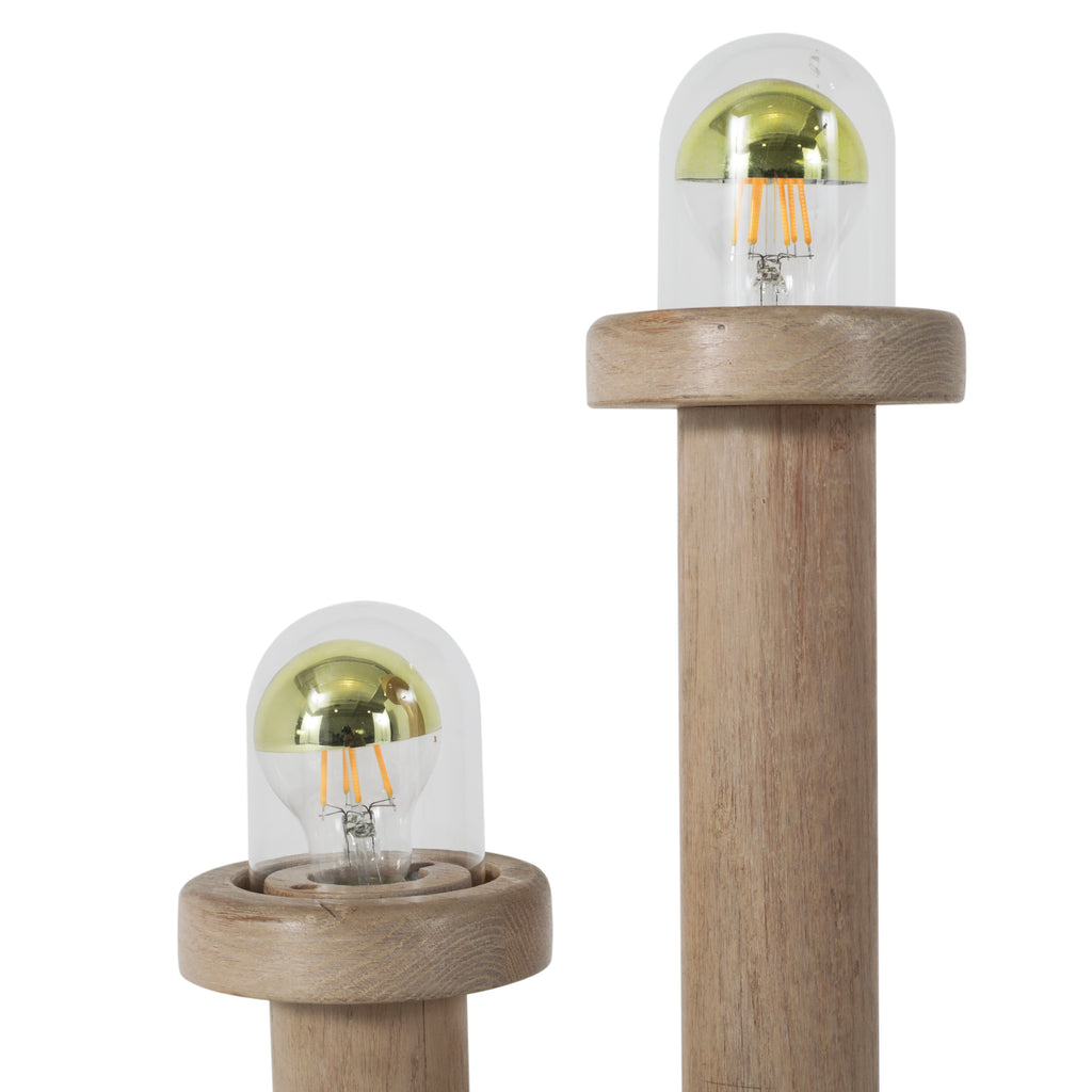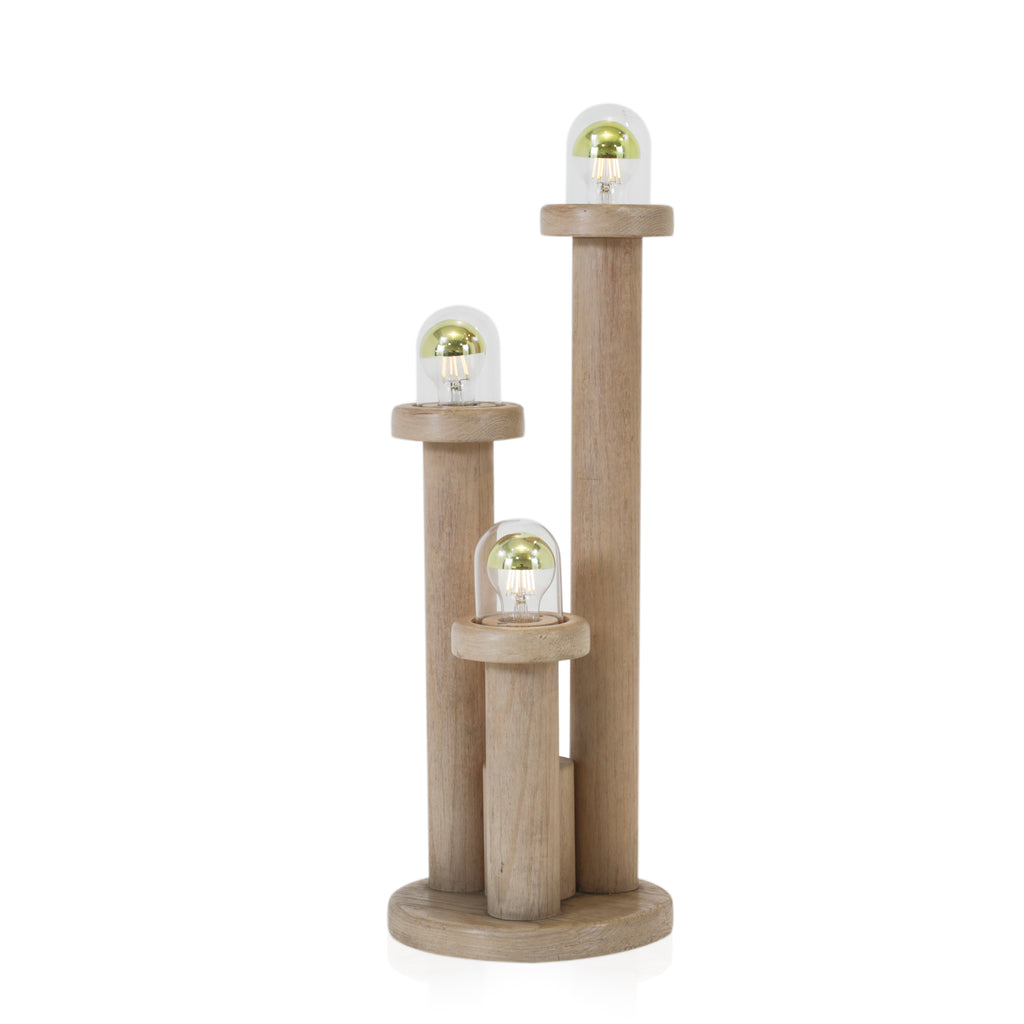 Details: Light wood table lamp with gold tipped bulbs. Dimensions: 29" H x 10" D