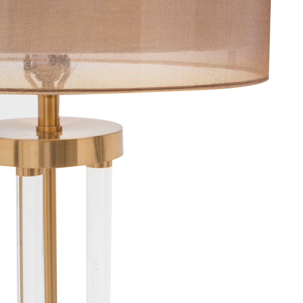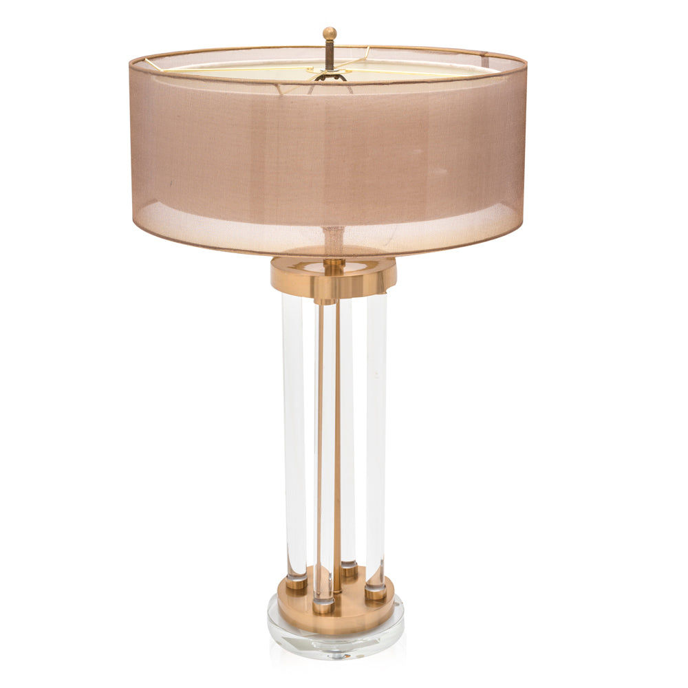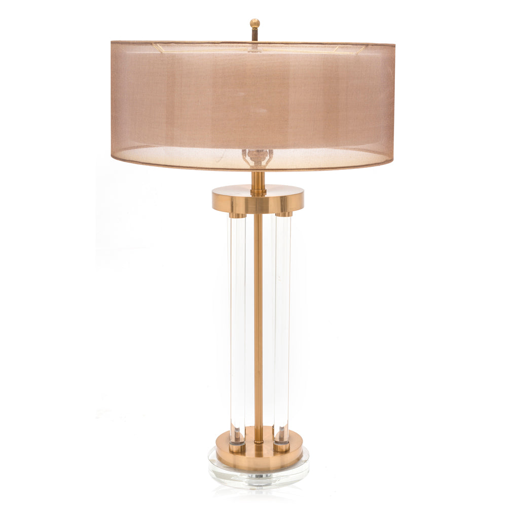 Details: Table lamp with lucite and gold column base. Dimensions: 22" H x 12" W x 12" D