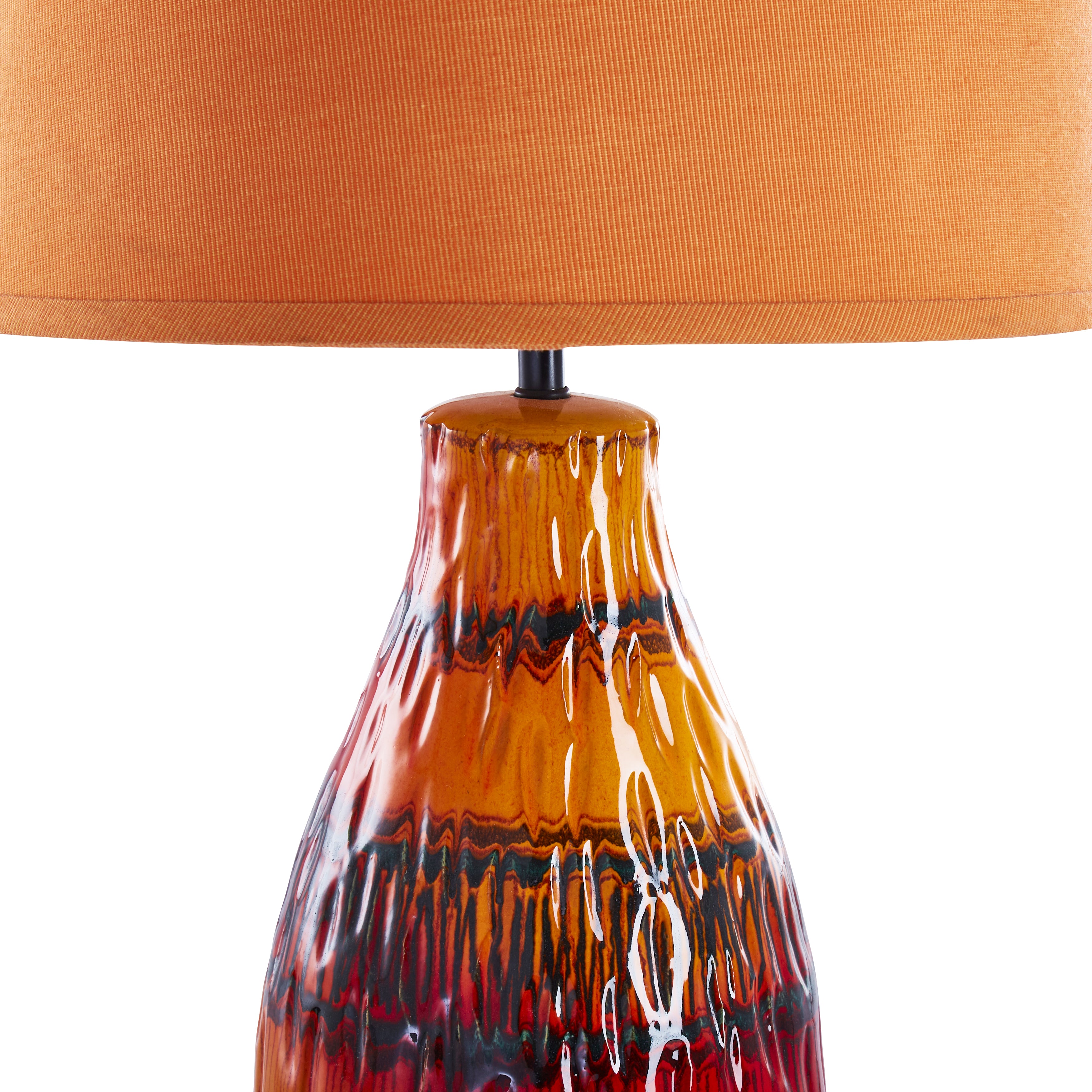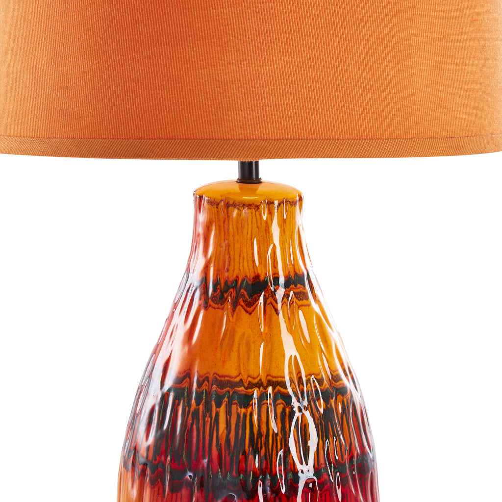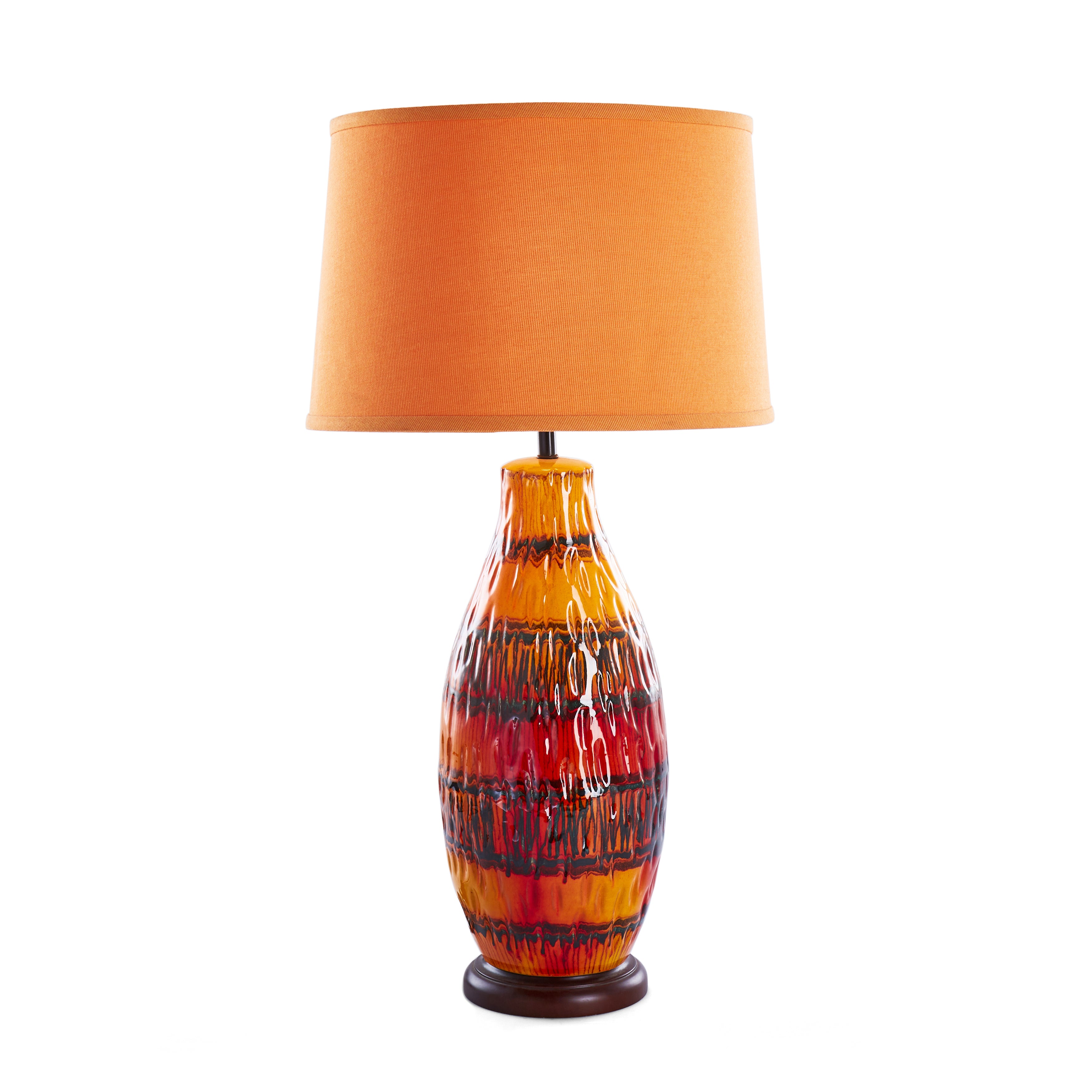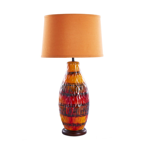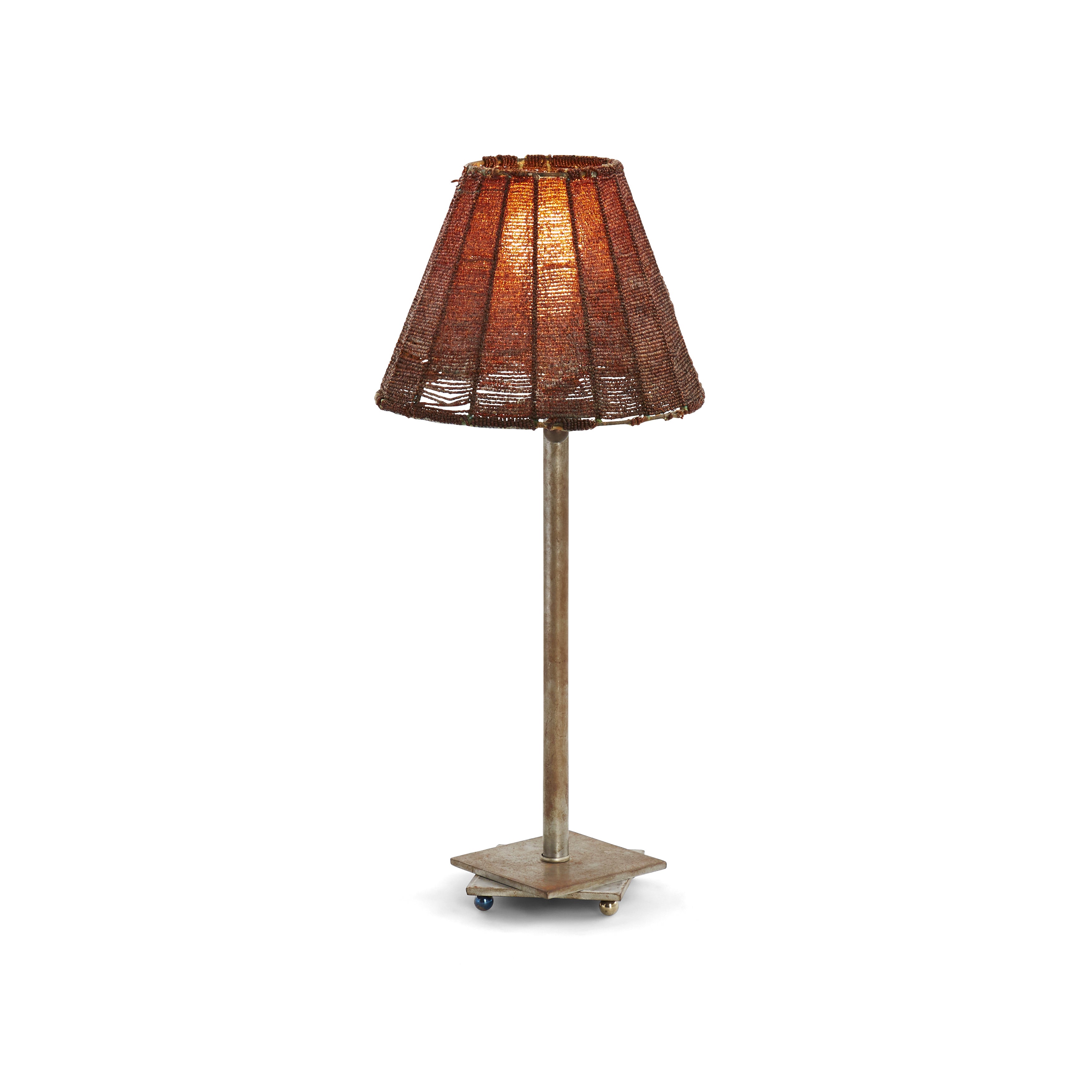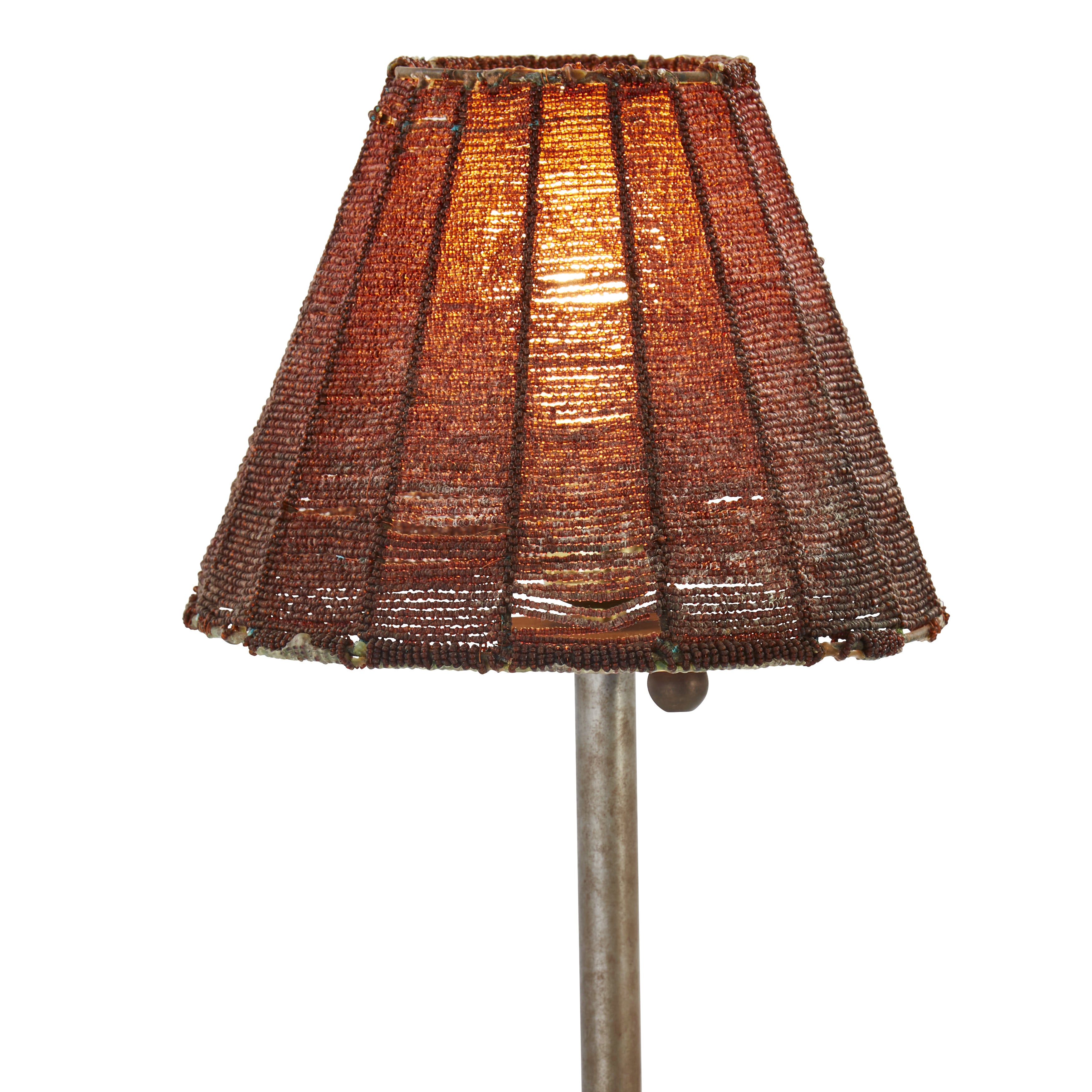 Details: Brown metal lamp with matching shade with round "puddle" base. Molten chocolate "pouring" from shade to form base.
