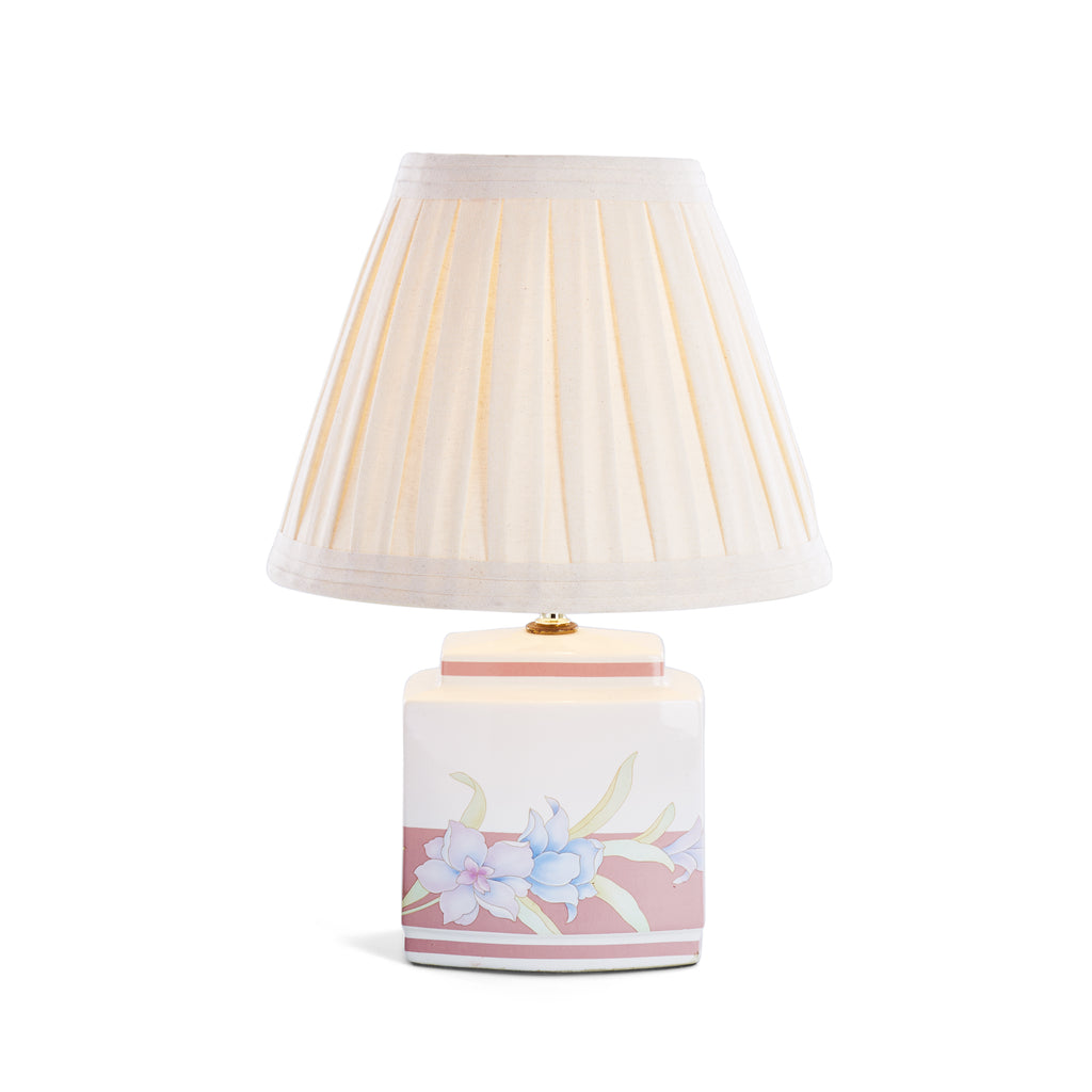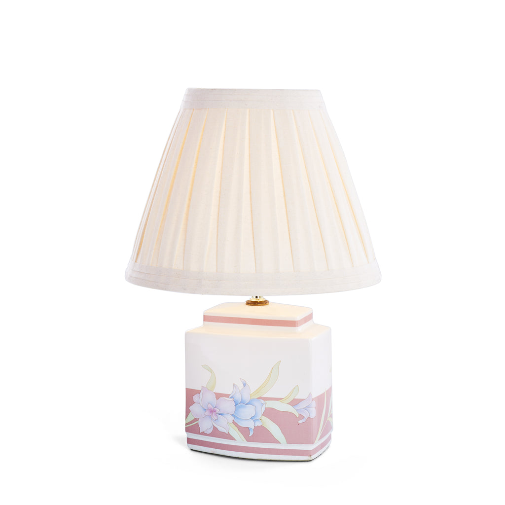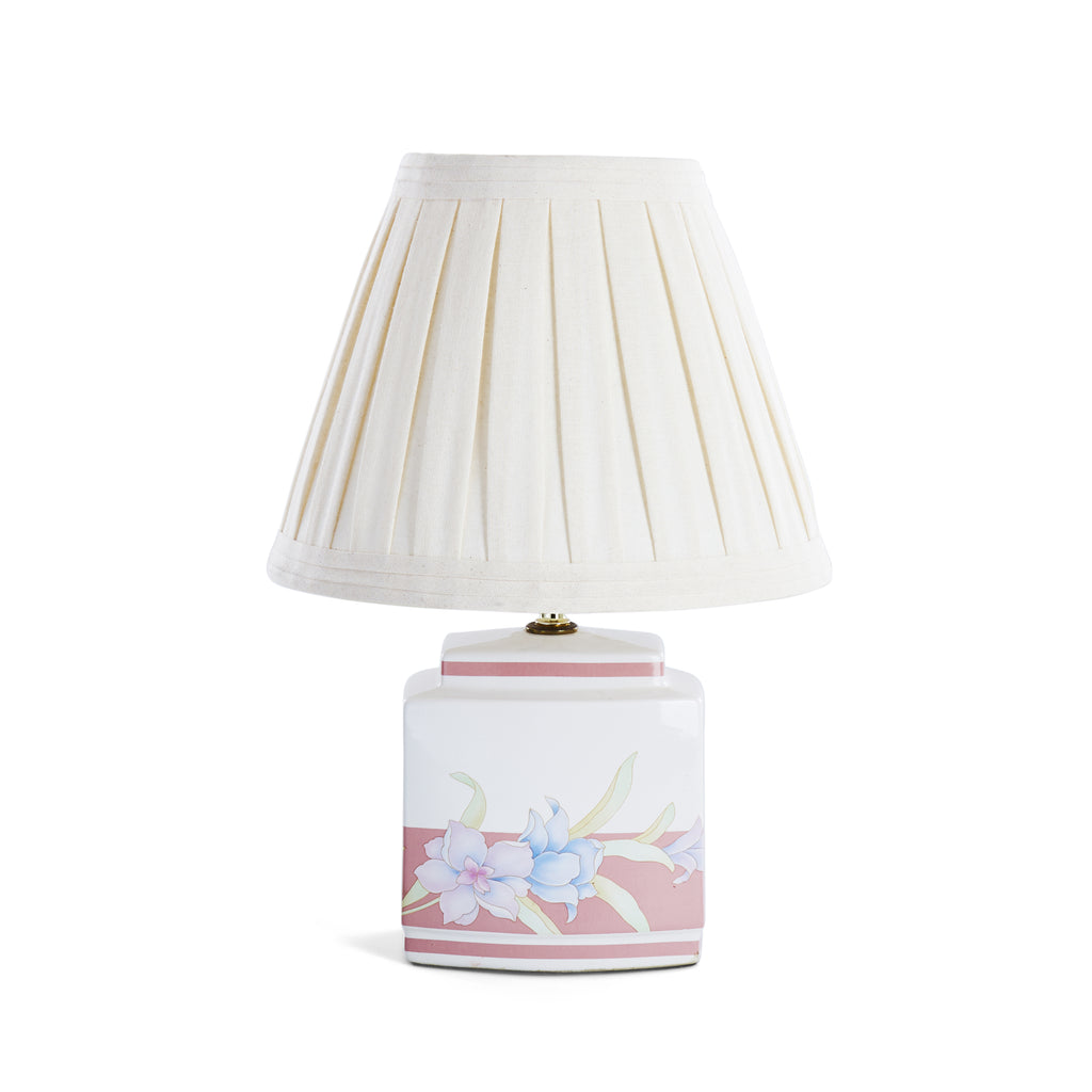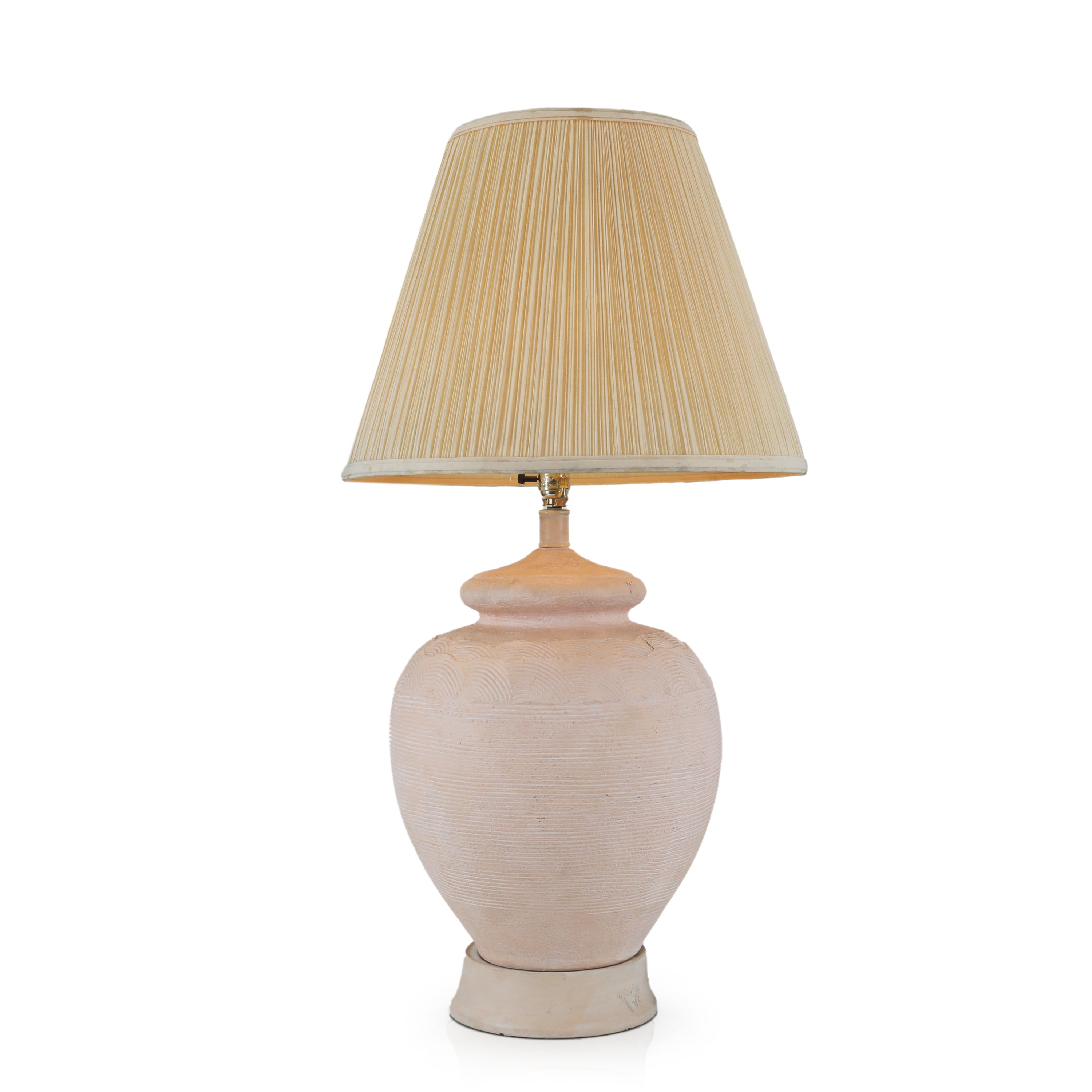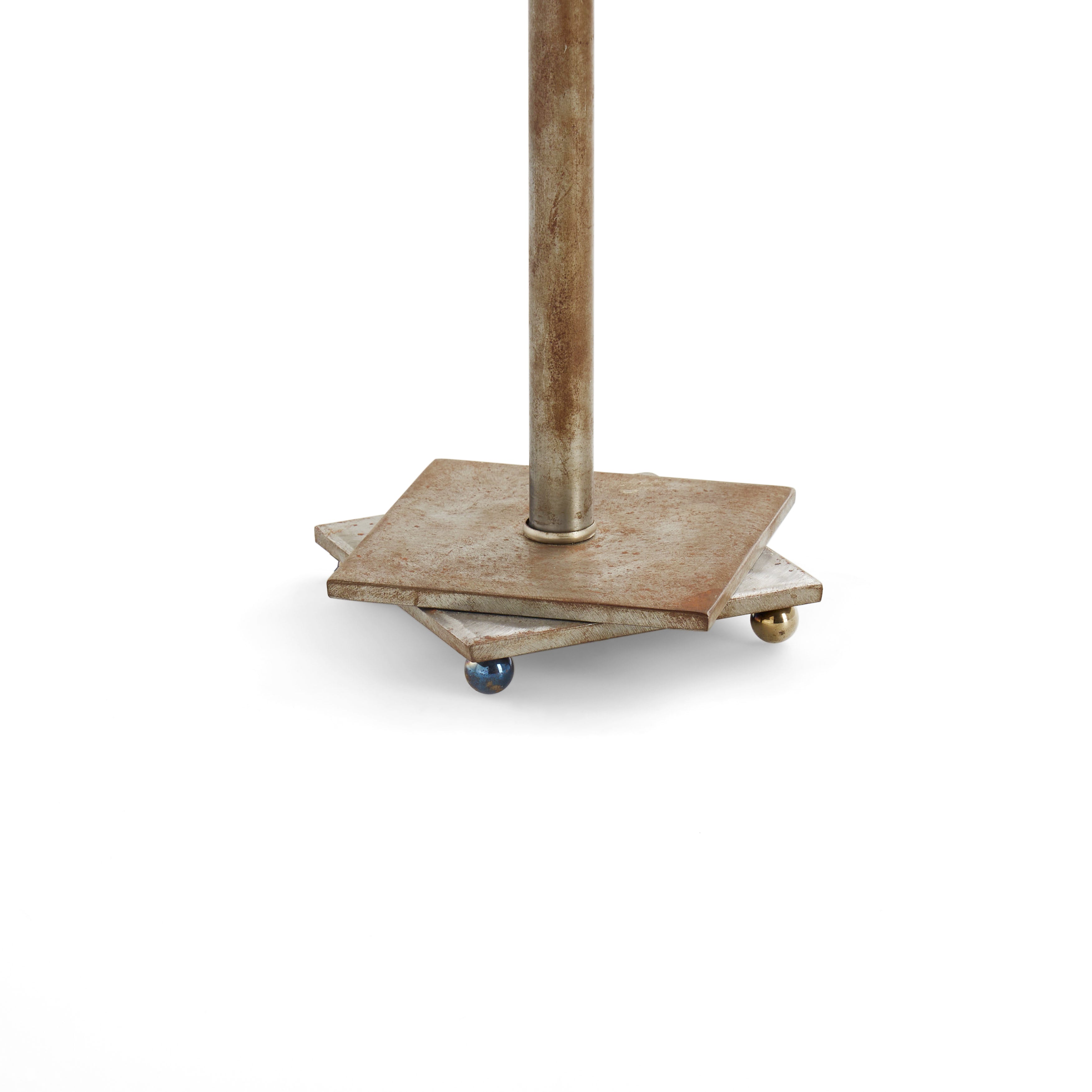 Details: Brown metal lamp with matching shade with round "puddle" base. Molten chocolate "pouring" from shade to form base.