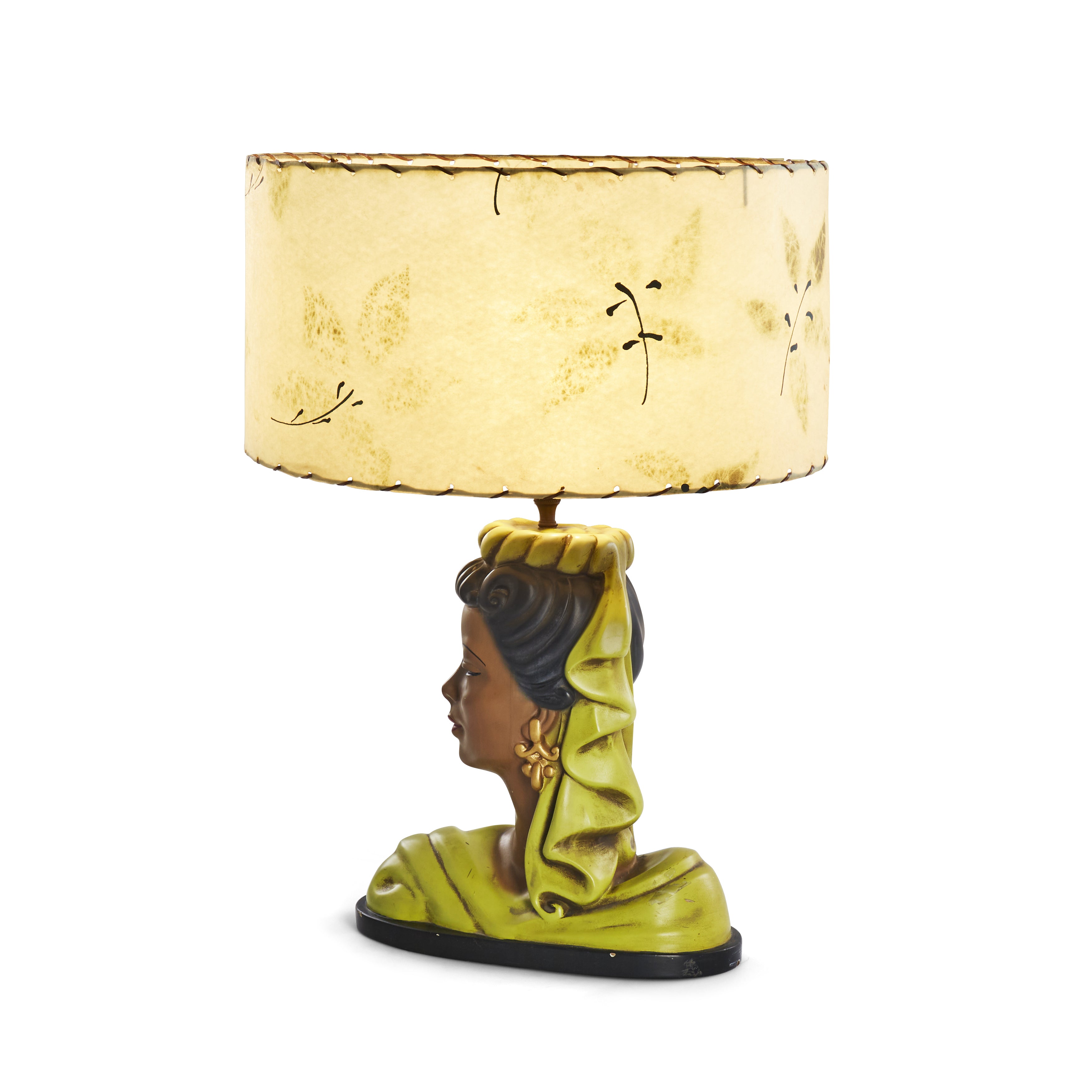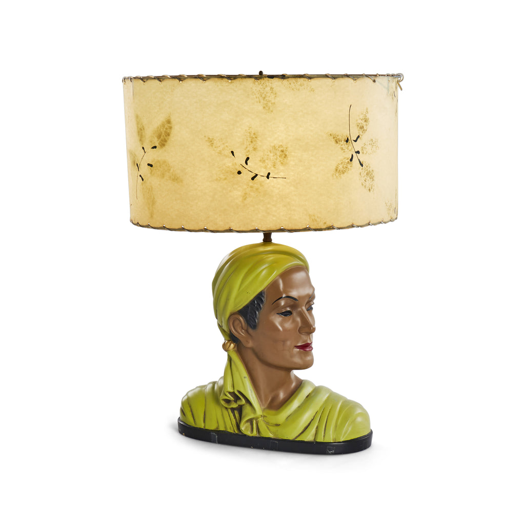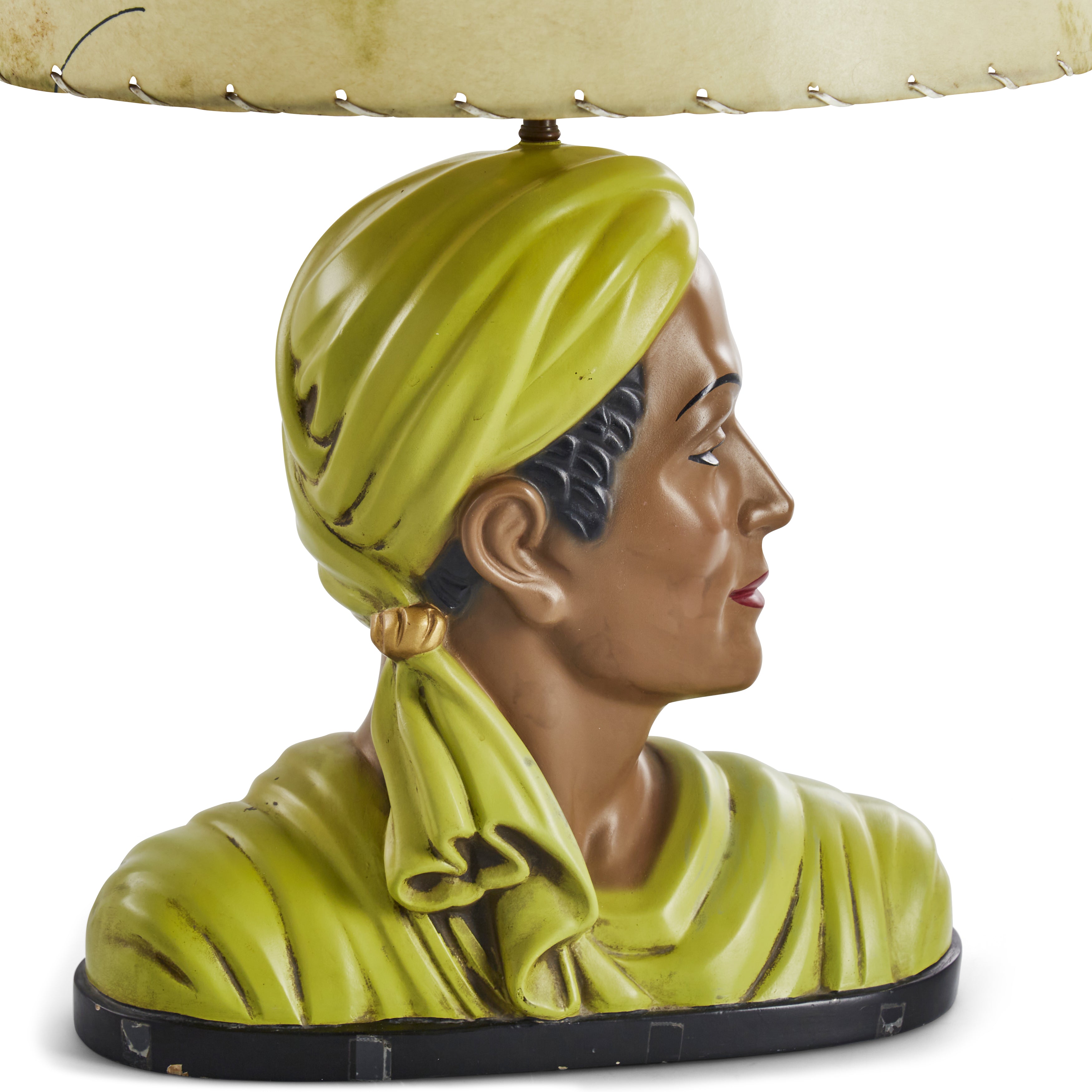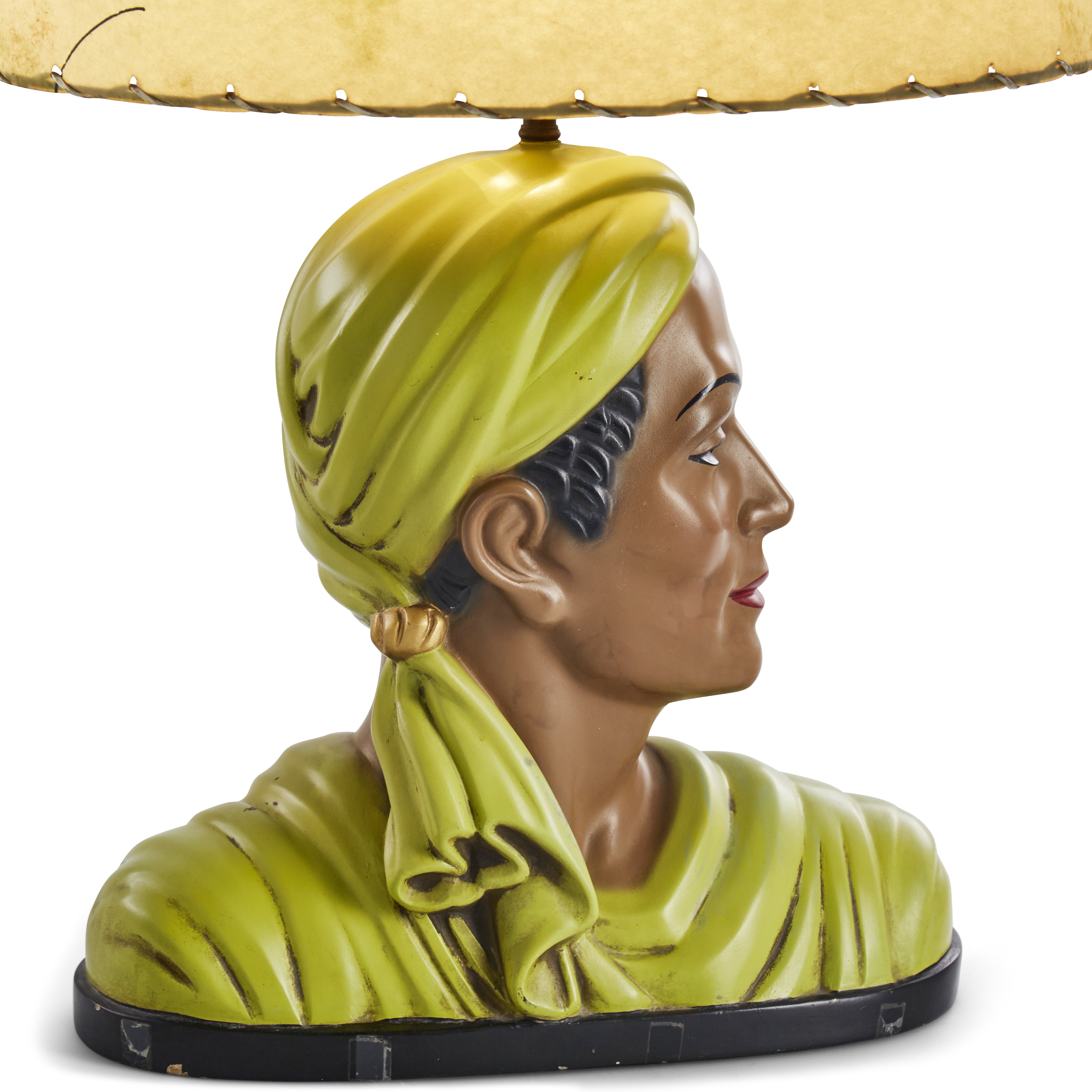 Details: Vintage black bar lamp featuring a man hugging a pole. (Vintage piece with noticeable wear, rented as is) Dimensions: 23" H x 5" W x 6.5" D...