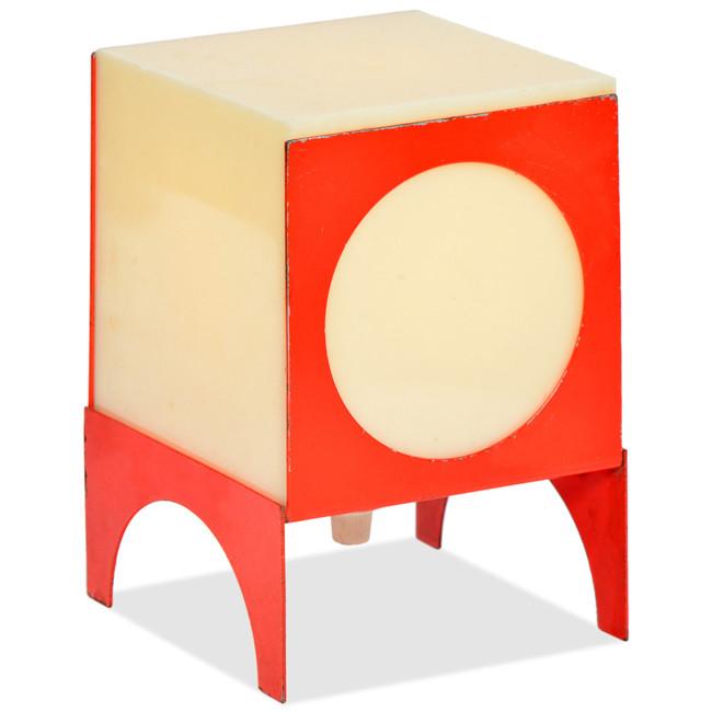 Details: Orange metal and white plastic standing cube modern table lamp
