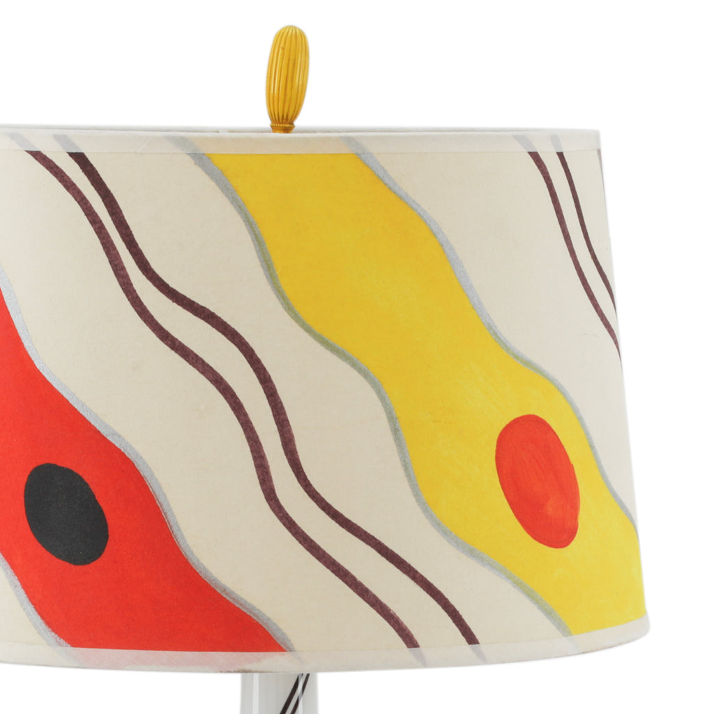 Details: Funky table lamps with multi-color pattern throughout. Metallic base.