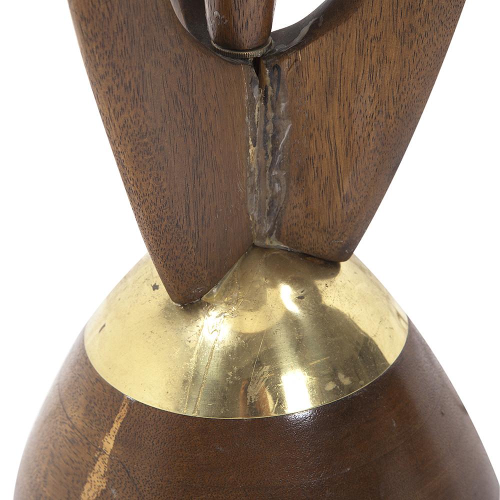 Details: Glossy wood mid century table lamp with silver stripe Dimensions: 27" H x 18" W x 12" D