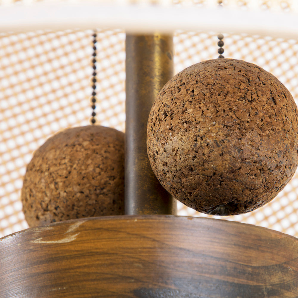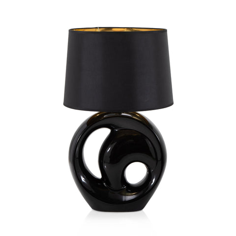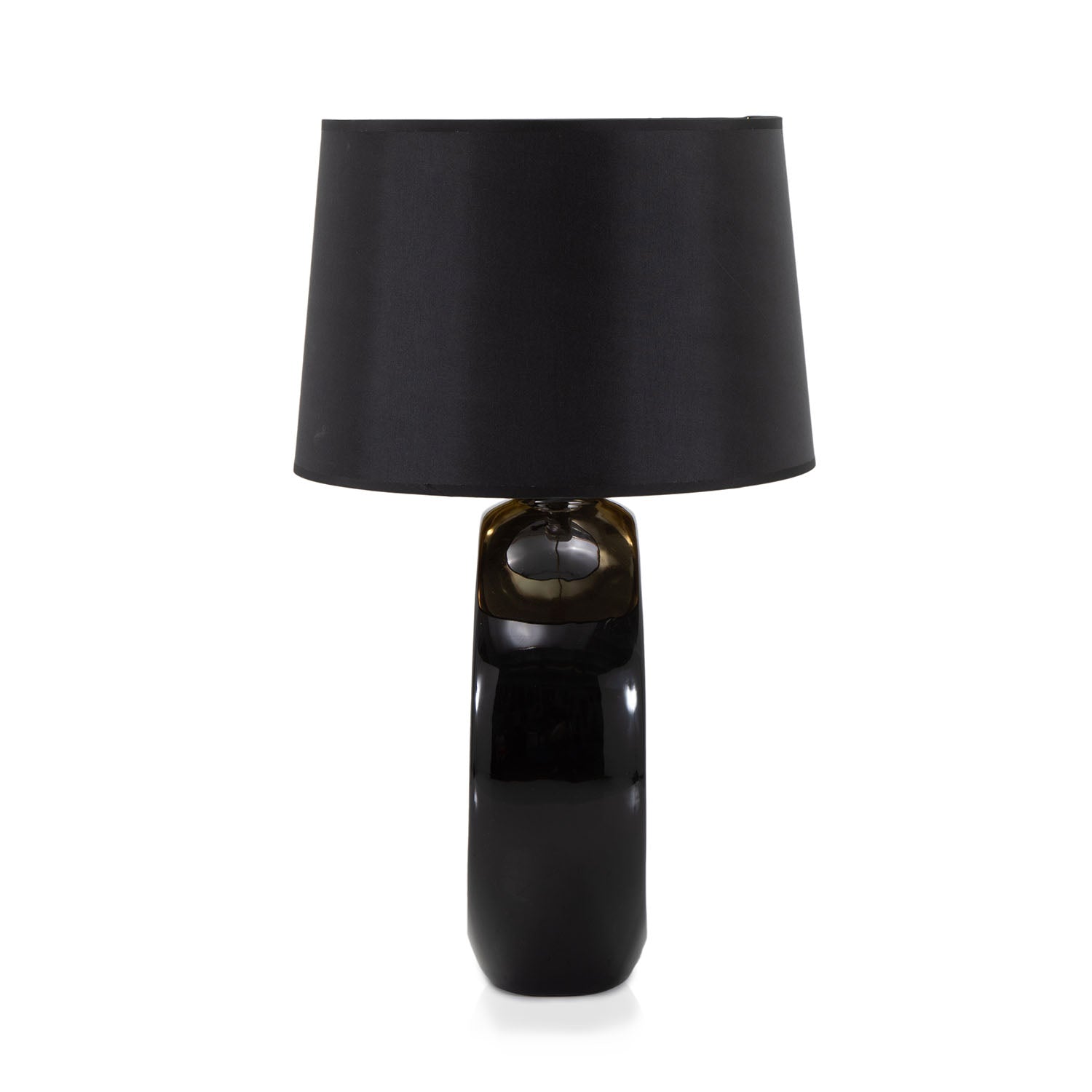 Details: Table lamp with rectangular shade and distressed metal base with old-fashioned bicycle decoration