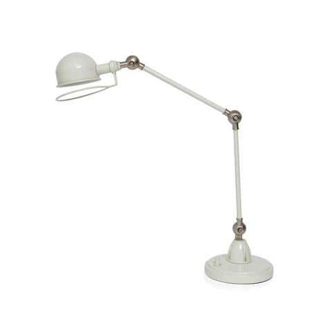 Details: Vintage industrial white steel table lamp Dimensions: 15" H x 6" W x 9" D