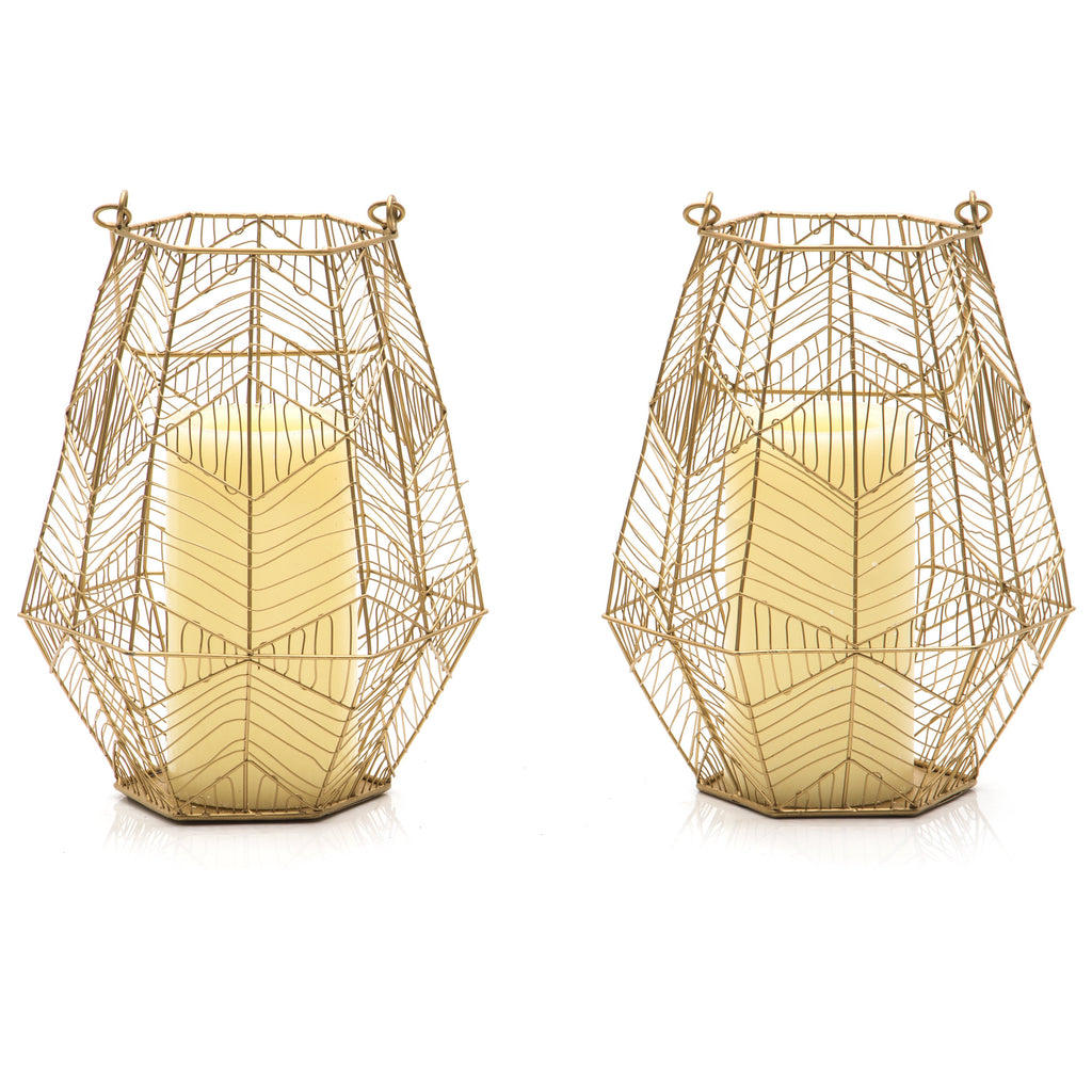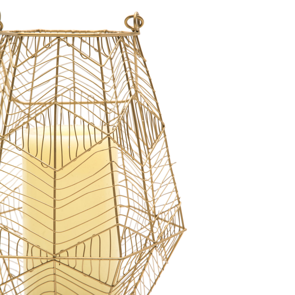 Details: Gold, Wire, Lantern Dimensions: 13" H x 11" W x 9" D