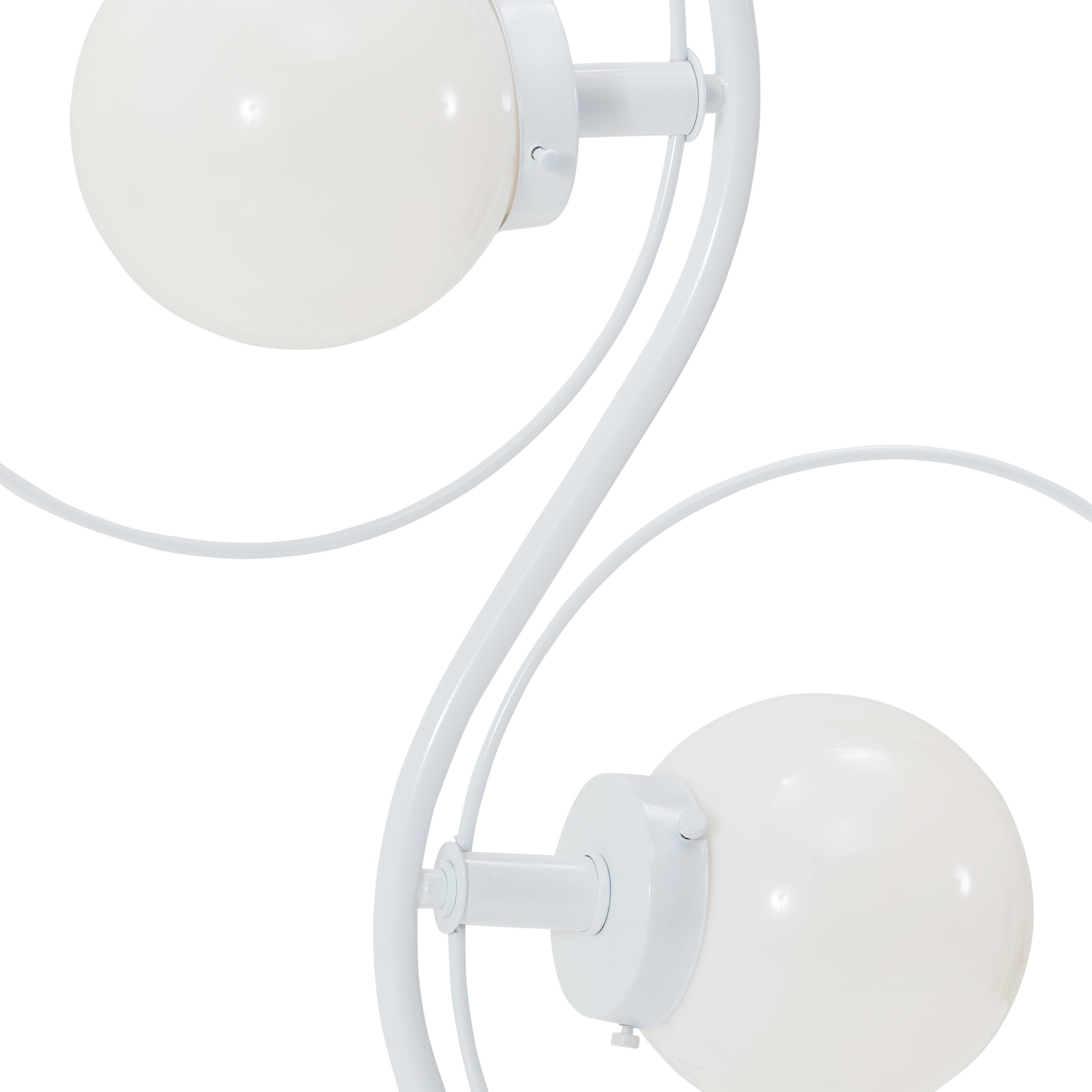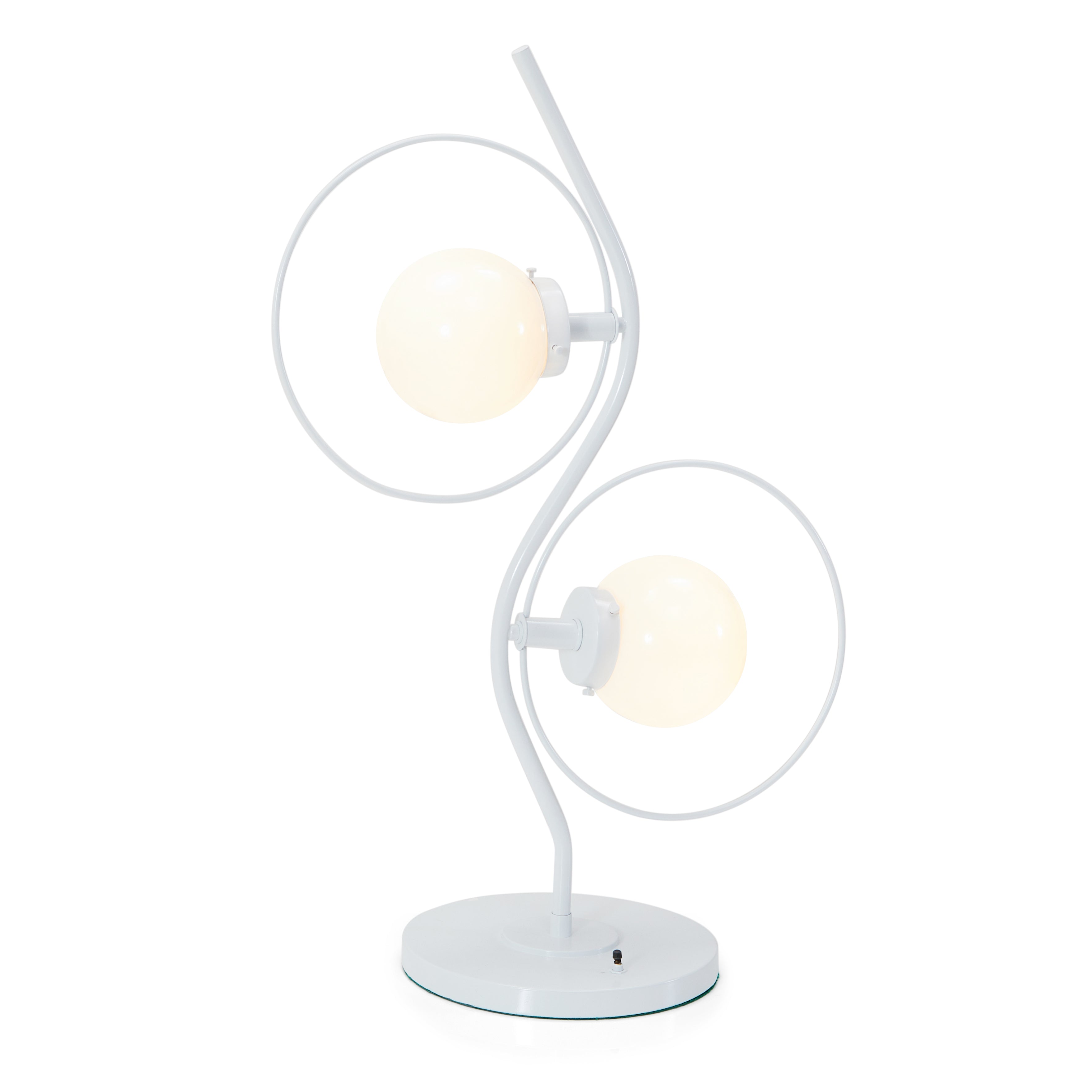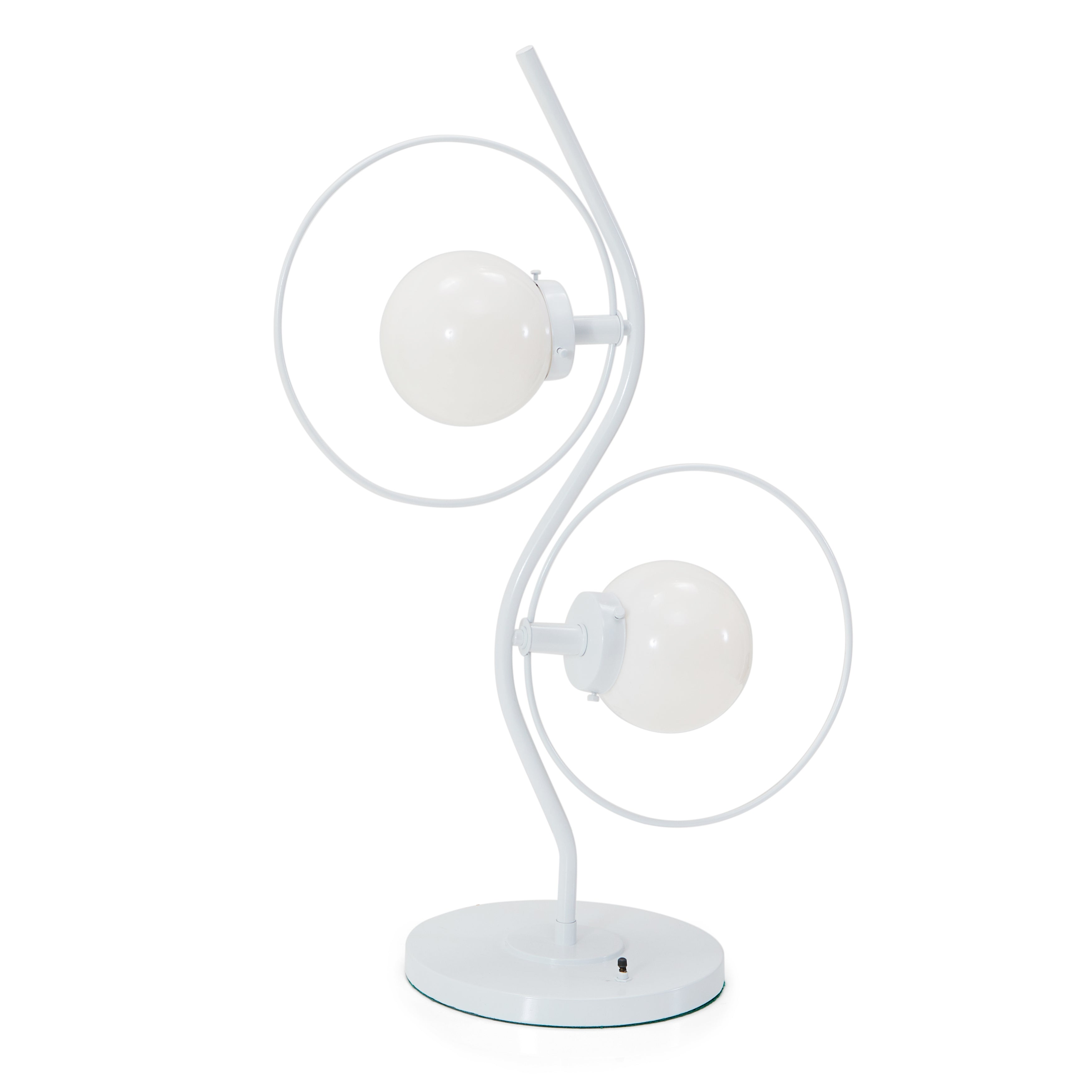 Details: White metal modern wavy lamp with two sphere bulbs Dimensions: 41" H x 10" W x 8" D