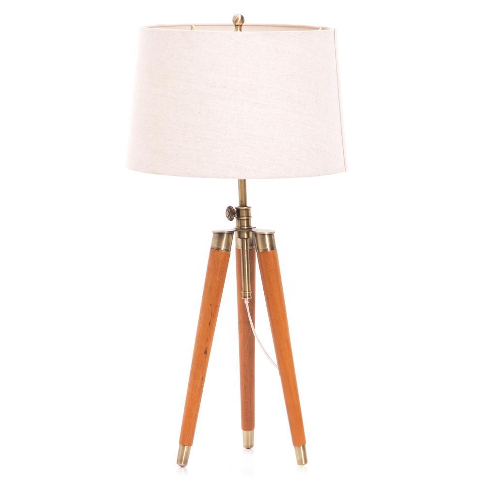 Details: Wood Tripod, Chrome, White Shade