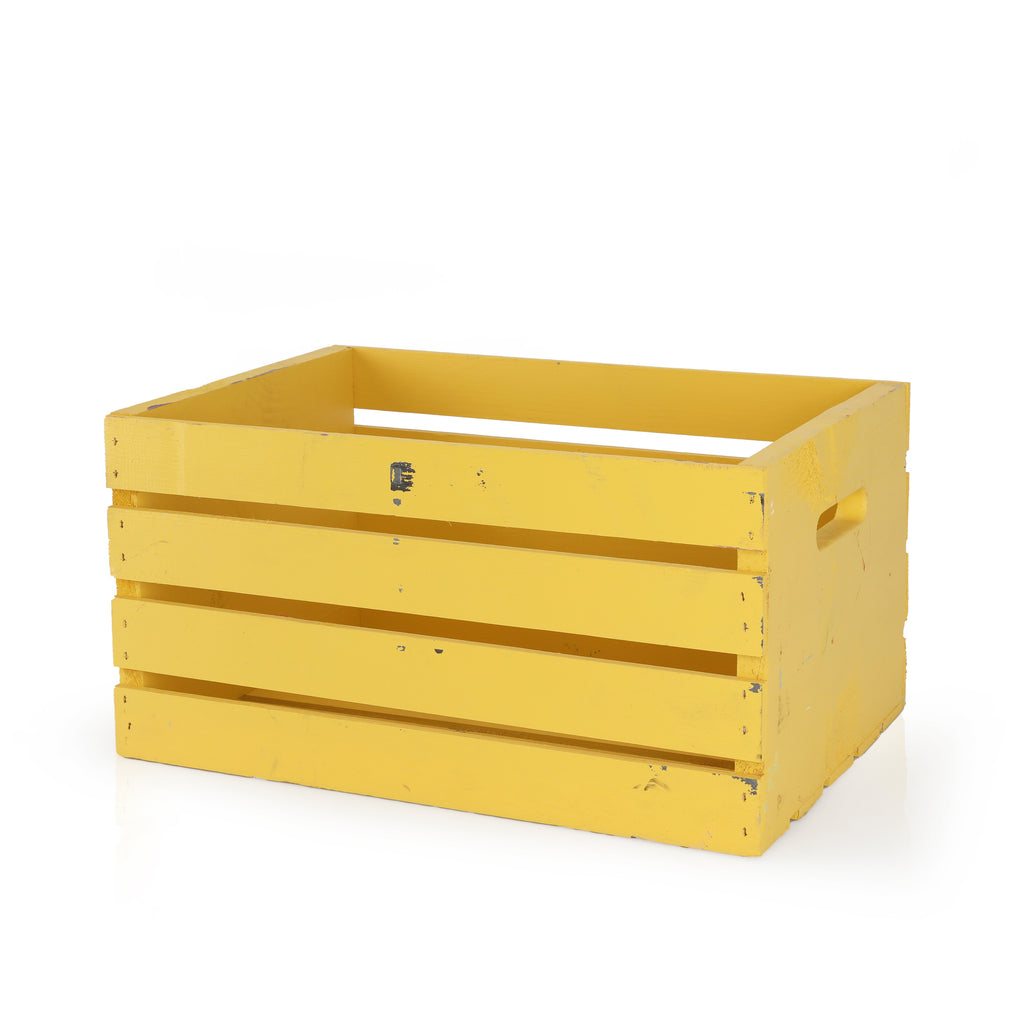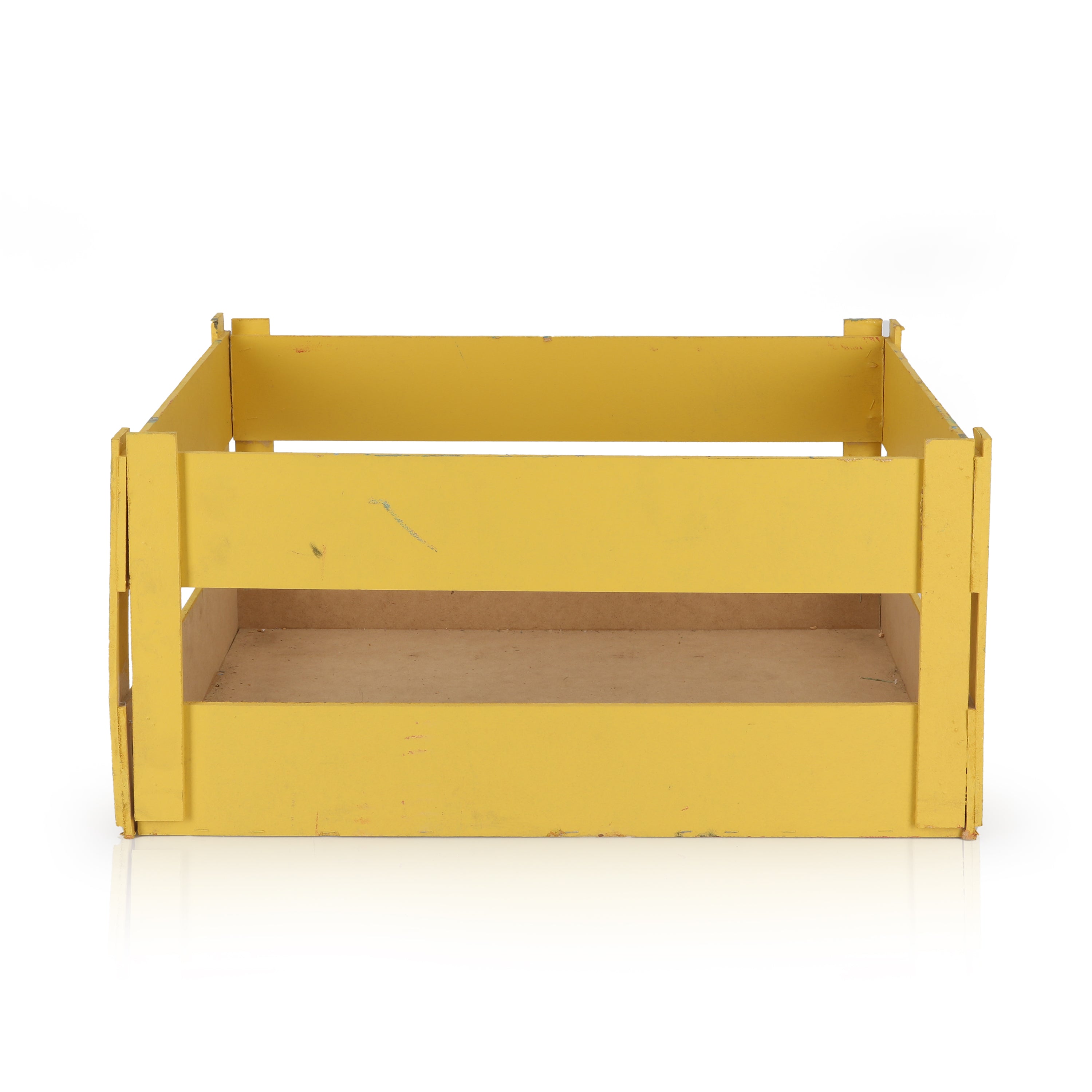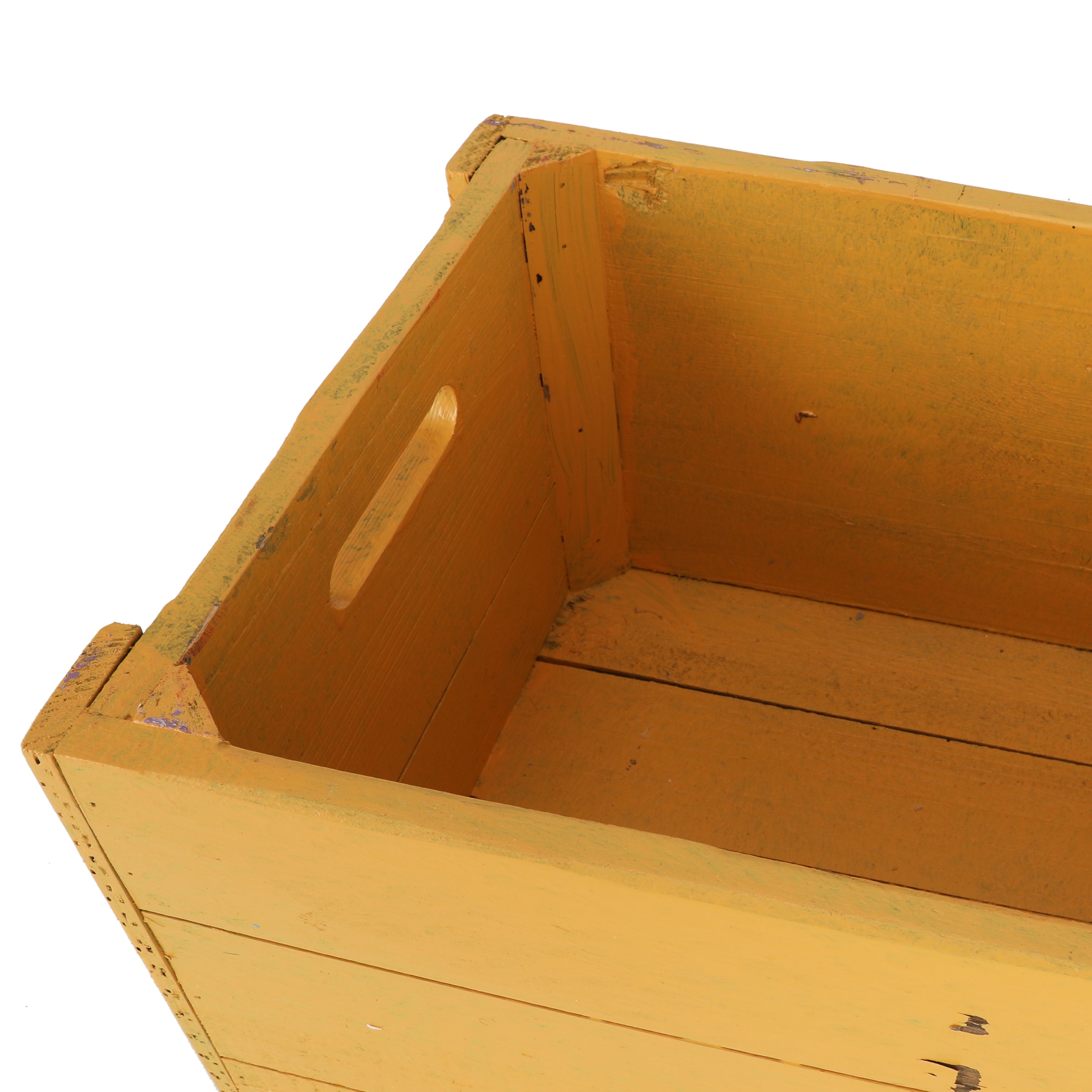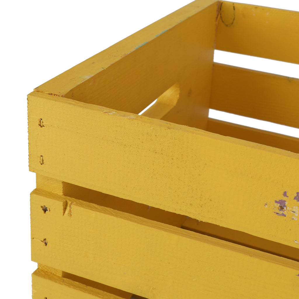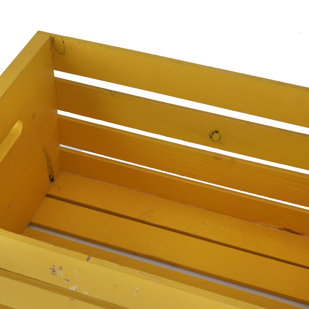 Details: Yellow painted crate with handles on sides. Quantity: 2
