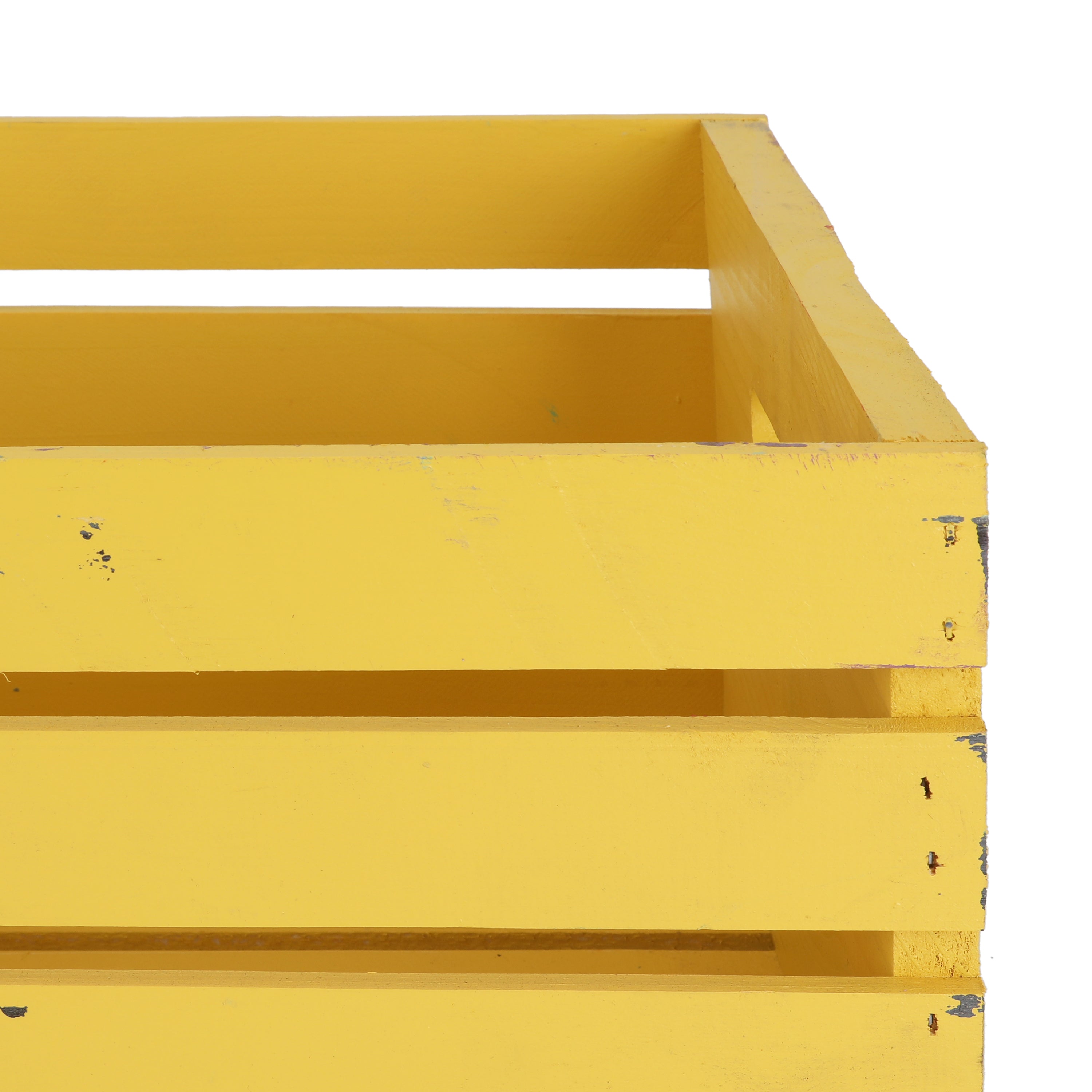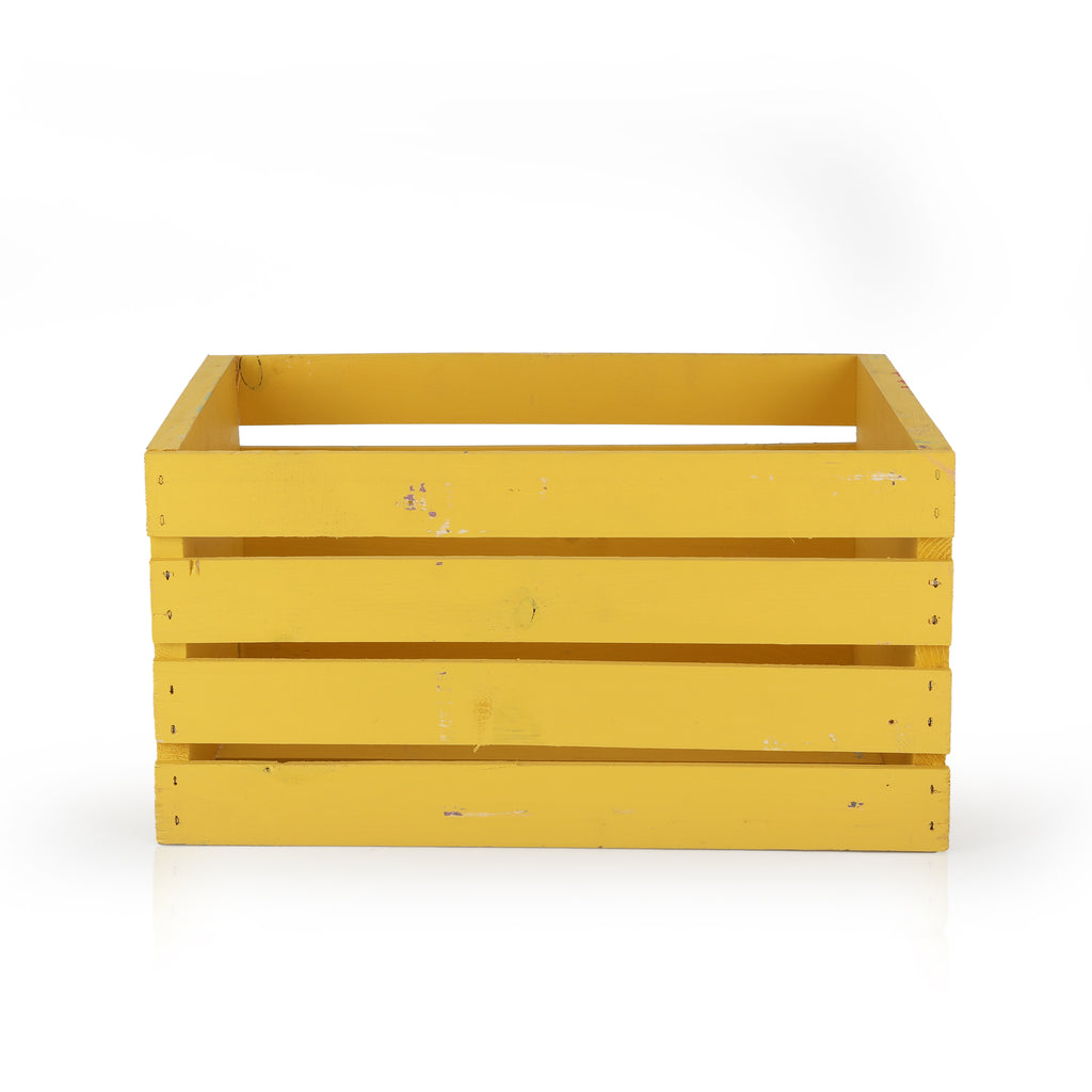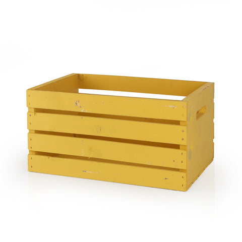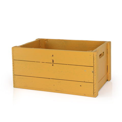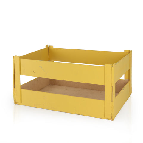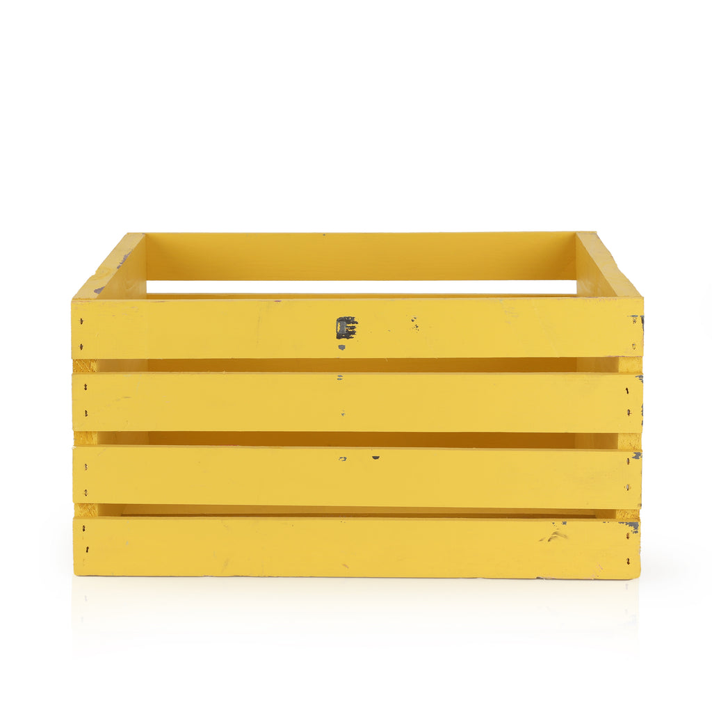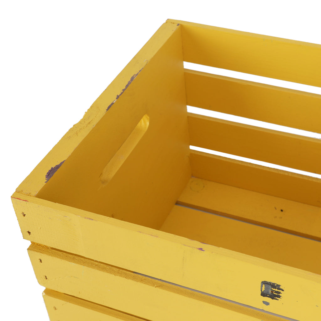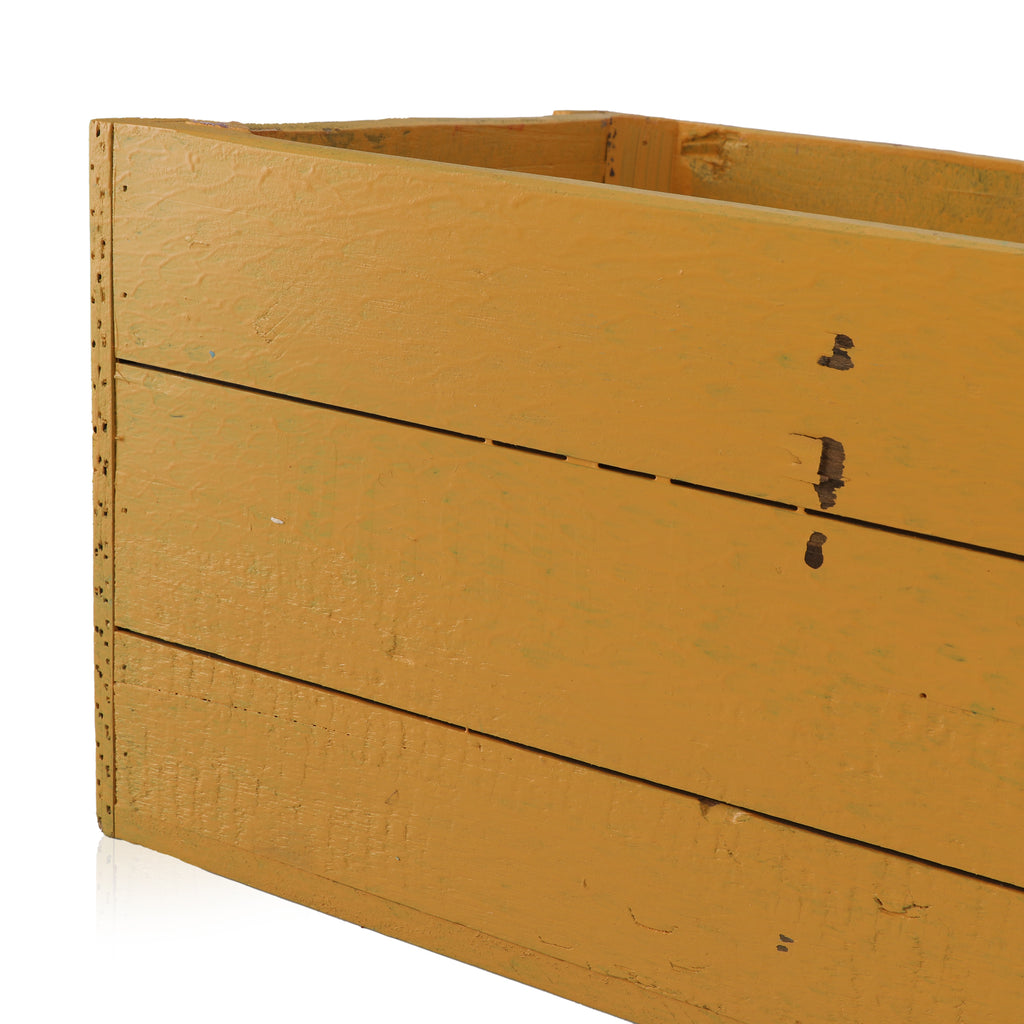 Details: Yellow painted crate with handles on sides. Quantity: 2