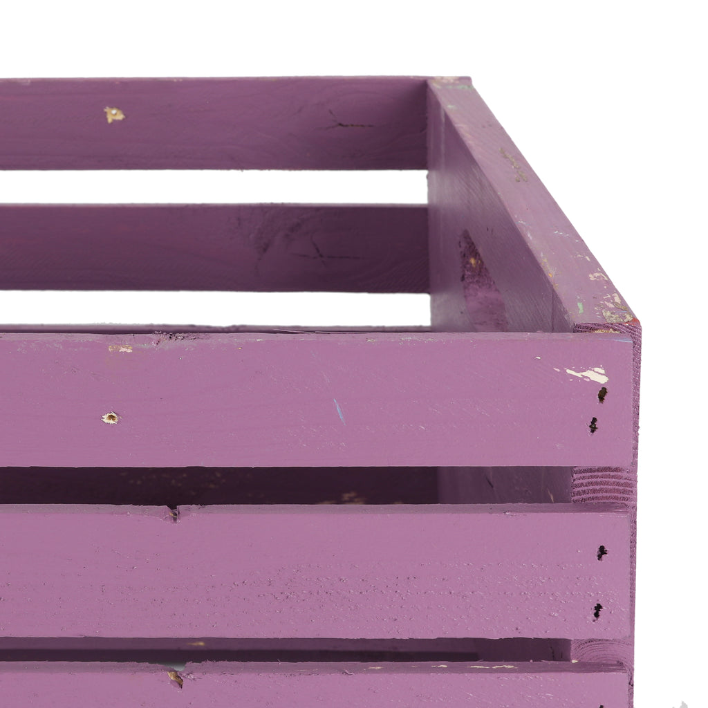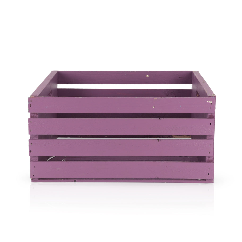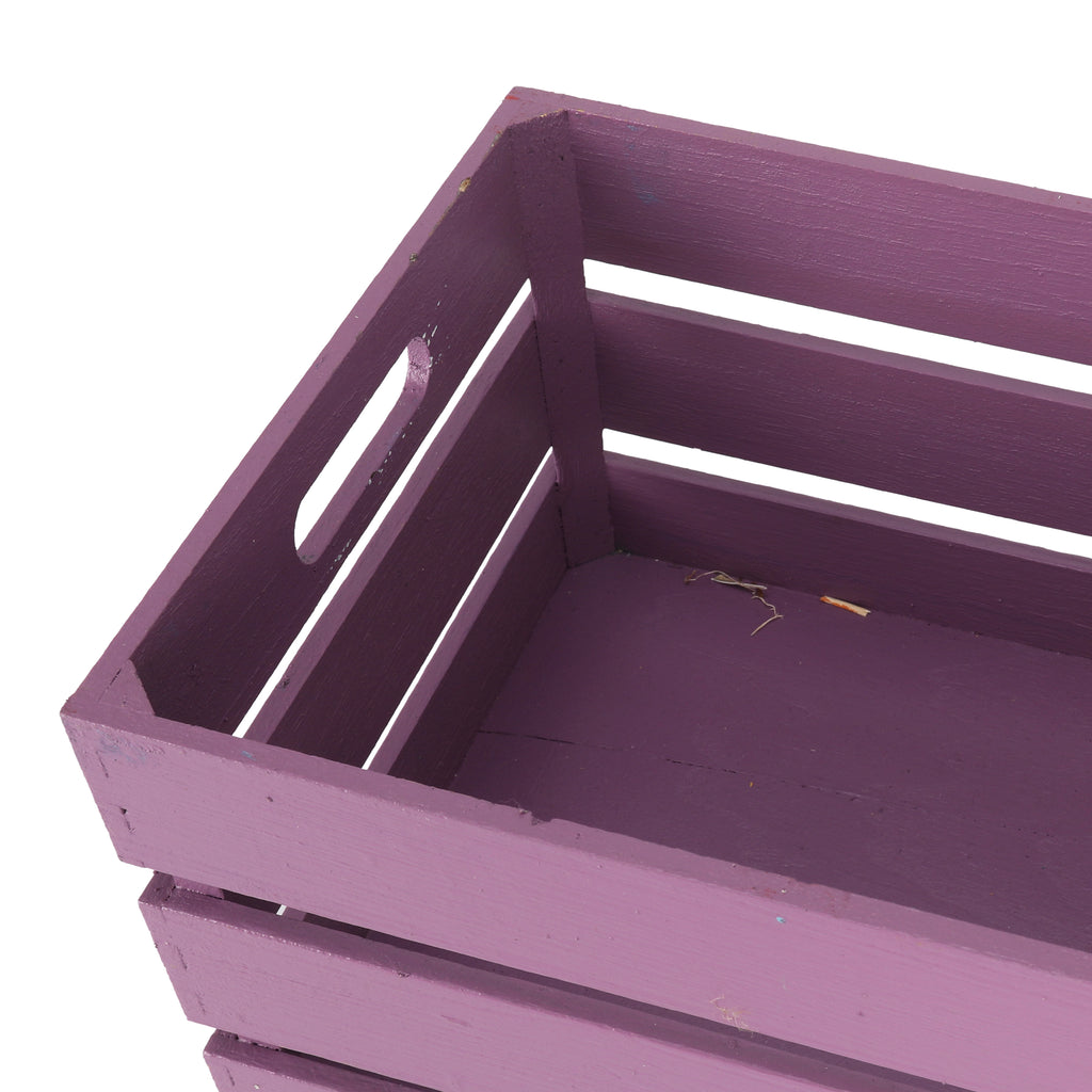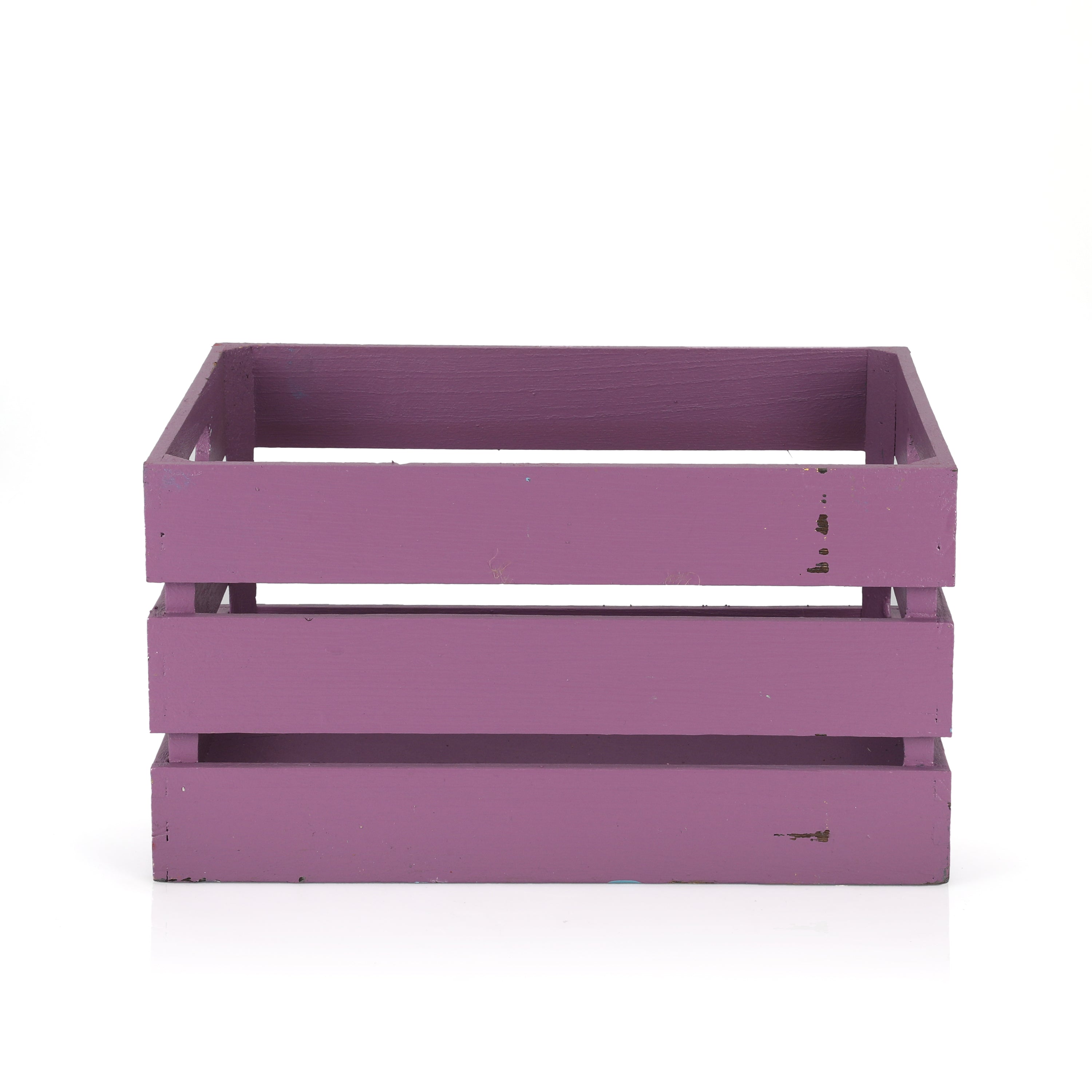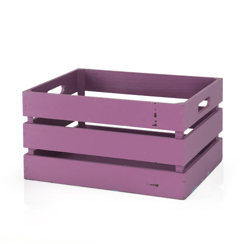 Details: Purple painted wooden crate with handles on sides. Quantity: 2 Please specify which you prefer (medium or large).