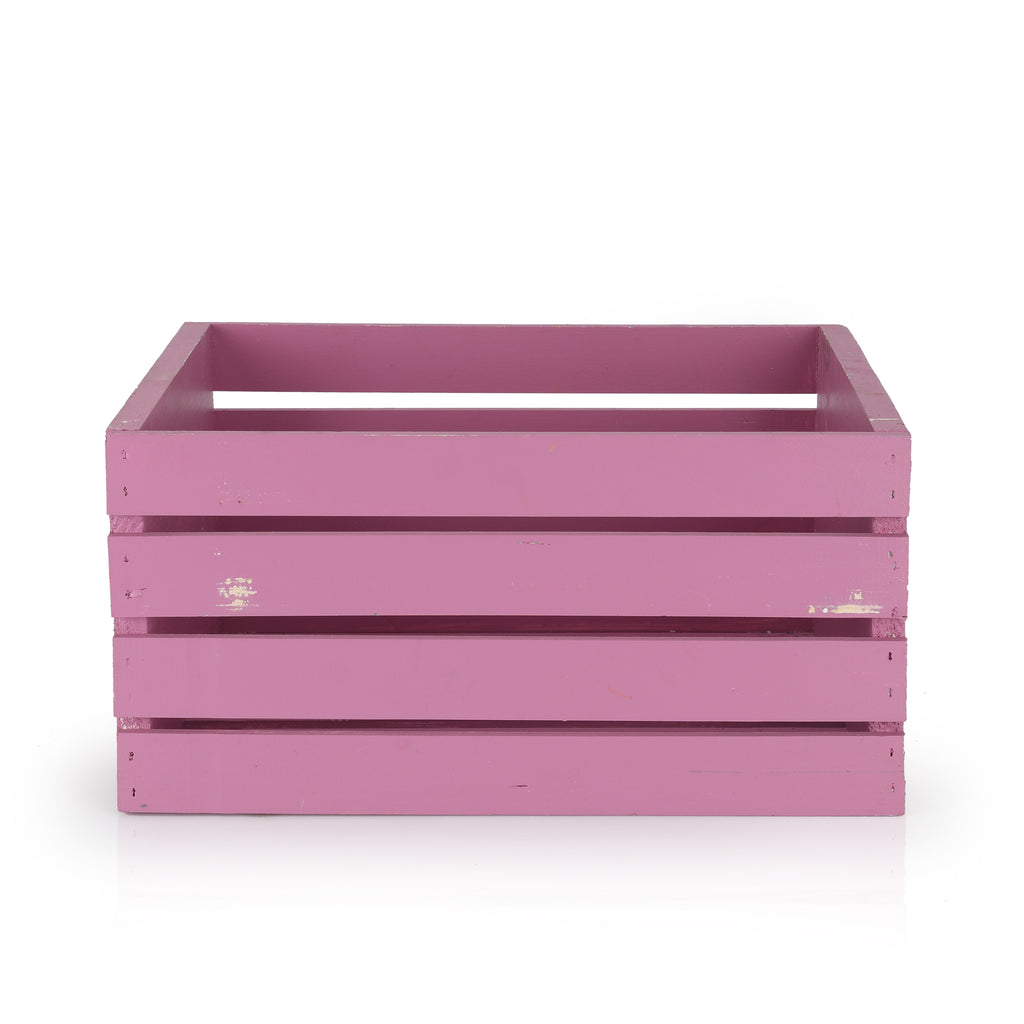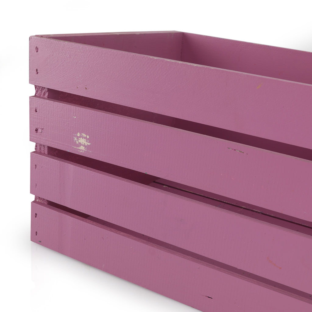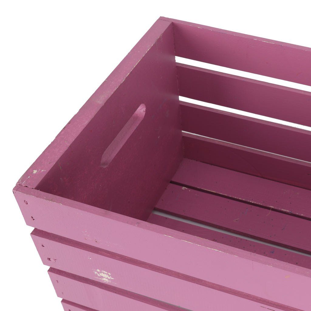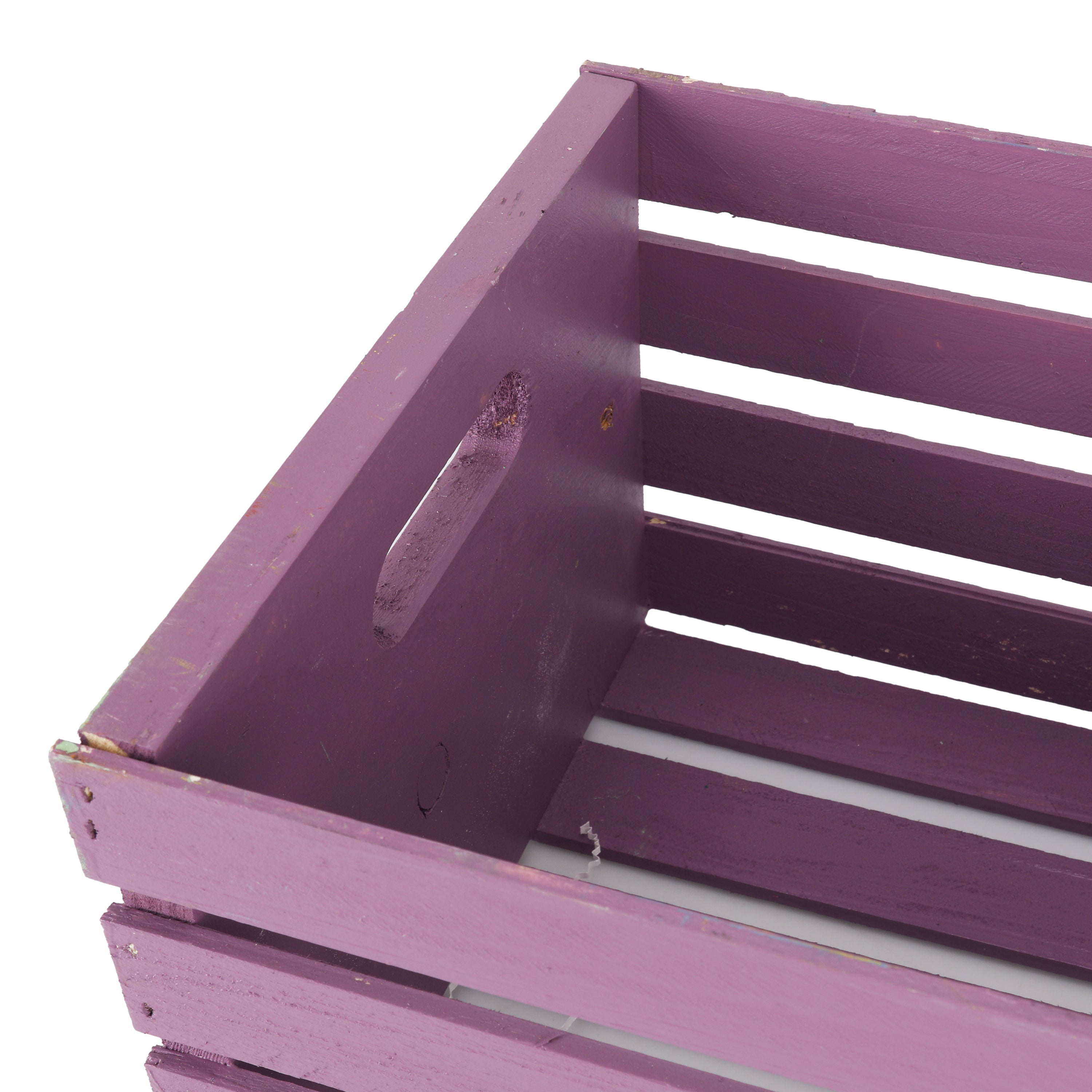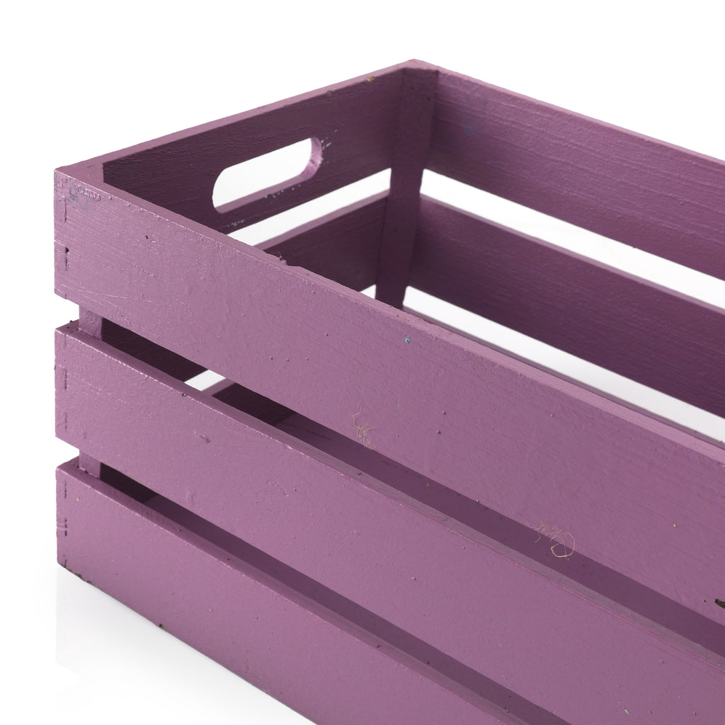 Details: Purple painted wooden crate with handles on sides. Quantity: 2 Please specify which you prefer (medium or large).