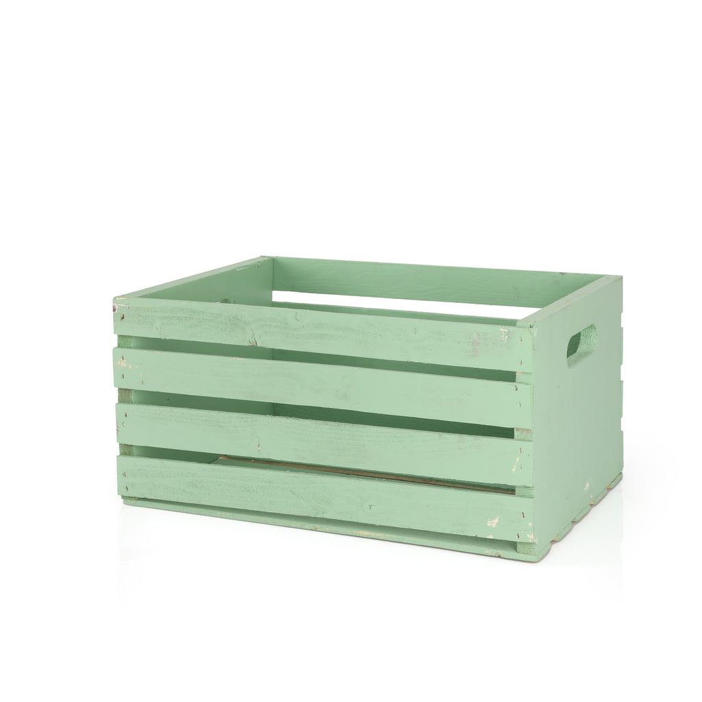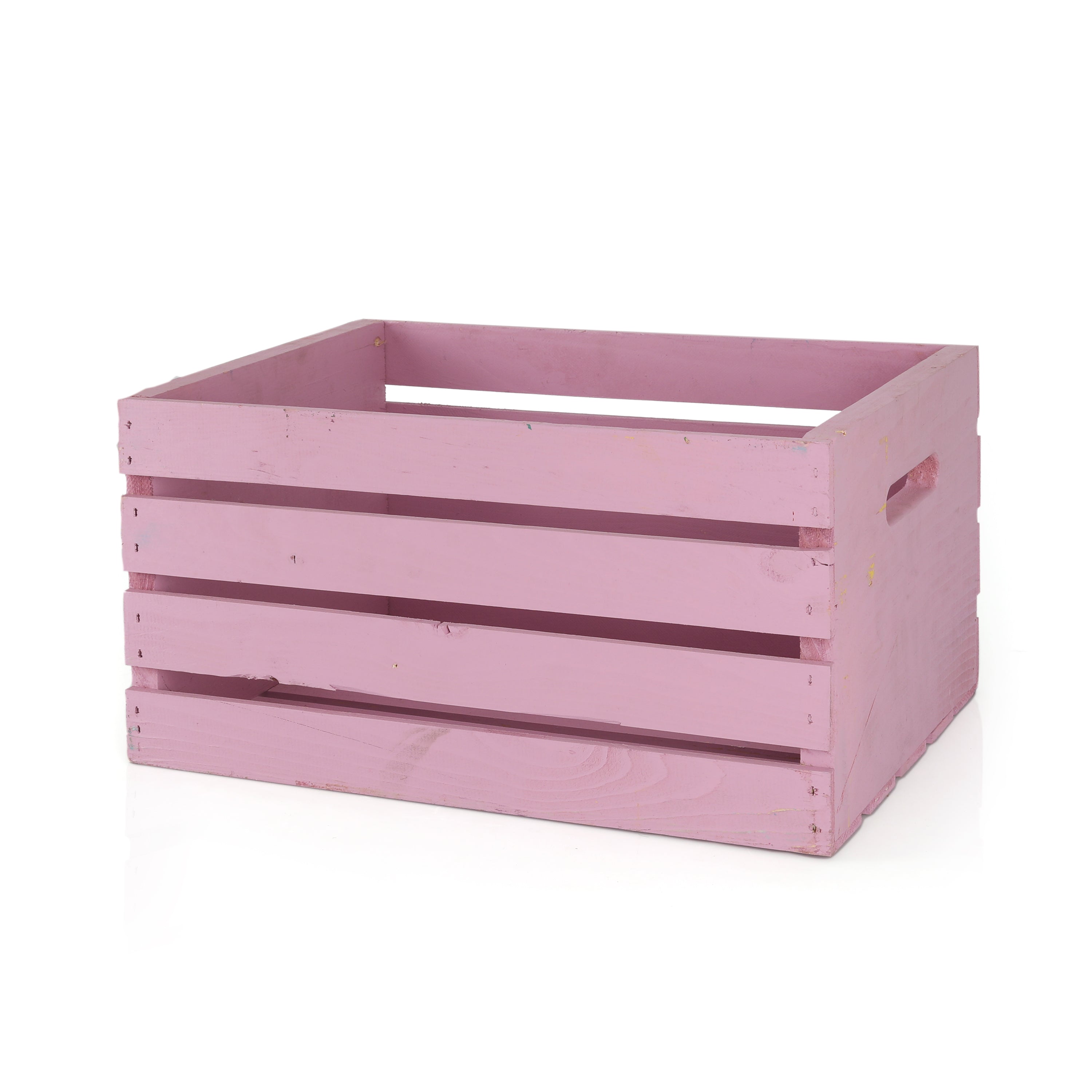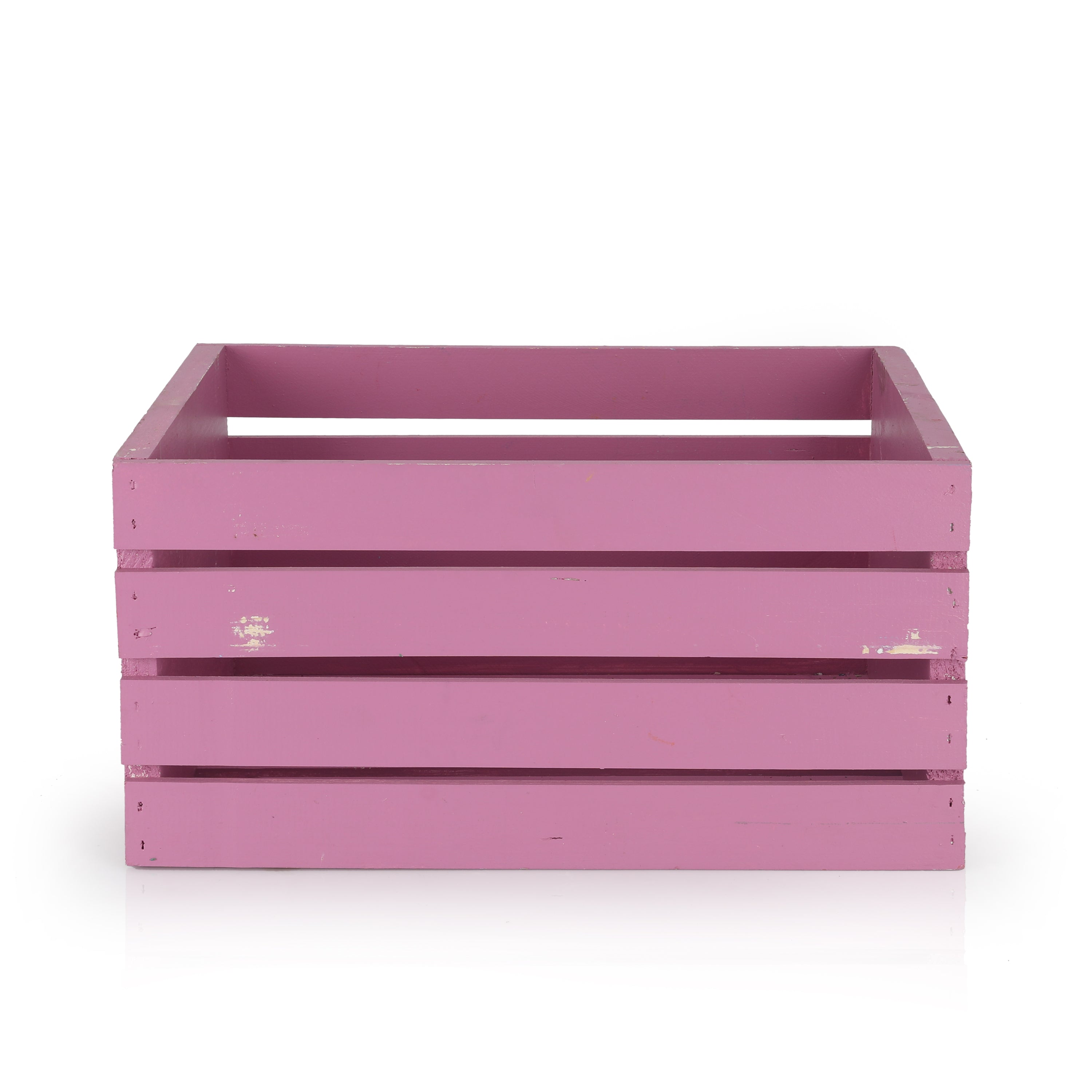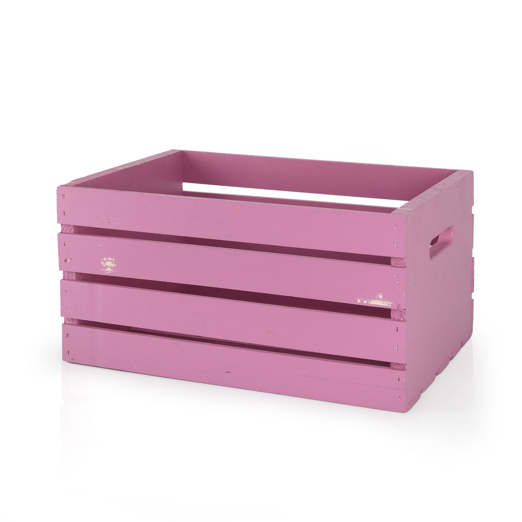 Details: Purple painted wooden crate with handles on sides. Quantity: 2 Please specify which you prefer (medium or large).