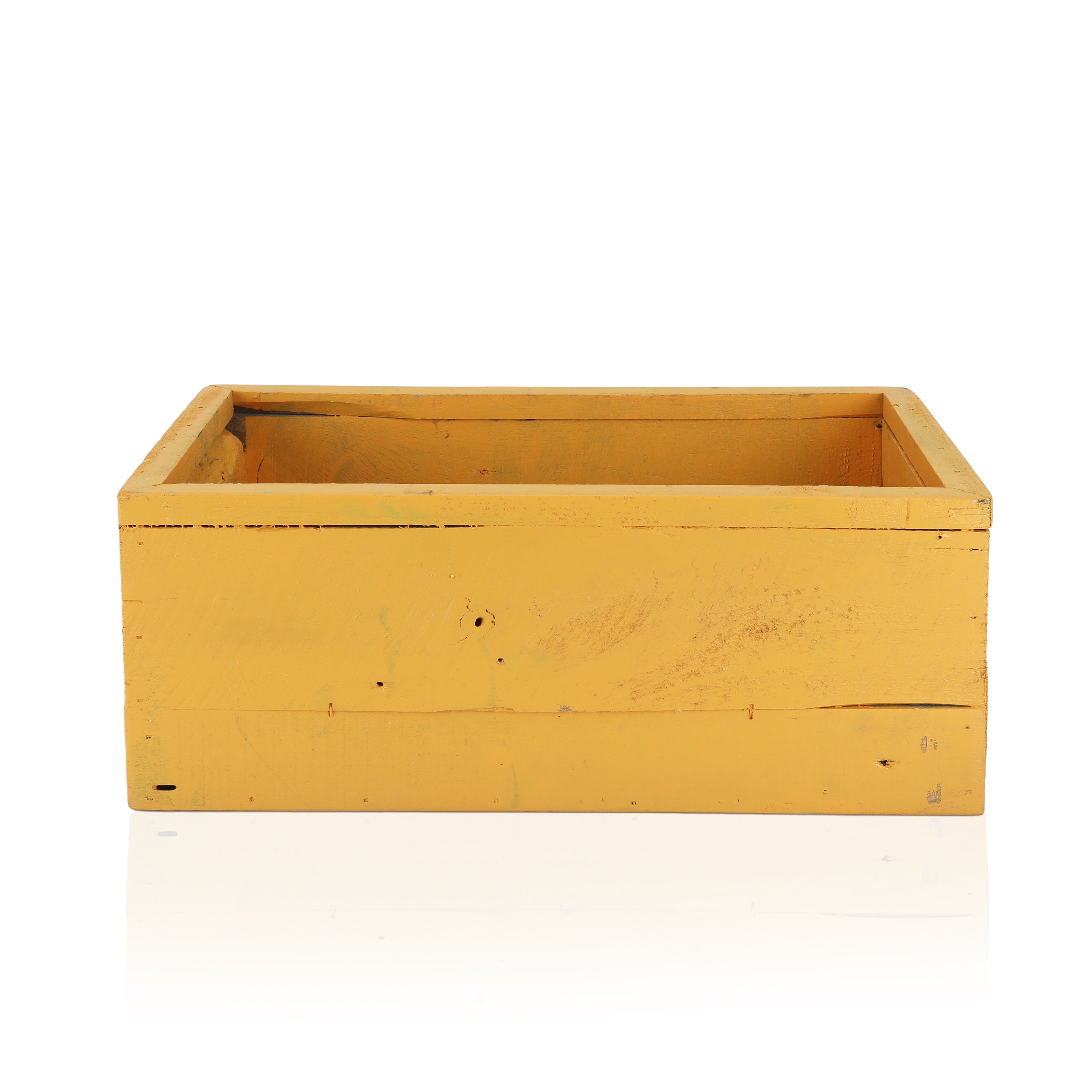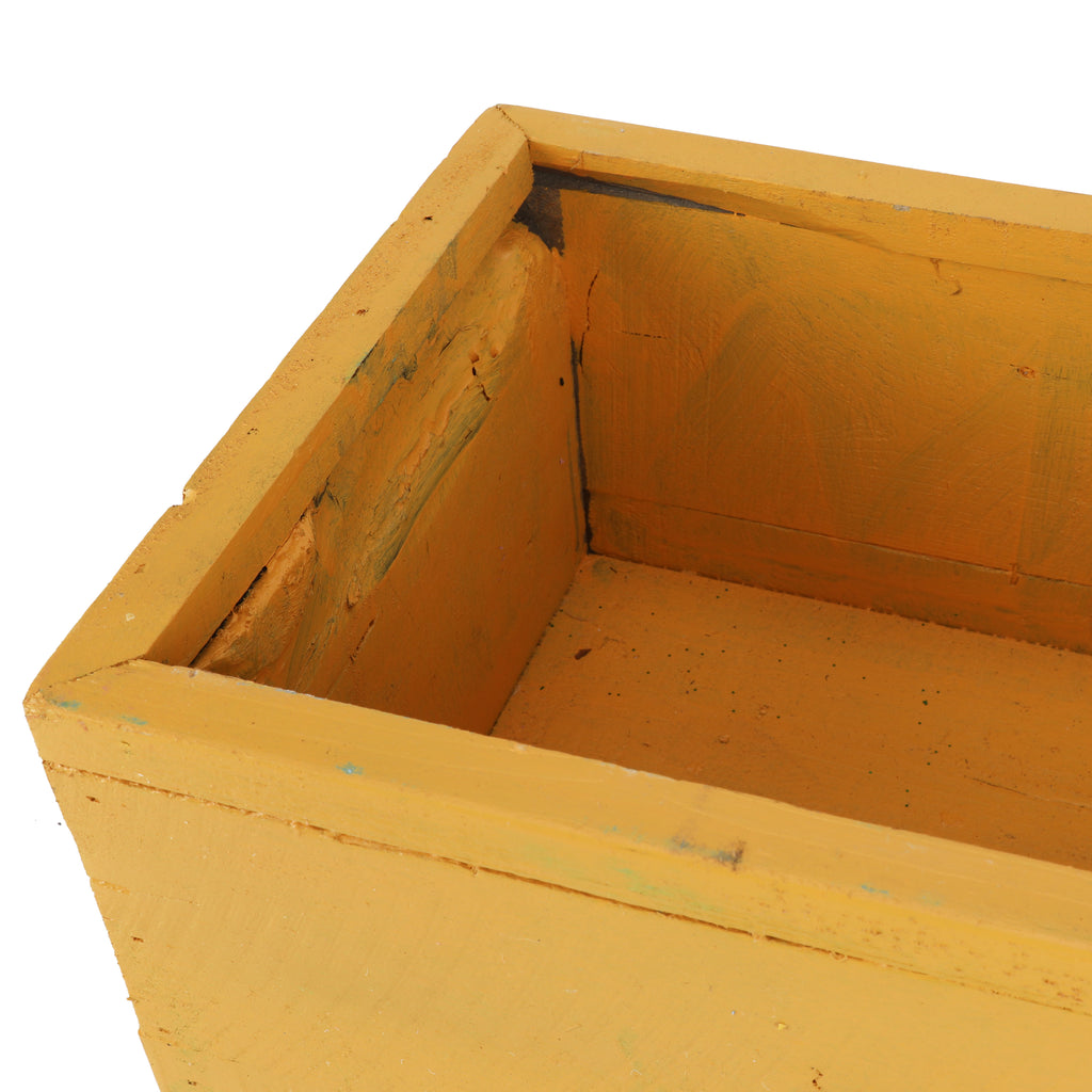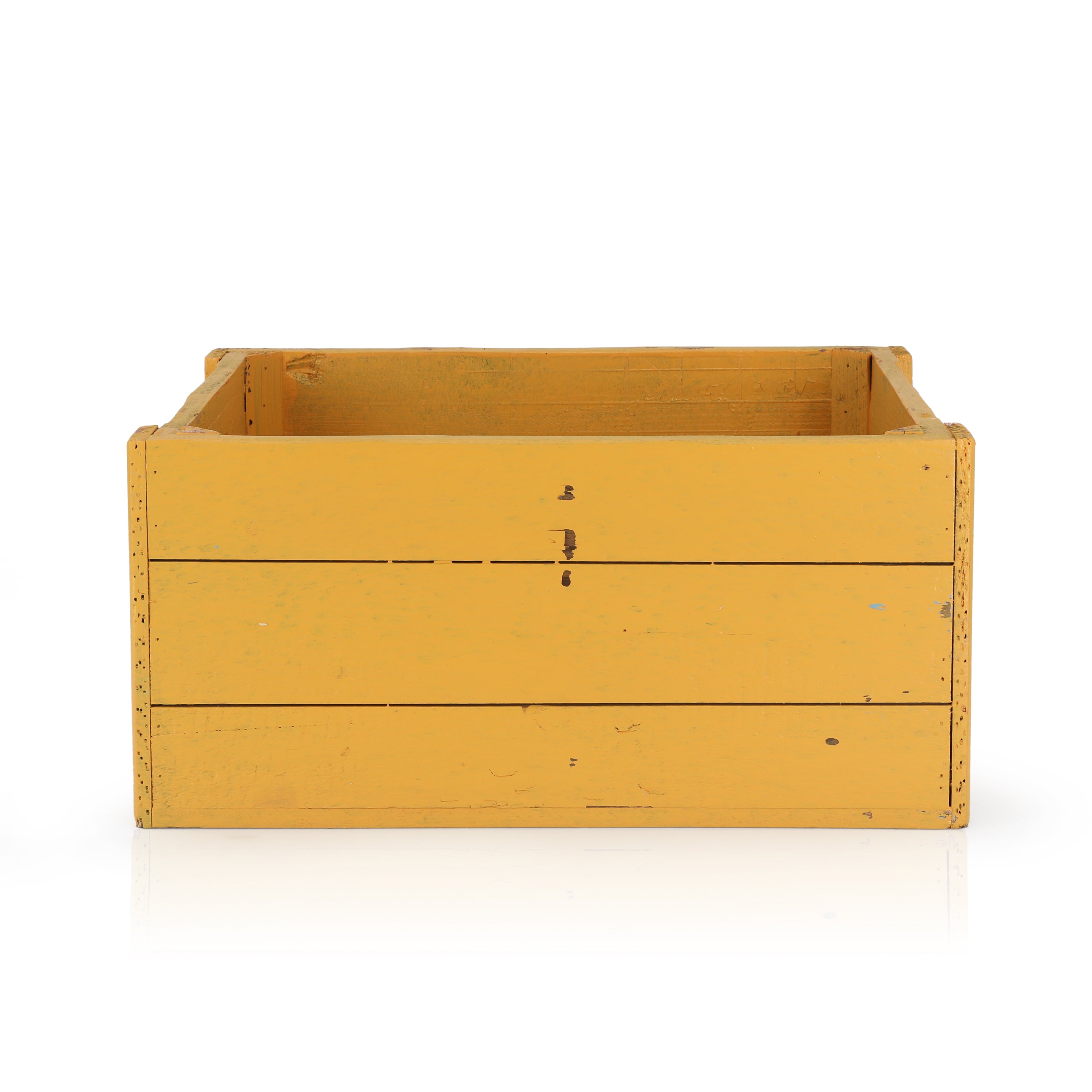 Details: Thin Yellow wooden crate with brown unfinished interior.