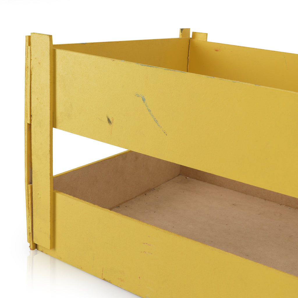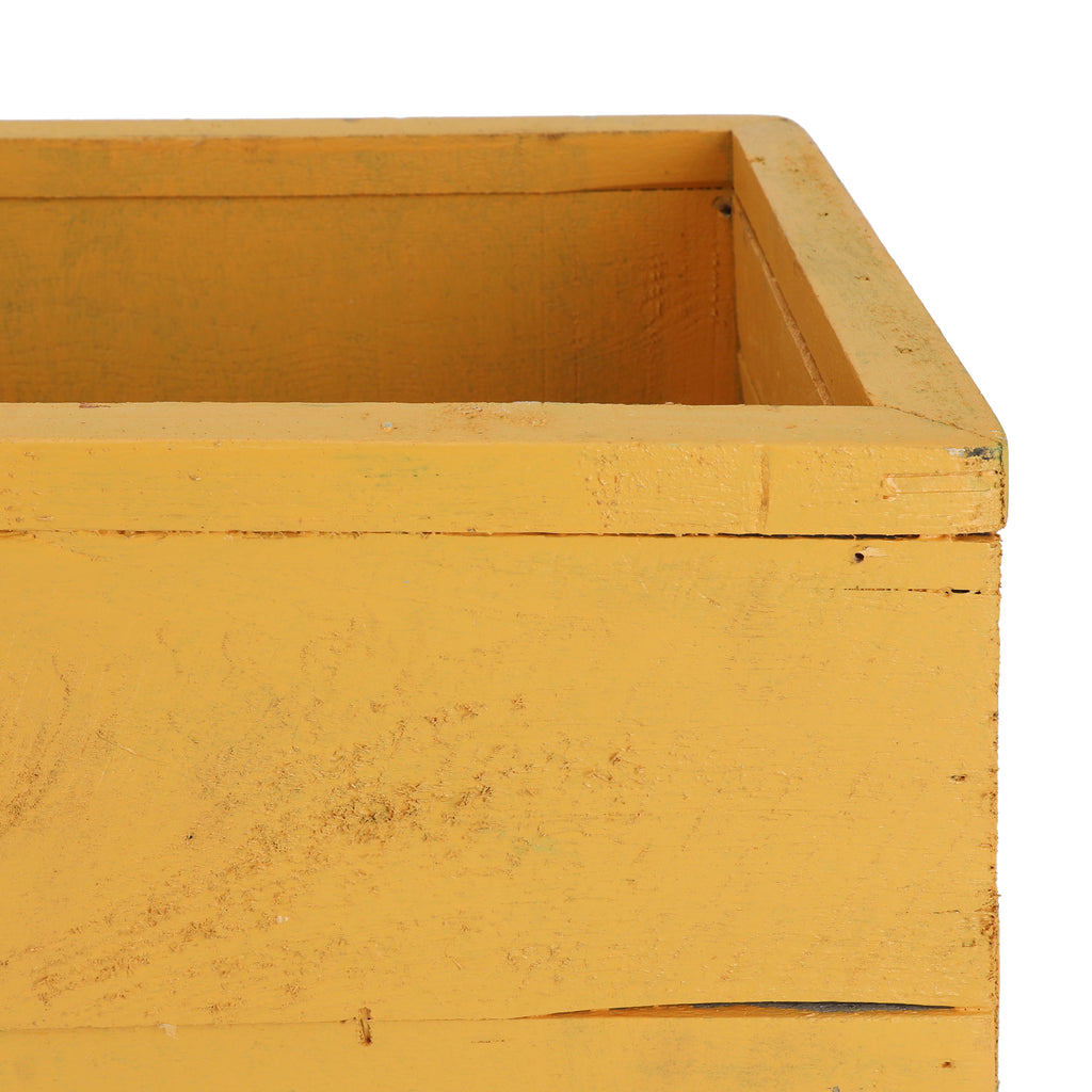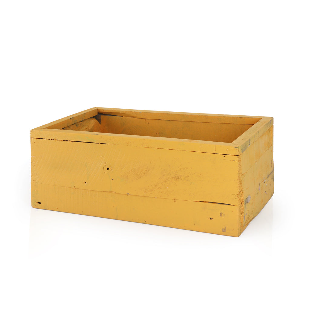 Details: Thin Yellow wooden crate with brown unfinished interior.
