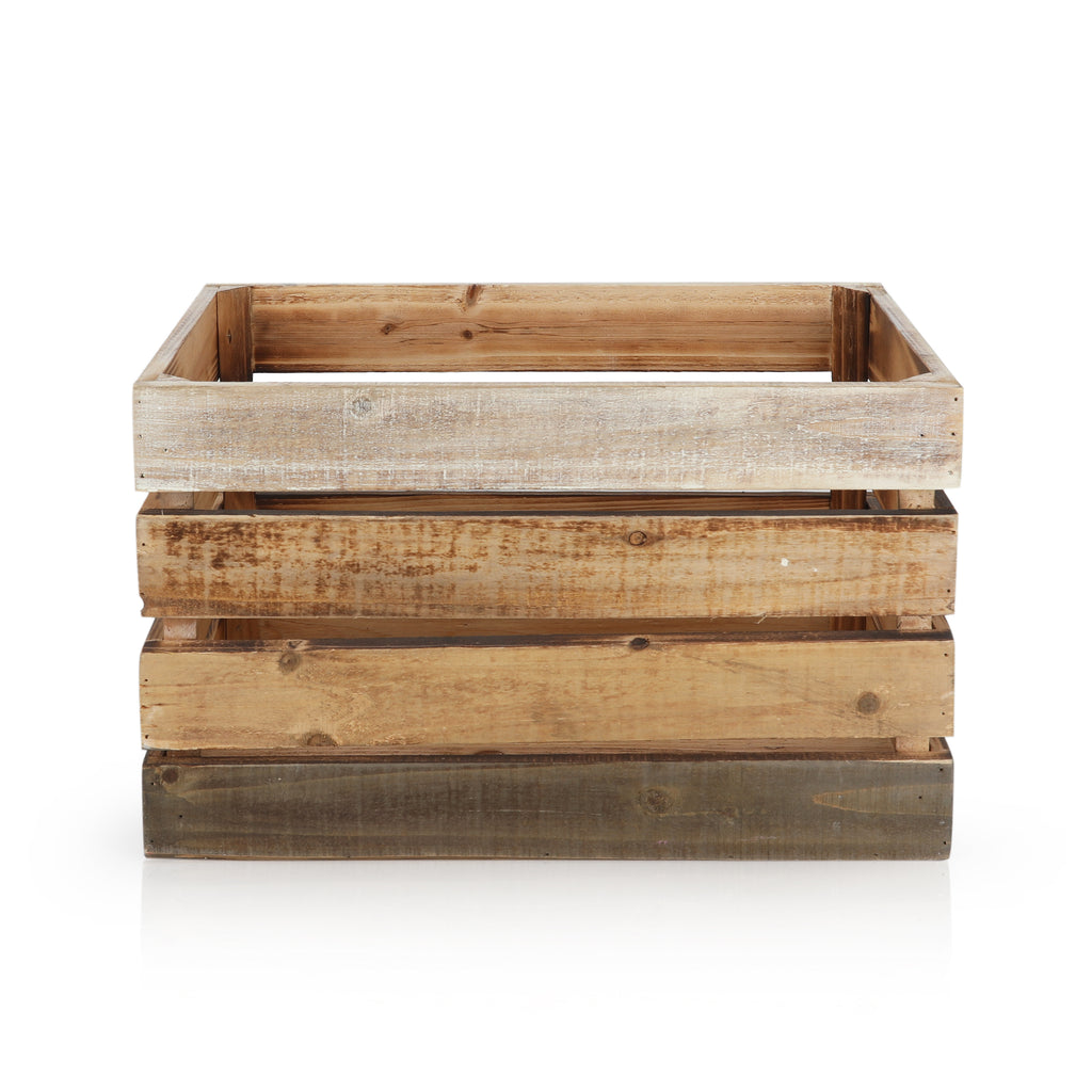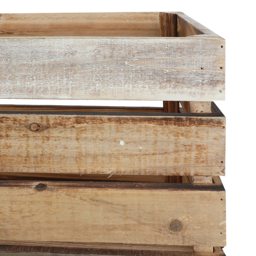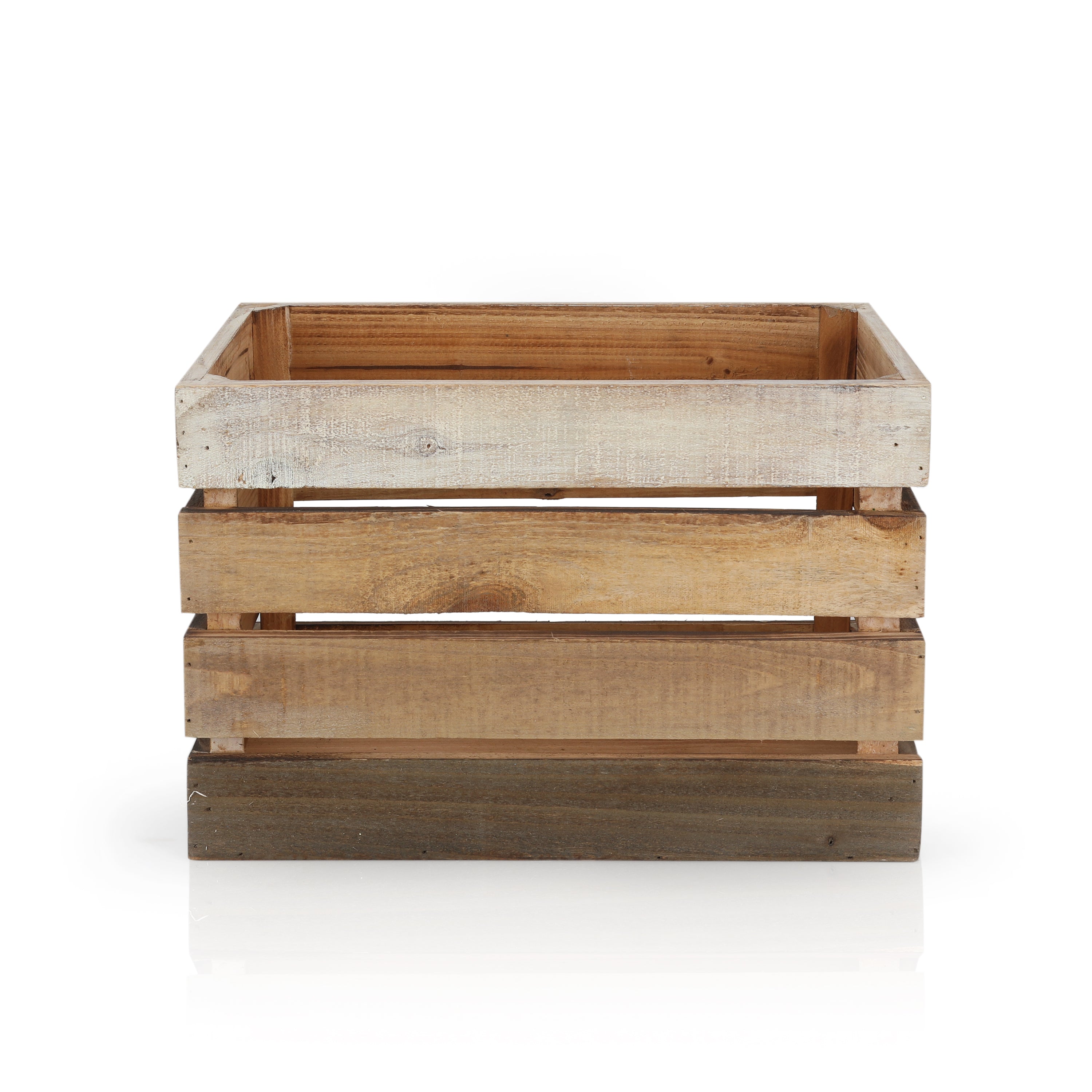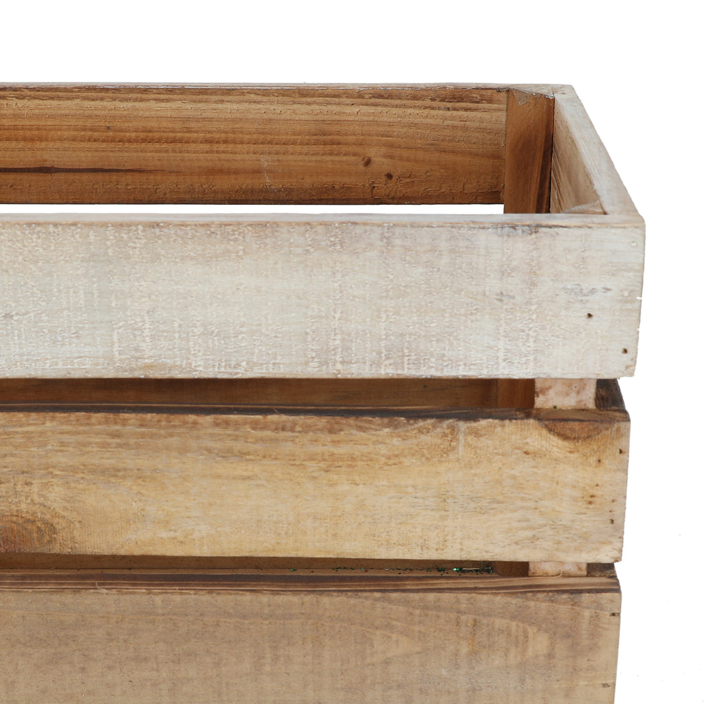 Details: Wooden crates with light top and dark bottom. Quantity: 2