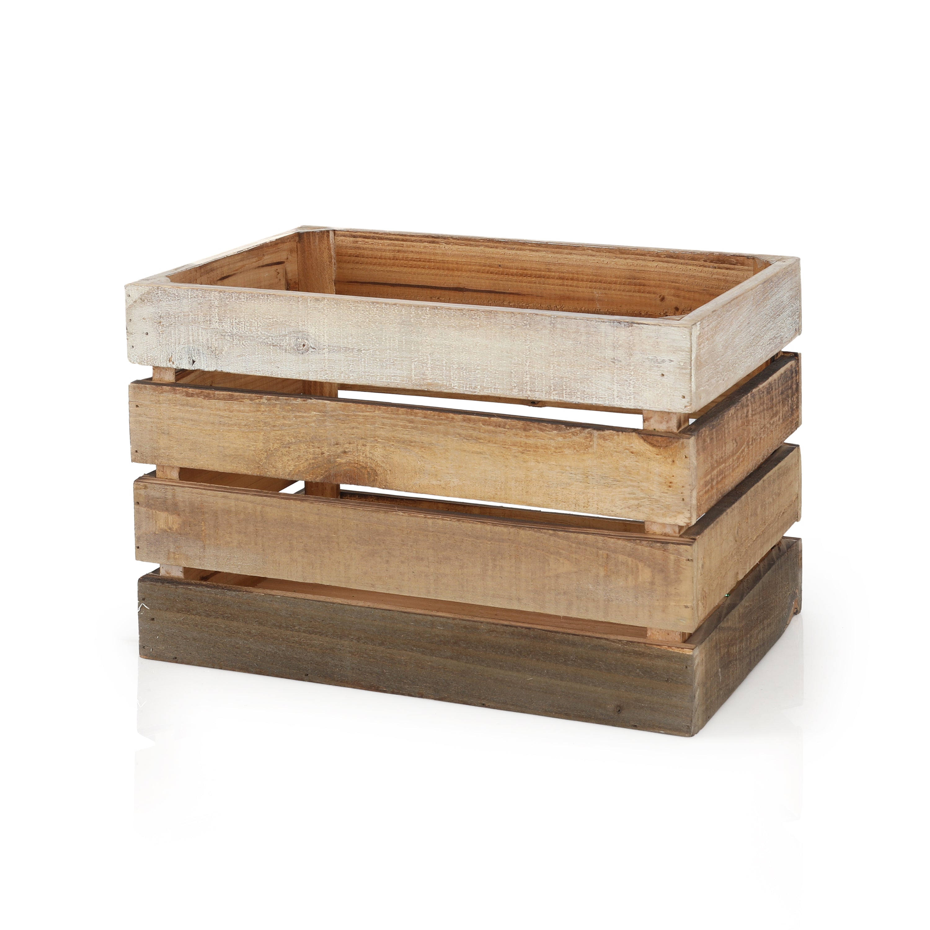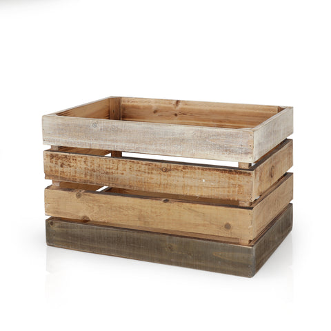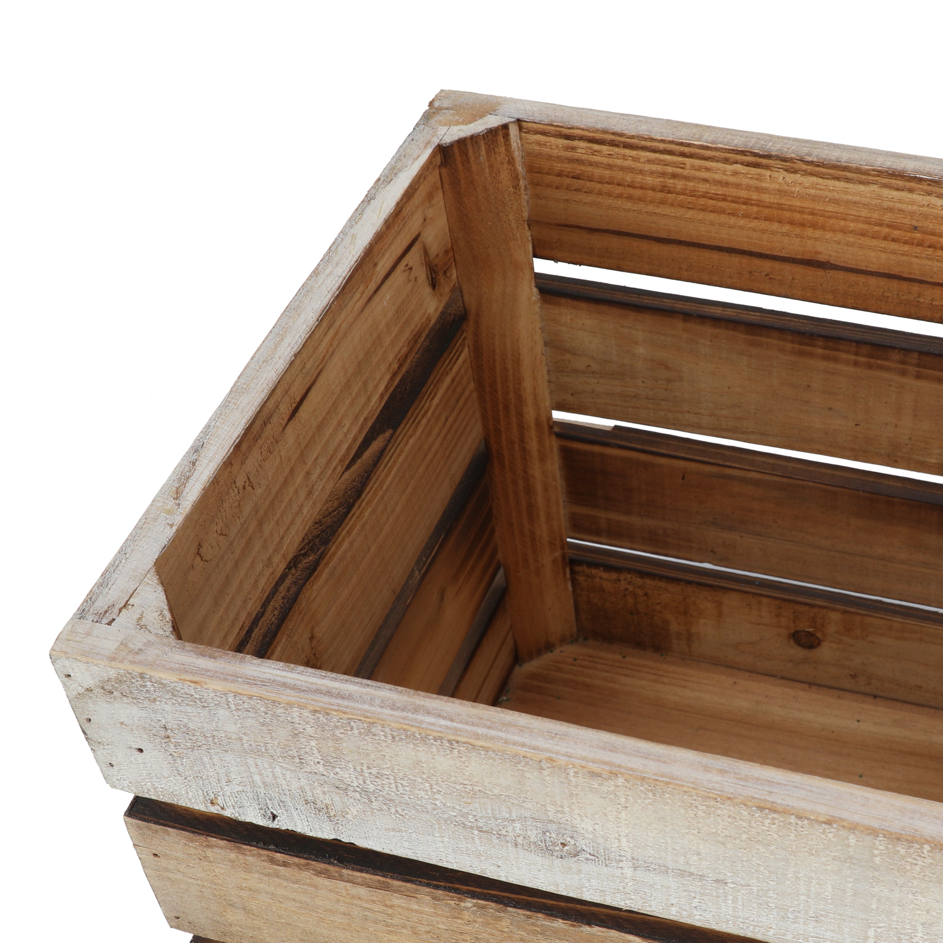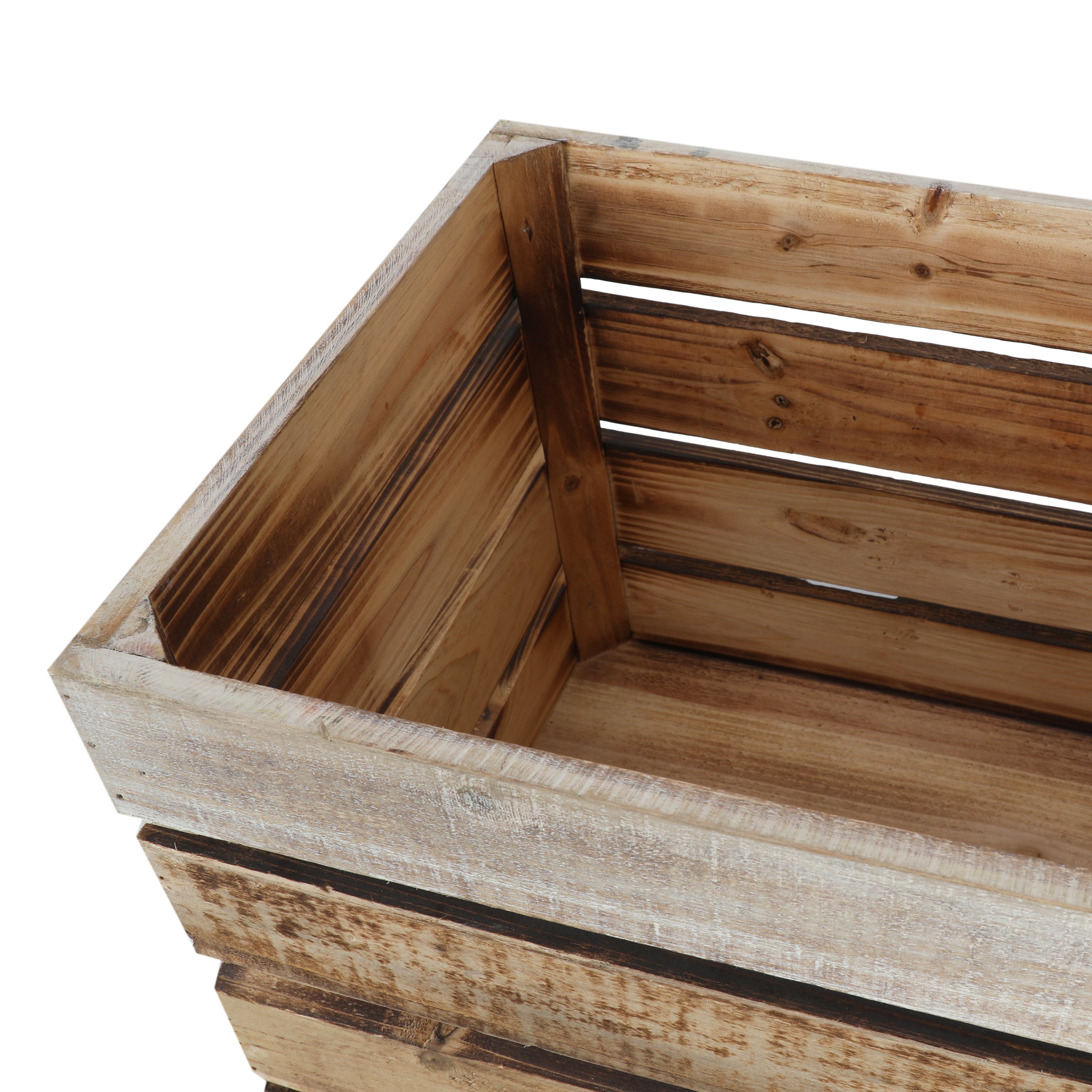 Details: Wooden crates with light top and dark bottom. Quantity: 2