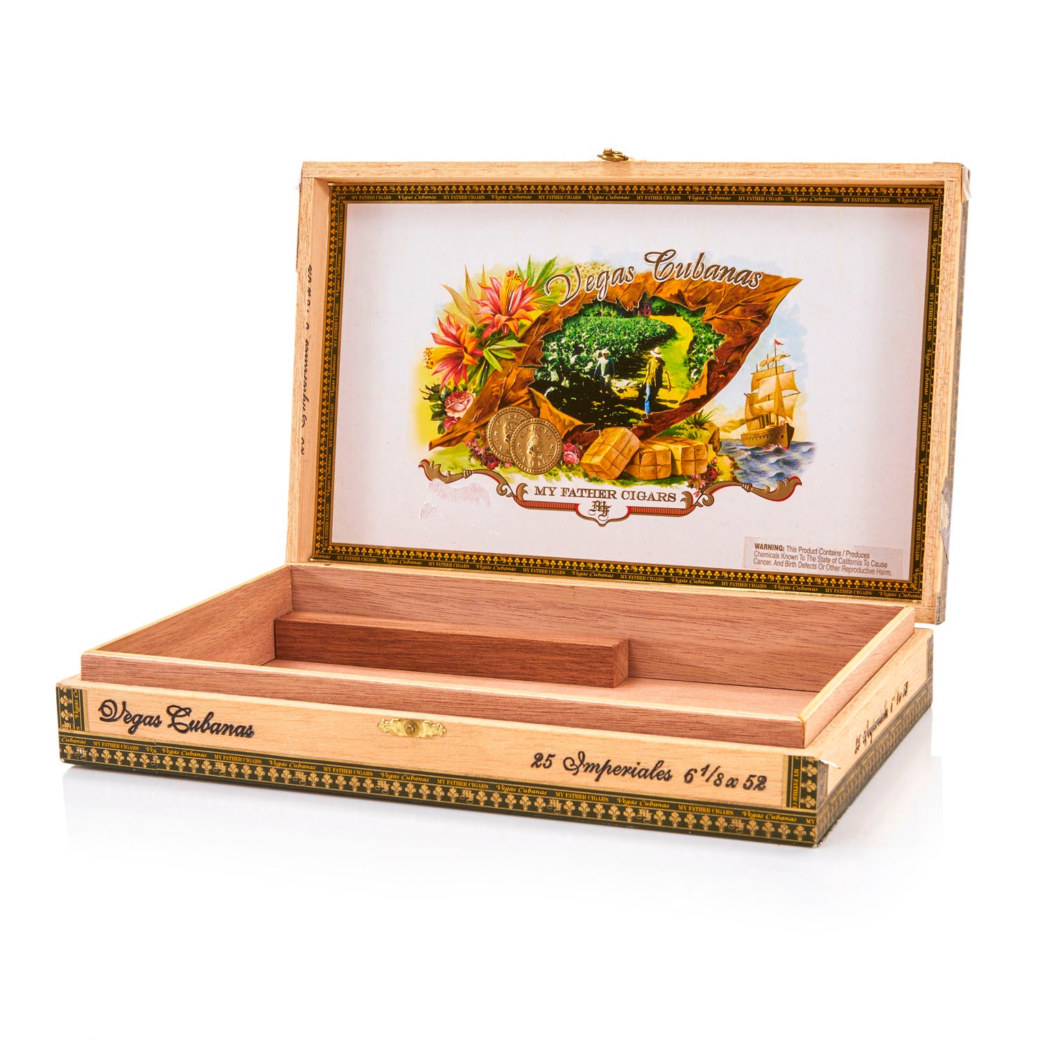 Details: Light brown wood 'Vegas Cubanas' cigar box