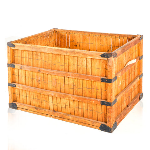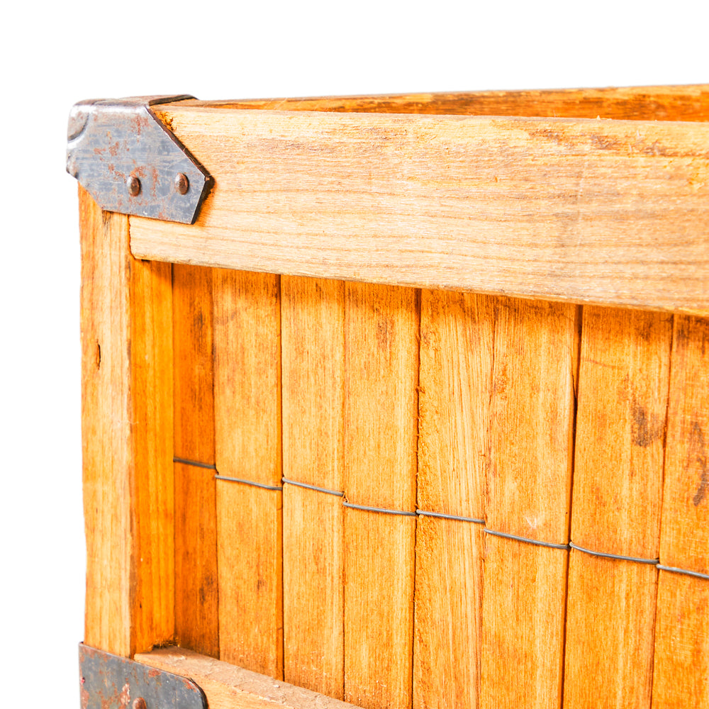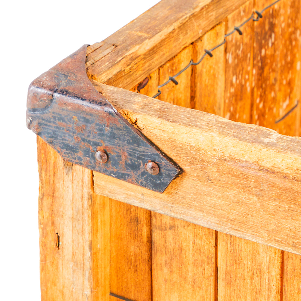 Details: Weathered wood crate with chipped blue paint and metal border - price is PER CRATE, please specify qtyDimensions: 10.5" H X 13" W X 18.5" D...