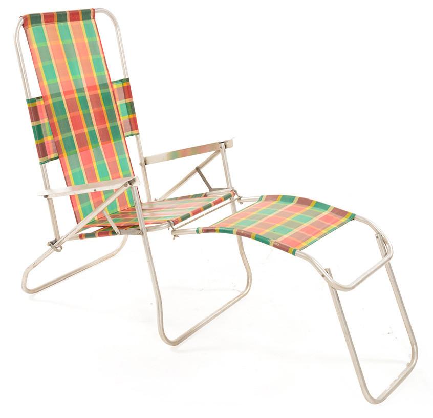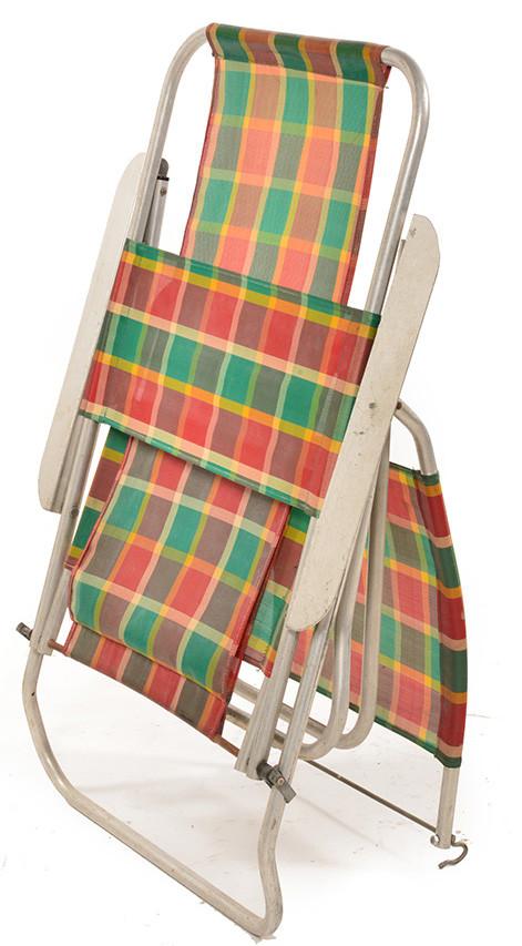 Blue White & Red Folding Vintage Chaise Lawn Chair