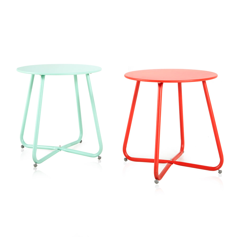 Details: Small metal outdoor side table with a removable tray top Dimensions: 21" H x 18" D