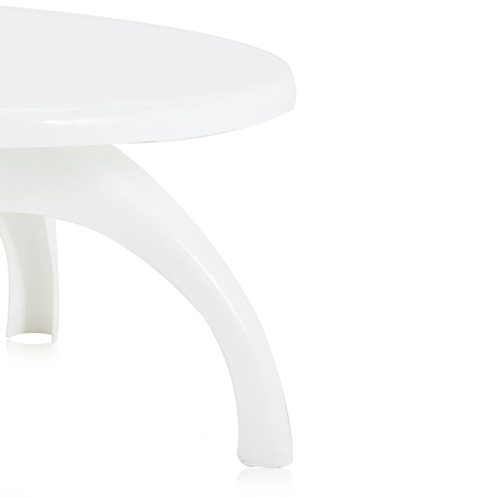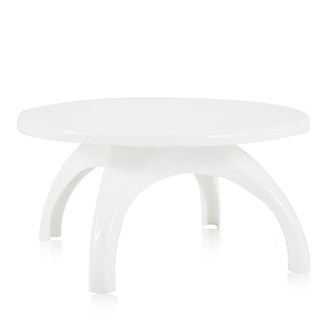 Details: White fiberglass outdoor coffee table Dimensions: 15" H x 30" W x 30" D