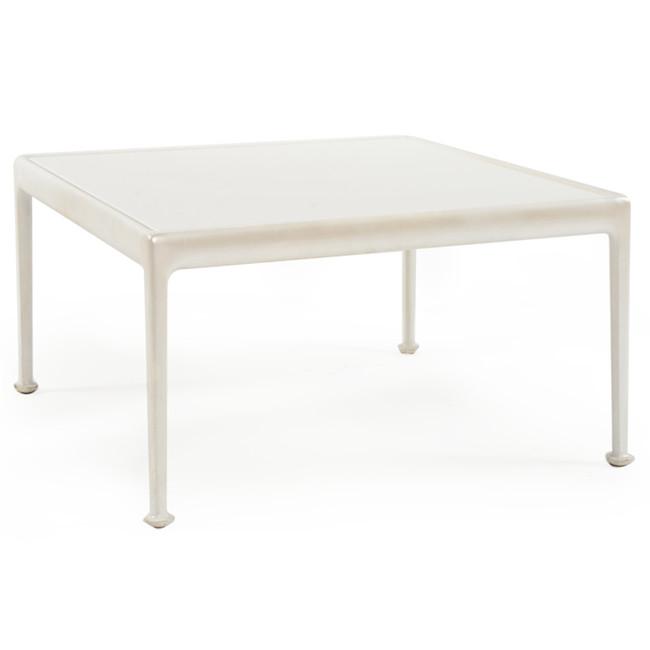 Details: Richard Schultz white metal coffee table with a square top and four legs Dimensions: 15" H x 28" W x 28" D Quantity:
